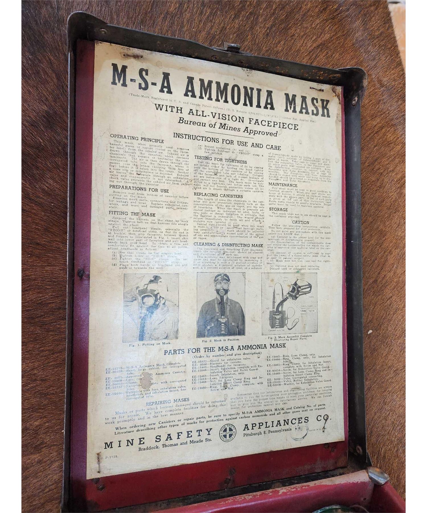 Lot 124A Vintage Mine Safety Appliances Company Gas Mask