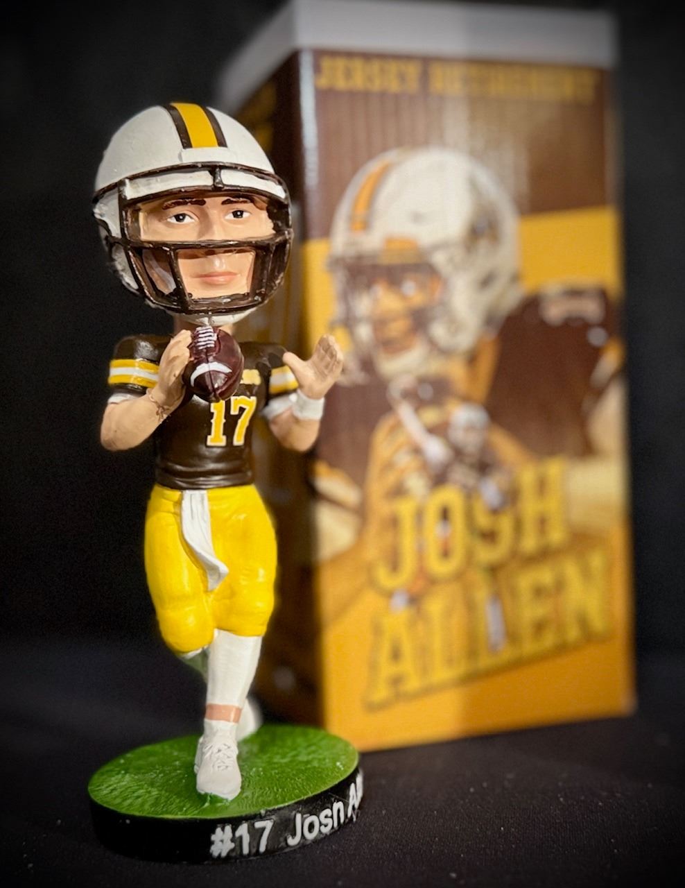 During the retirement of Josh Allen’s #17 jersey at the University of Wyoming on November 22, 2025, a slew of Josh Allen bobbleheads were released to commemorate the occasion.