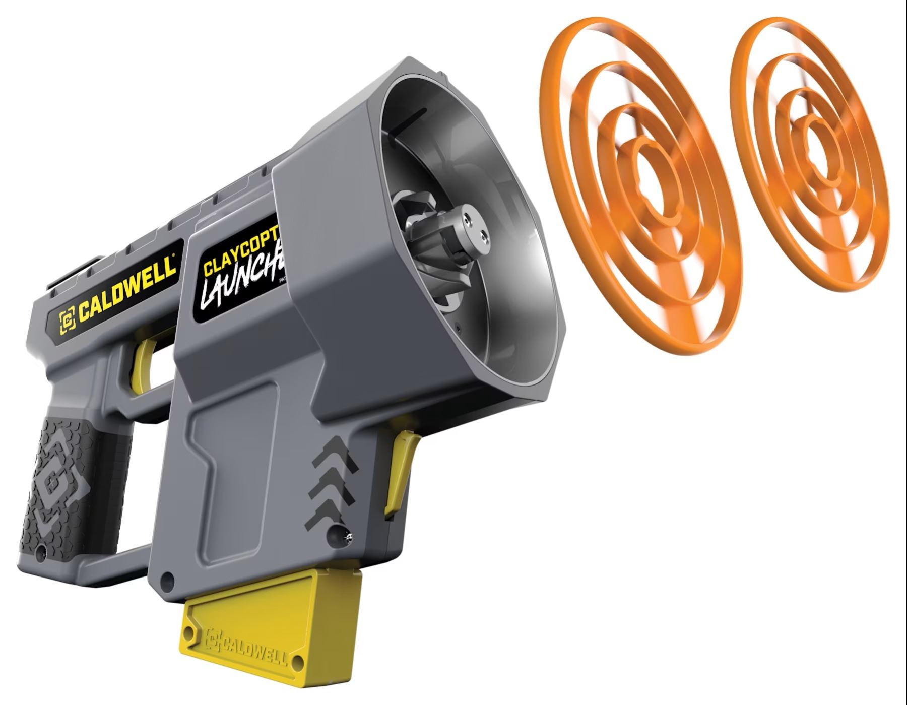 The clay pigeon was invented in 1880 as a replacement target option for glass ball targets and live birds. In the last 150 years, nothing major has changed in aerial shotgun targets. The Caldwell ClayCopter™ is the change we have all been waiting for. The ClayCopter™ is a handheld target launcher that uses an electric motor to spin target discs up to 15,000 RPM and releases them as single or double targets. The lightweight, Green Leaf Tested, eco-friendly targets fly in unique patterns that mimic live birds’ flight up to 100 yards. The ClayCopter™ features a removable rechargeable Li-Ion battery pack that launches up to 300 targets on a single charge. The handheld design makes changing target angles and directions fast and easy for a variety of challenging shots. Hone your wing shooting skills with the Caldwell ClayCopter™ target launcher.