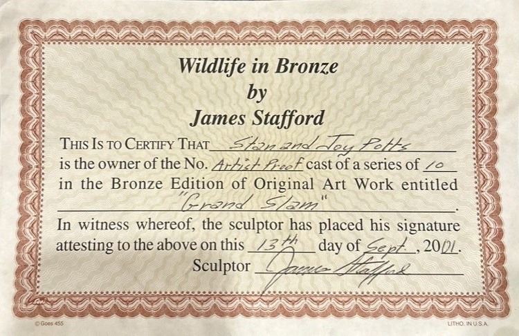 Wildlife in Bronze by James Stafford “Grand Slam” Artists Proof donated by Stan Potts