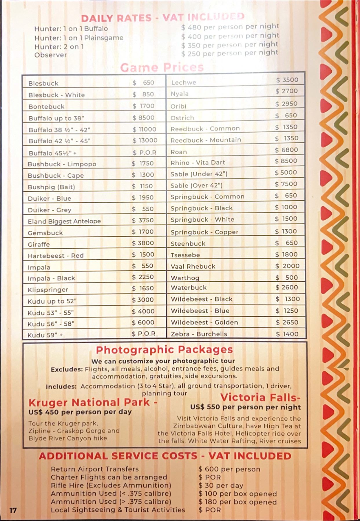 •Additional Opportunities: Option to add other species or upgrade animals (per current year price list)