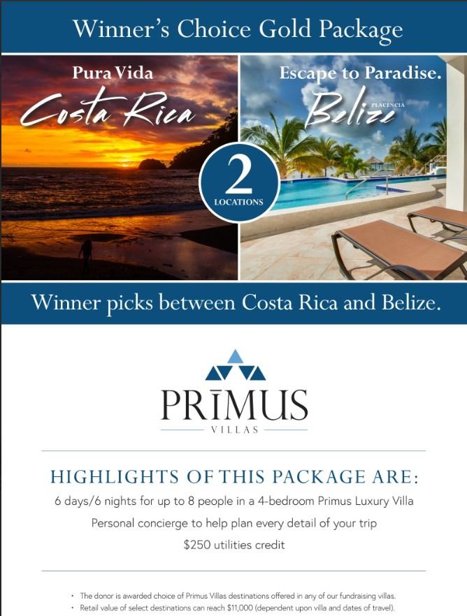 Winners Choice Between Costa Rica or Belize through Primus Villas