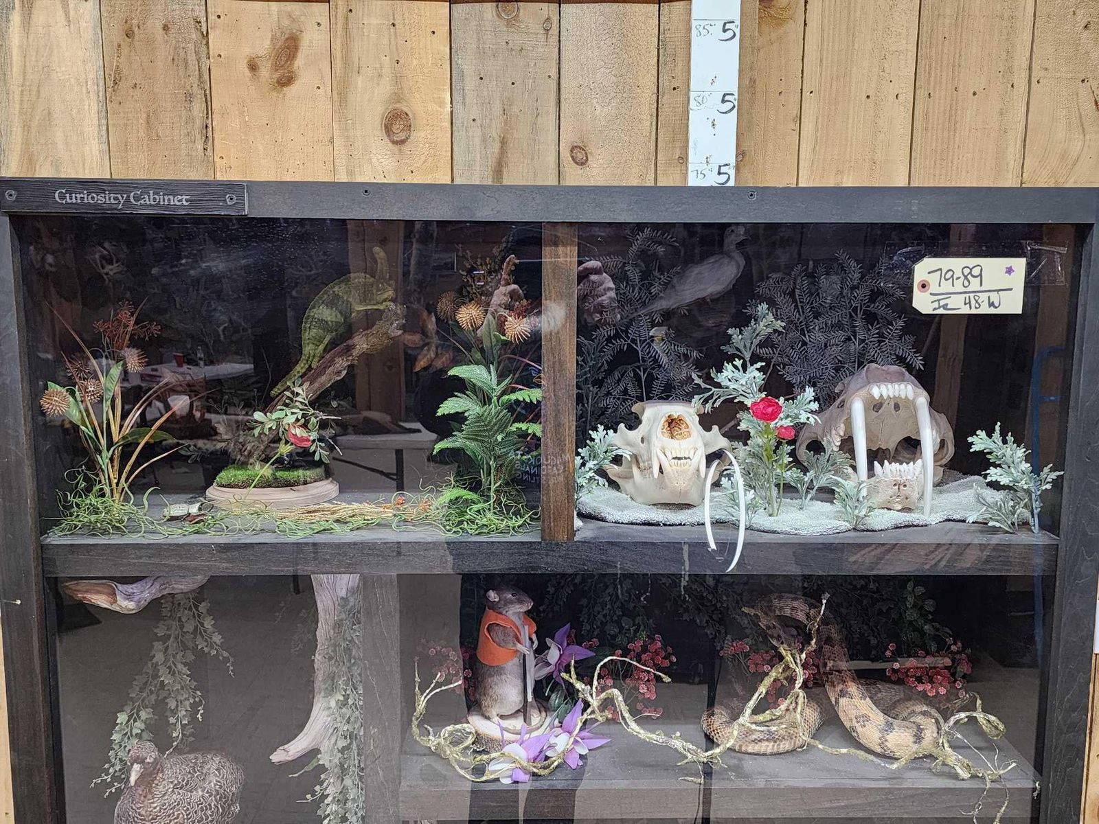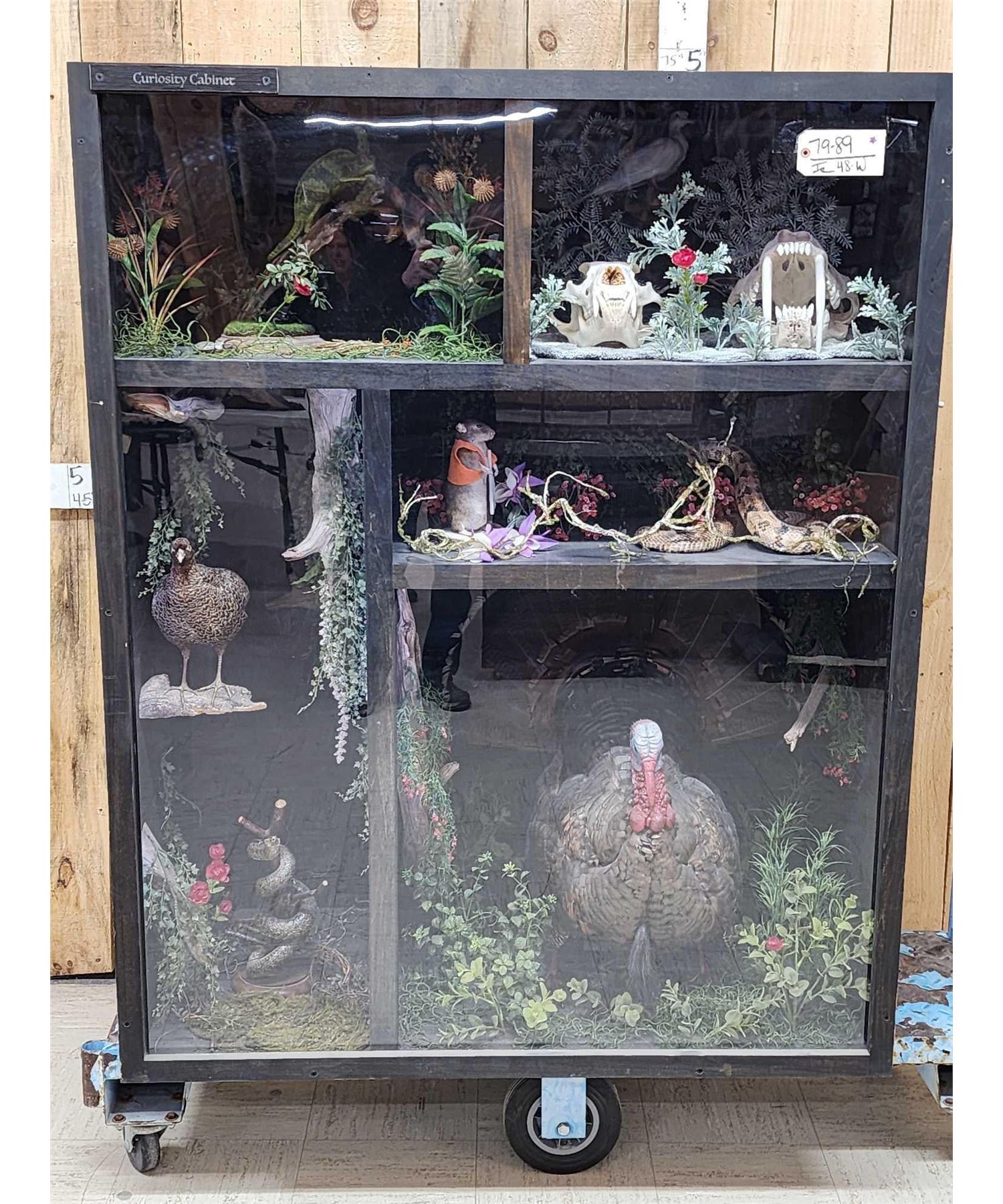 Lot 48W Taxidermy Curiosity Cabinet Includes 11 Taxidermy Mounts