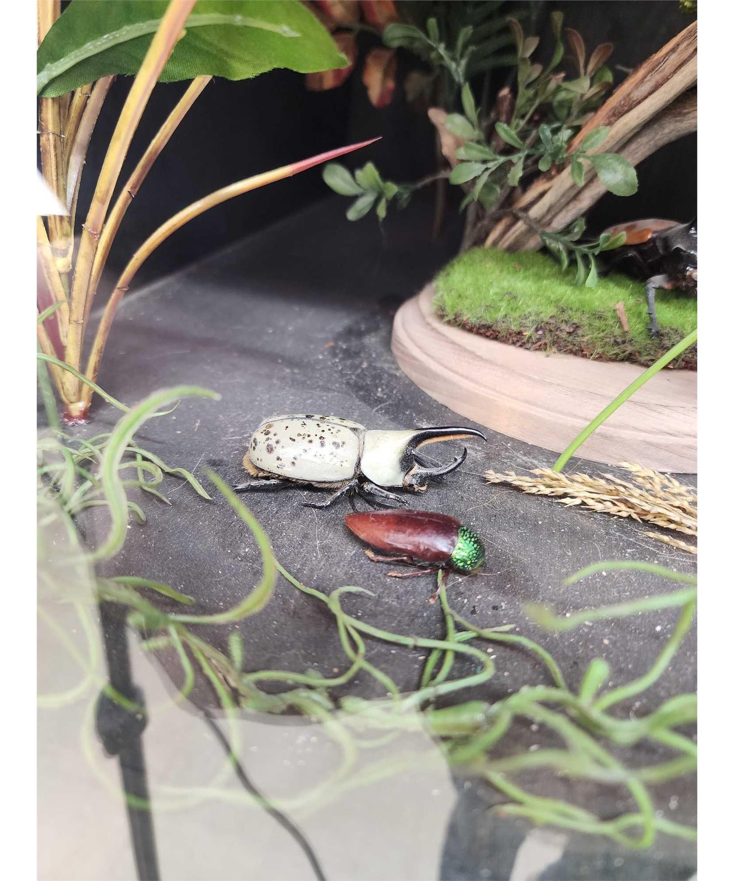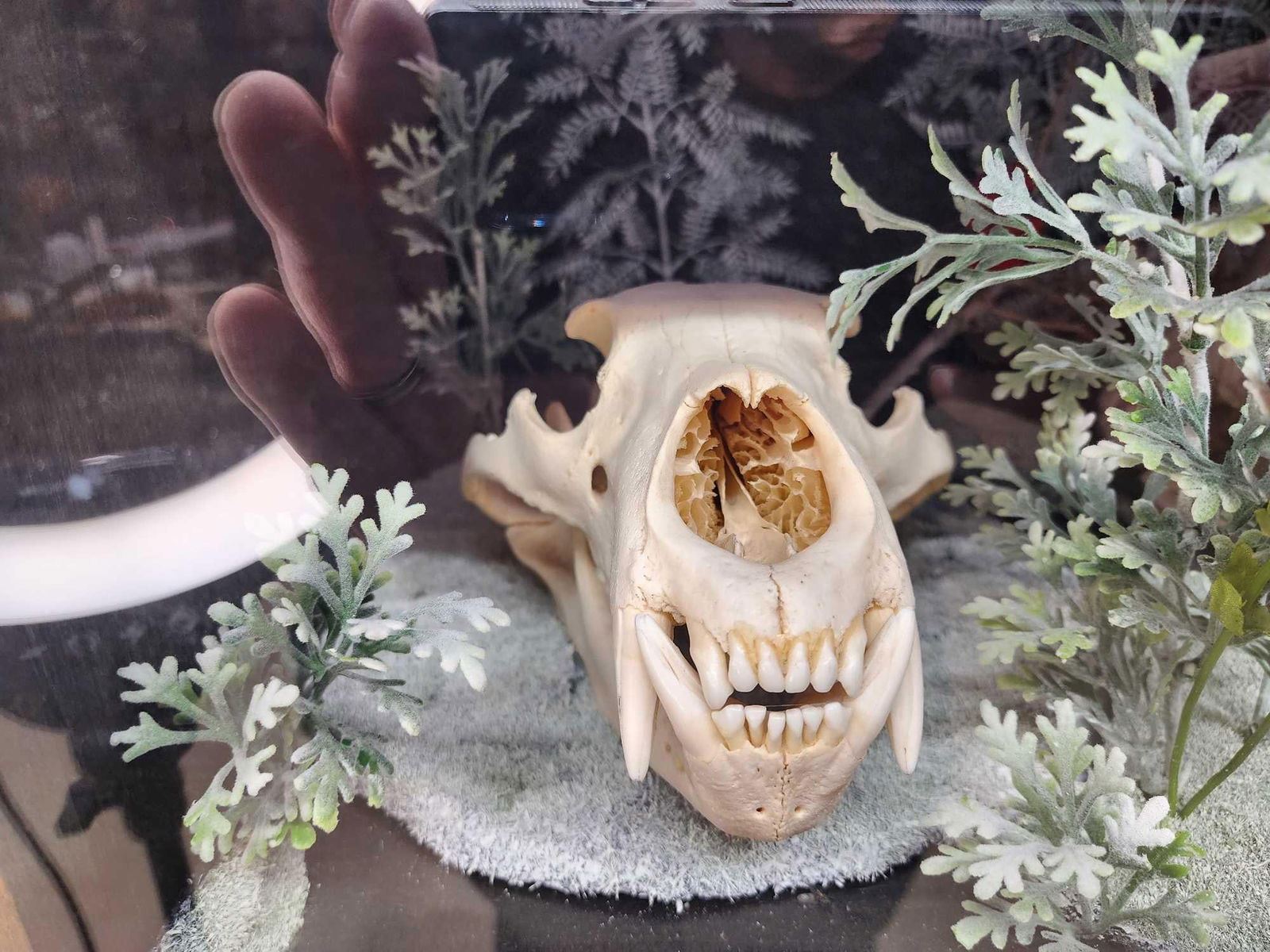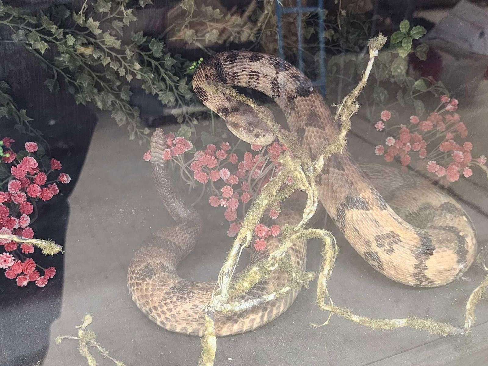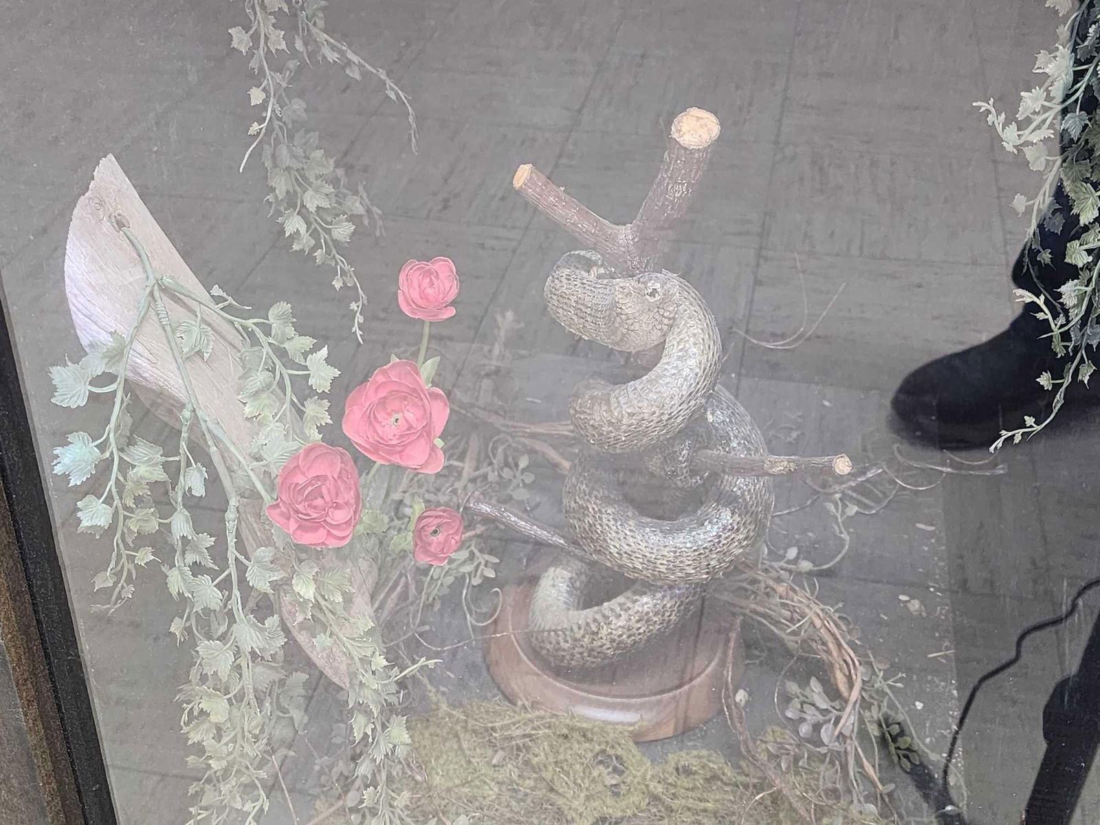 79.89 Cool piece lighted cabinet with Chameleon, Beetles , Black Bear Skull , Ringed Turtle Dove , Reproduction Saber Tooth Tiger skull , Parakeet , Sharp Tail Grouse , Grass Snake , Hunting Rat , Rattlesnake , Turkey Full Body Bird Taxidermy overall dimensions about 60" tall x 48" wide x 24" deep