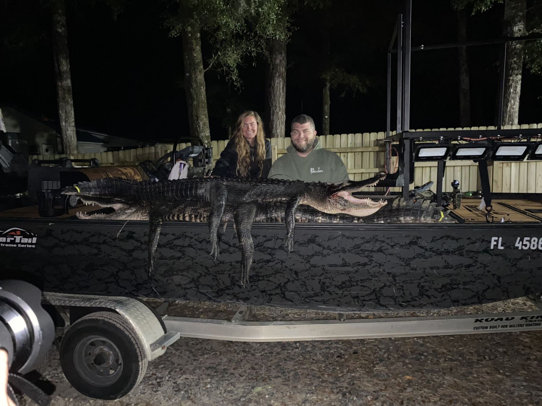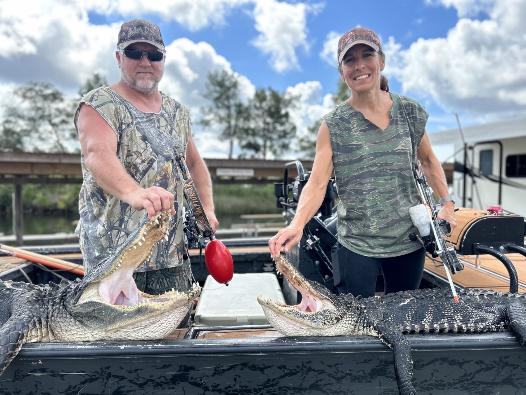 Hunts are fully guided by a licensed professional guide and captain, with all tags and required equipment provided. Water and Gatorade are included during the hunt. Gators may be split between hunters, or one hunter may take both. Upgrades are available for larger alligators.