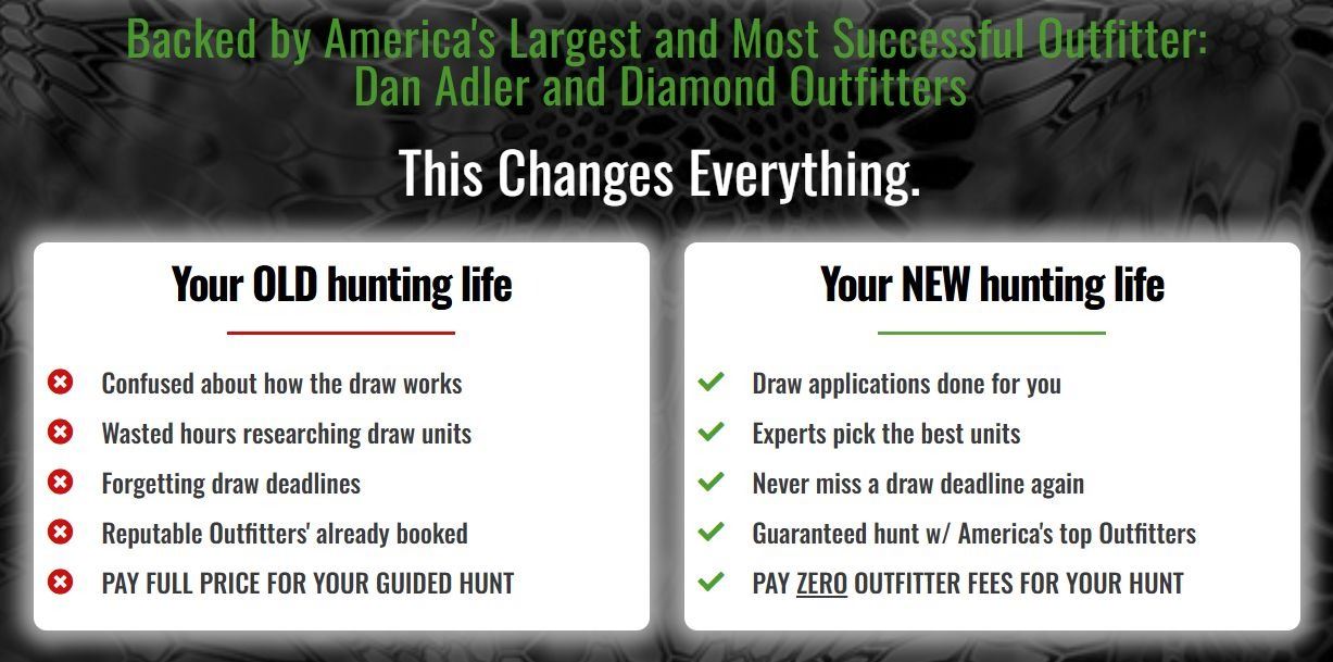 With Zero Outfitter Fees, you'll never worry about missing a draw deadline, finding hunt codes, or tracking down a guide—we handle it all. Once we get you drawn for your trophy big game hunt, your fully guided experience is 100% included with your membership.