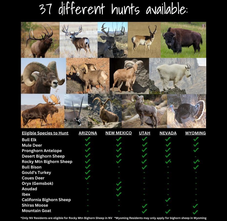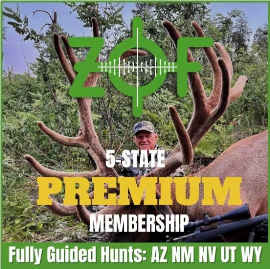 This 3-year Premium ZOF membership gives you access to unlimited, fully guided draw hunts in Arizona, New Mexico, Utah, Nevada, and Wyoming for up to 14 big game species and 37 different and unique hunts including elk, deer, antelope, bison, and more.