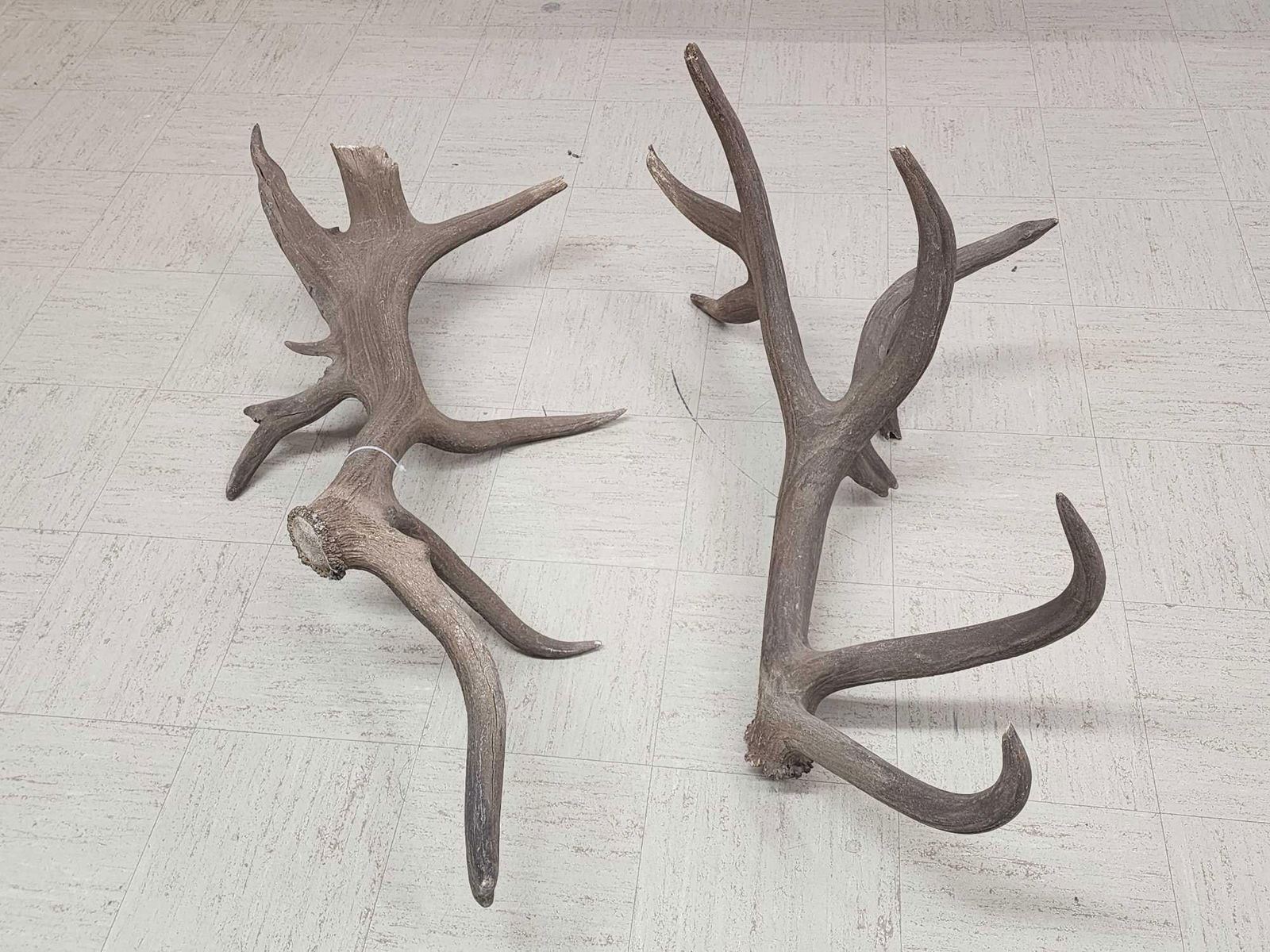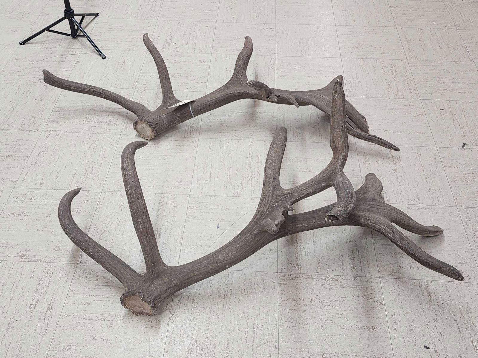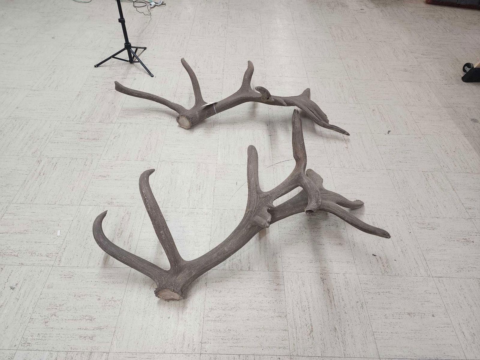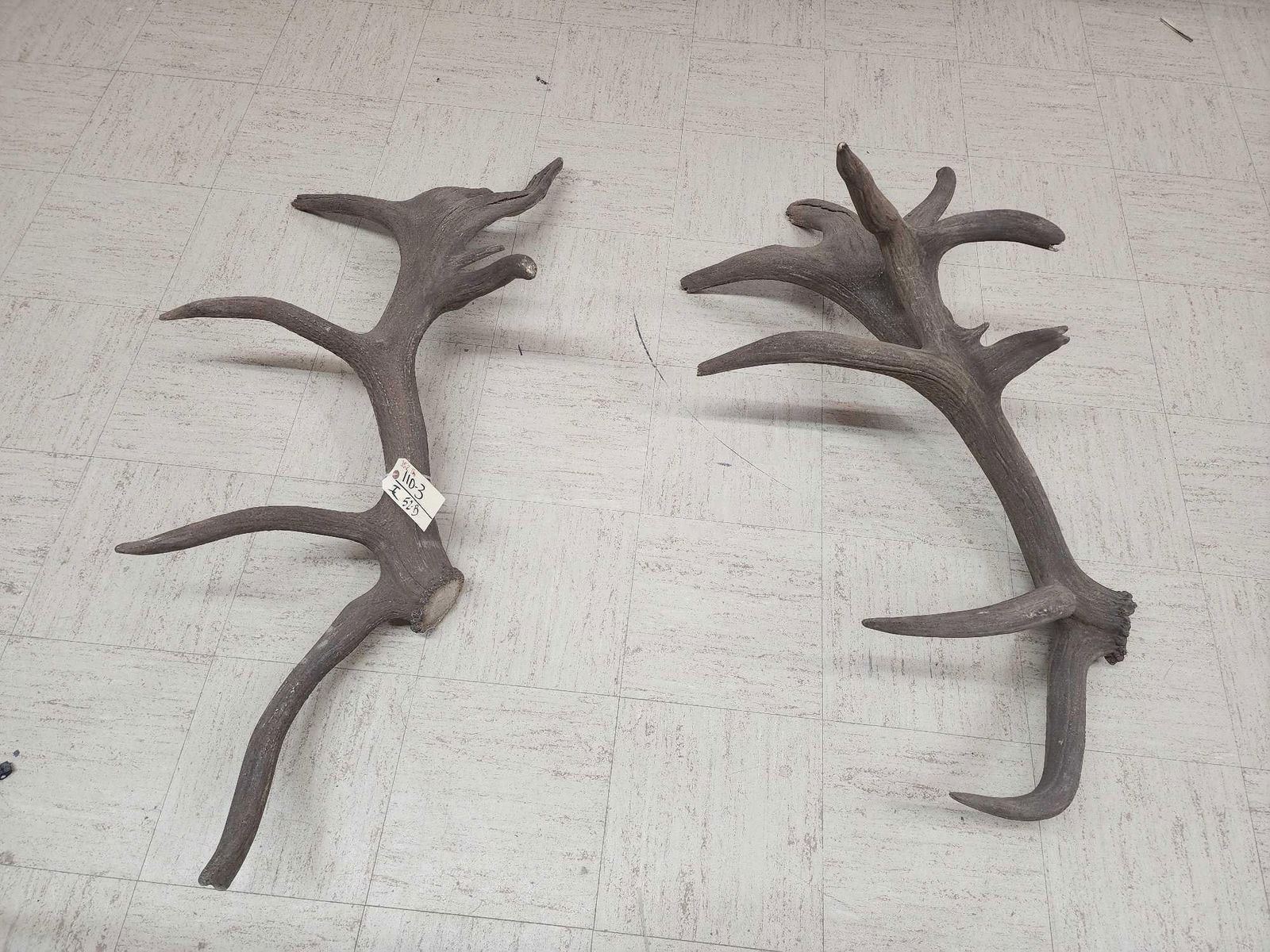 110.3 Both same side sheds from the same elk found on the Wyoming/Colorado border in 1970 .Back then on an old railroad a worker found one side while the engine was broke down he later went back found the other shed !Tons of character with lots of extras total weight 32.5 Lbs color added