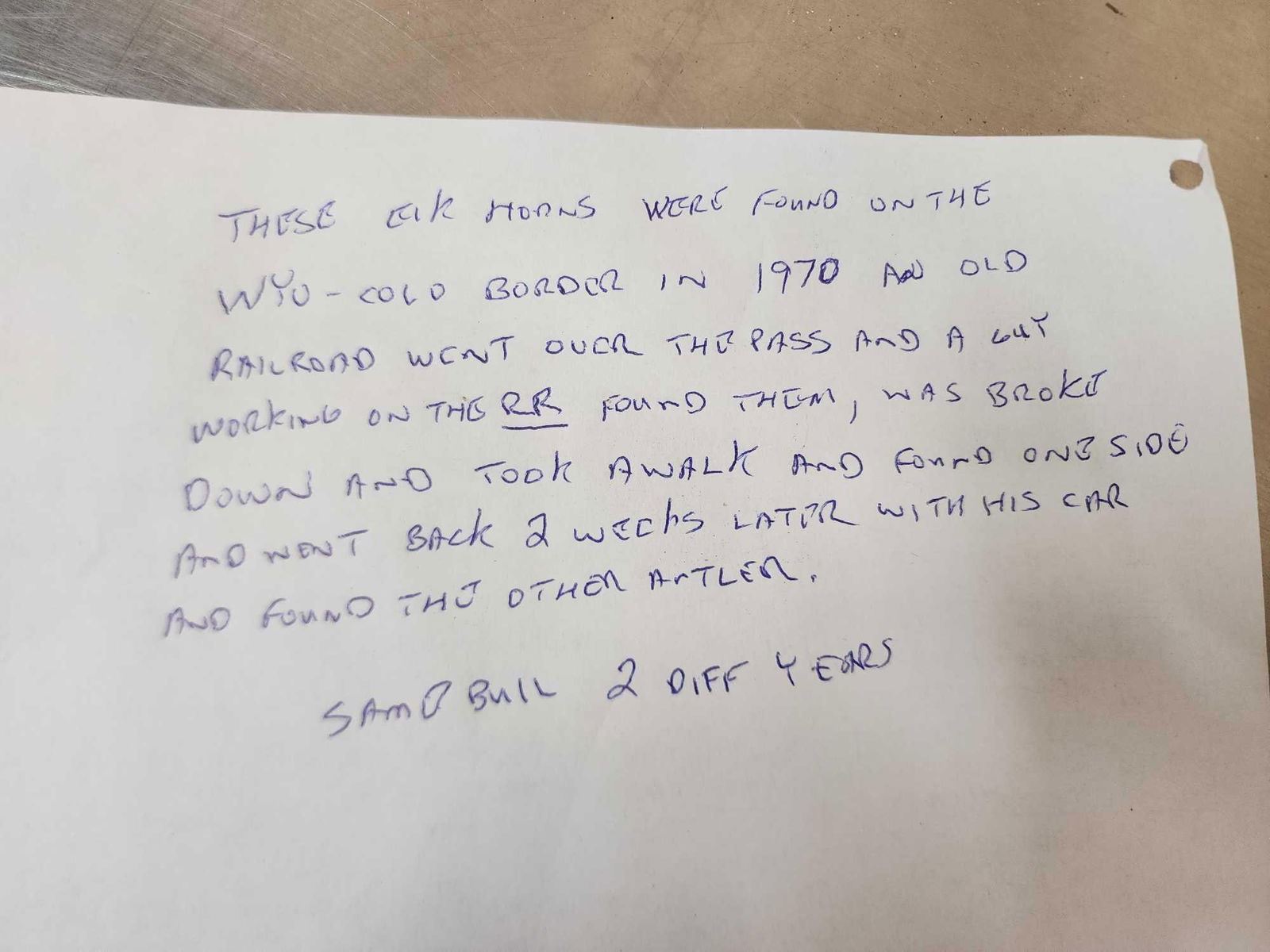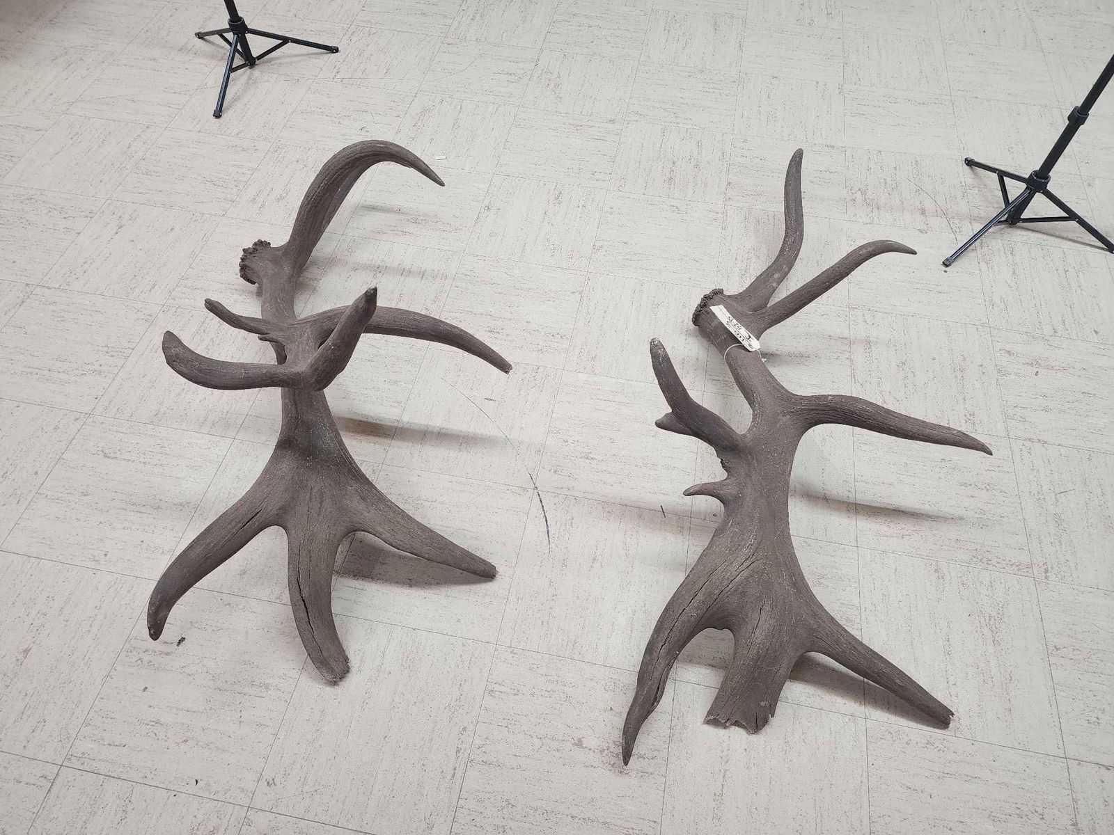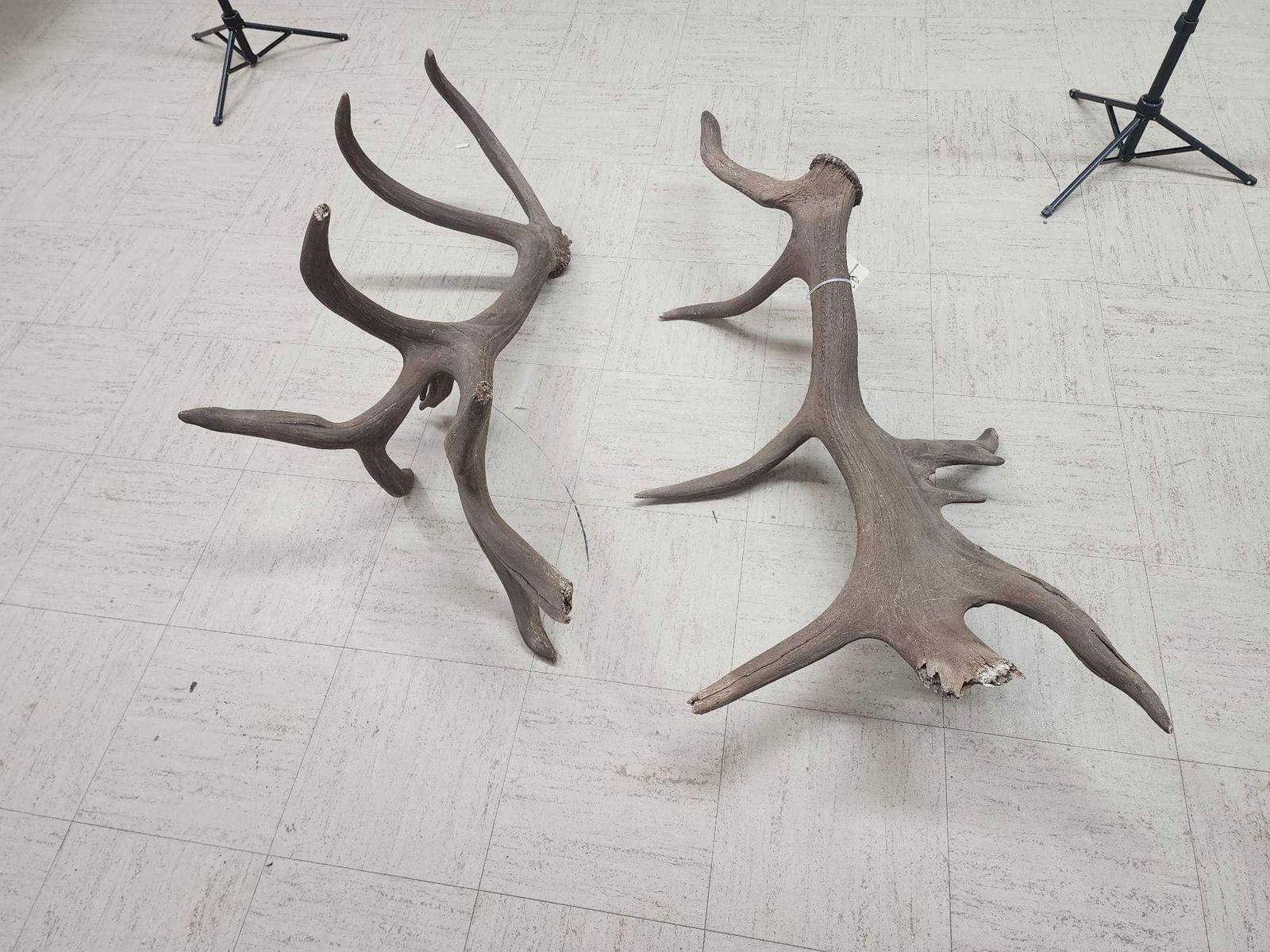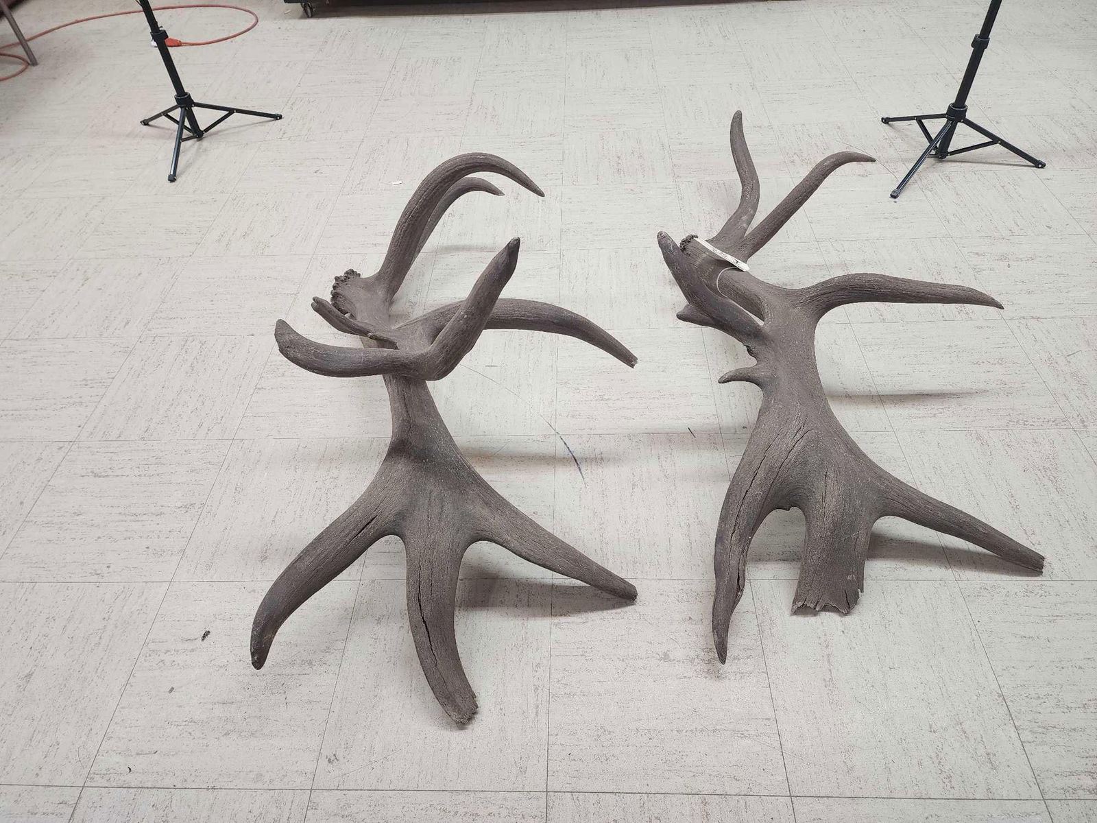 110.3 Both same side sheds from the same elk found on the Wyoming/Colorado border in 1970 .Back then on an old railroad a worker found one side while the engine was broke down he later went back found the other shed !Tons of character with lots of extras total weight 32.5 Lbs color added