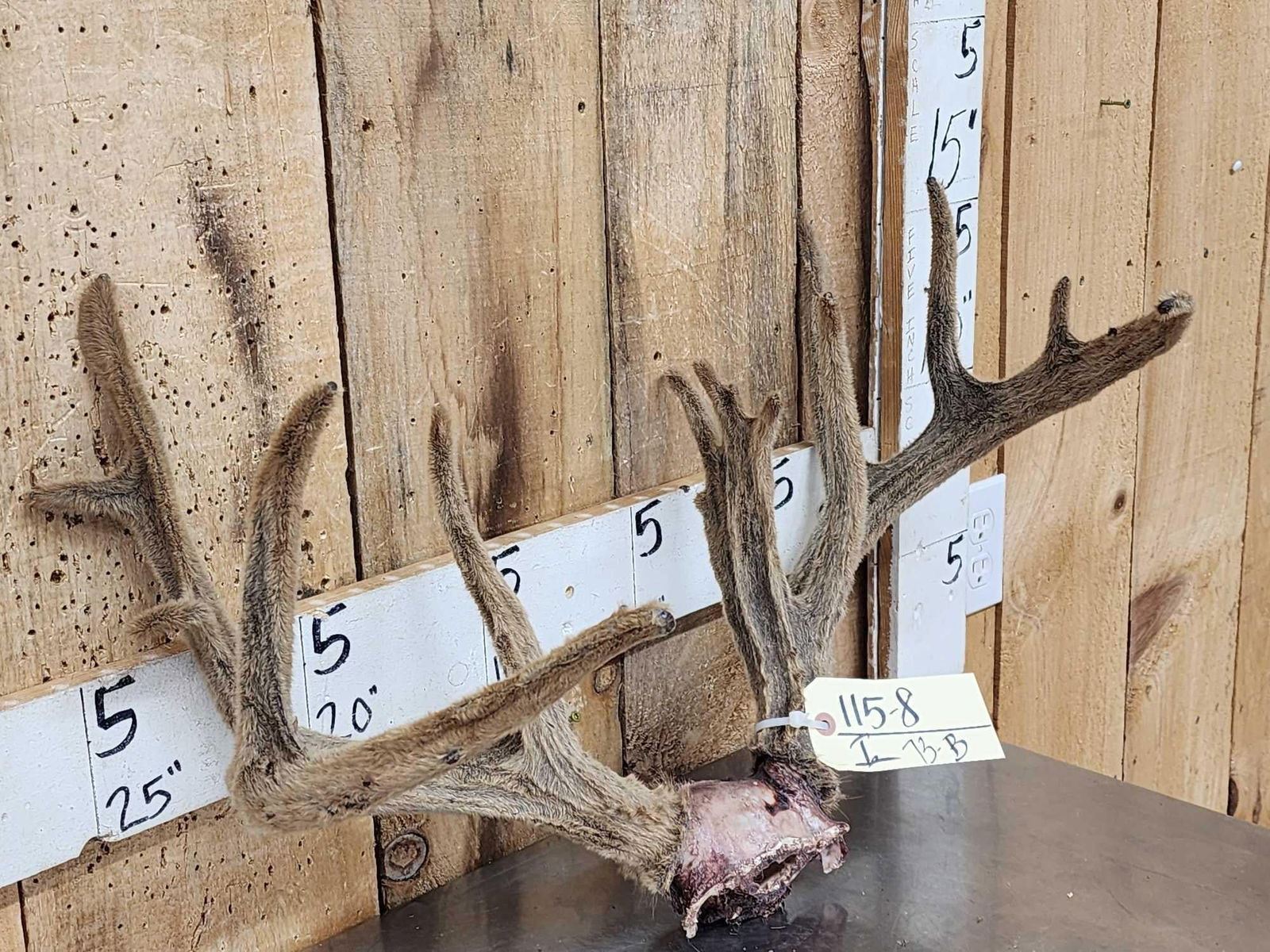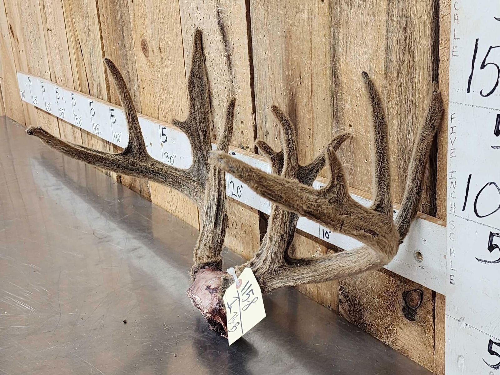 Lot 73B Main Frame 4x5 Whitetail Antlers In Velvet On Skull Plate