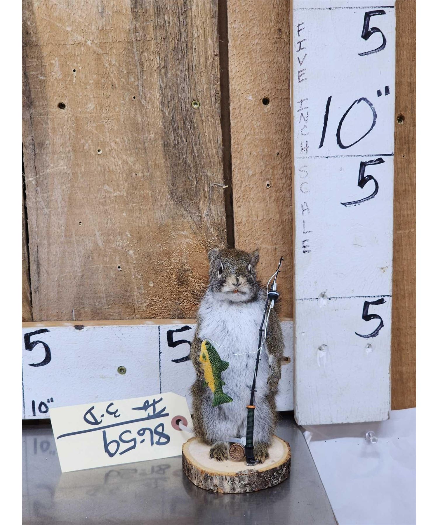 Lot 3D Fishing Squirrel Full Body Taxidermy Mount