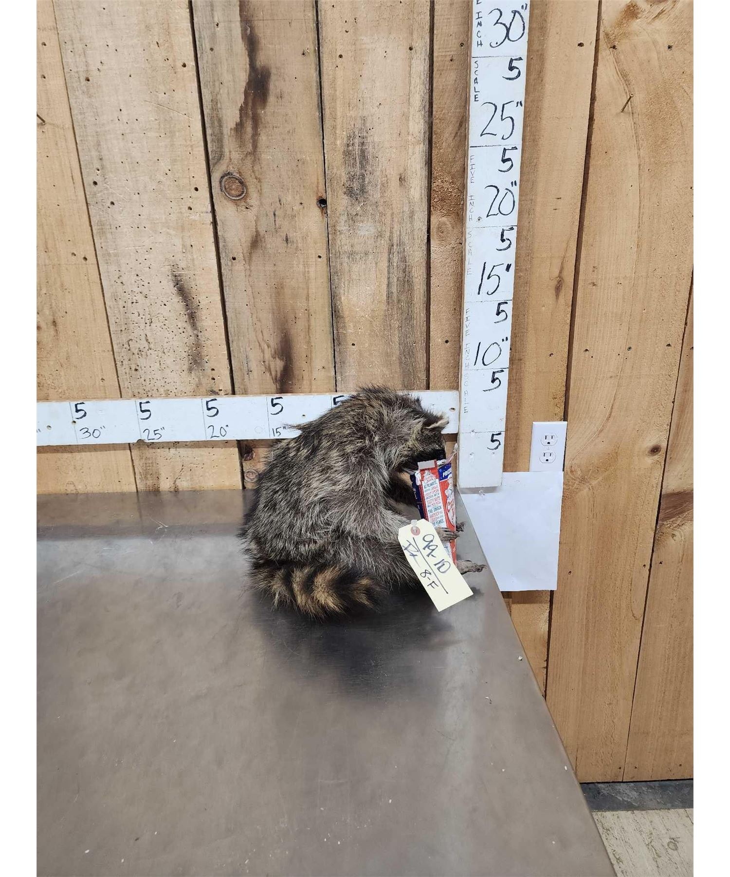 Lot 8F Raccoon Eating Cracker Jacks Taxidermy Mount