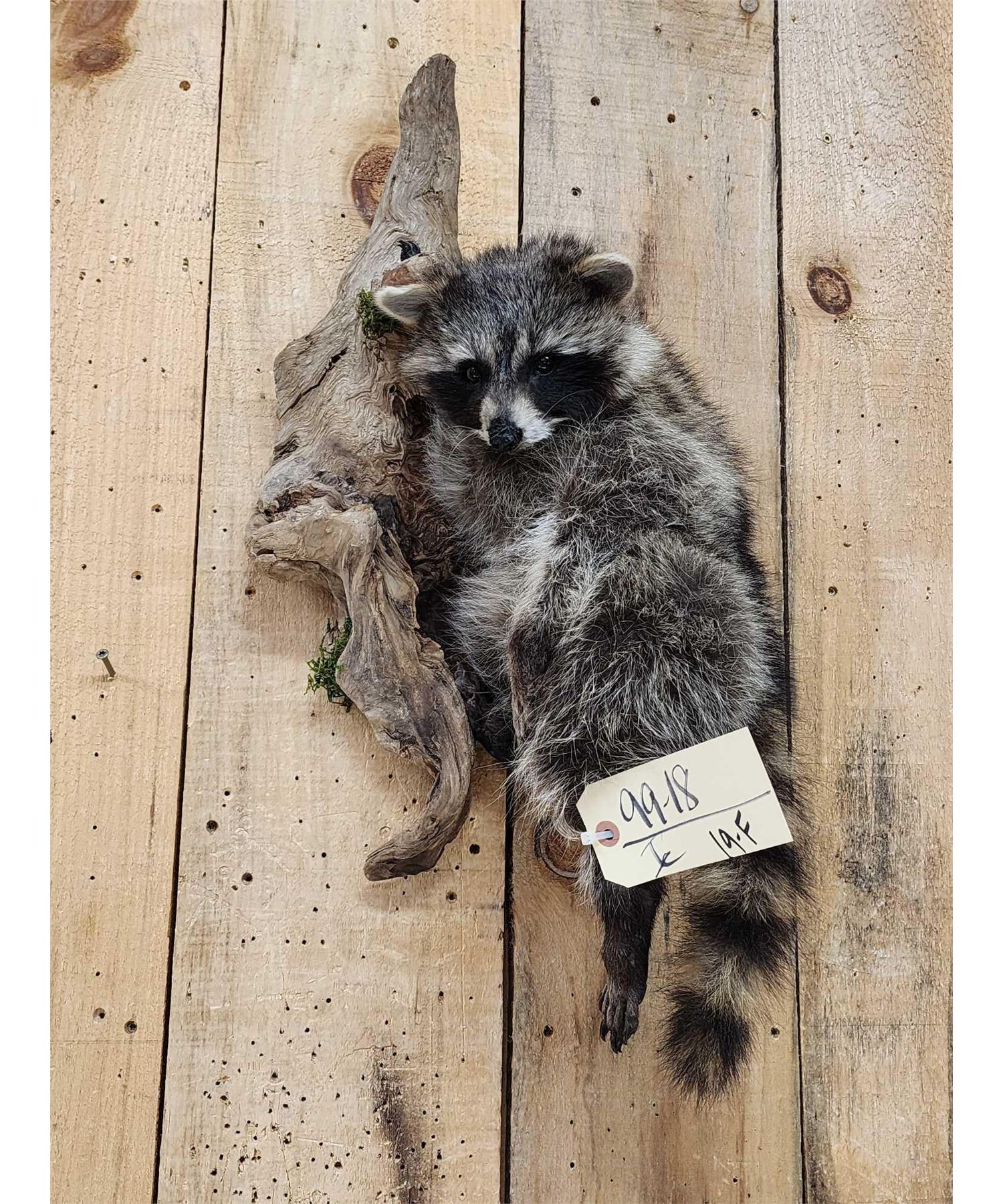 Lot 19F Raccoon Hanging On Driftwood Taxidermy Mount