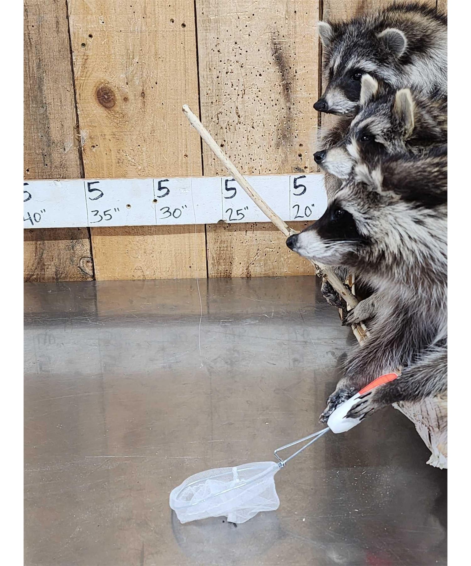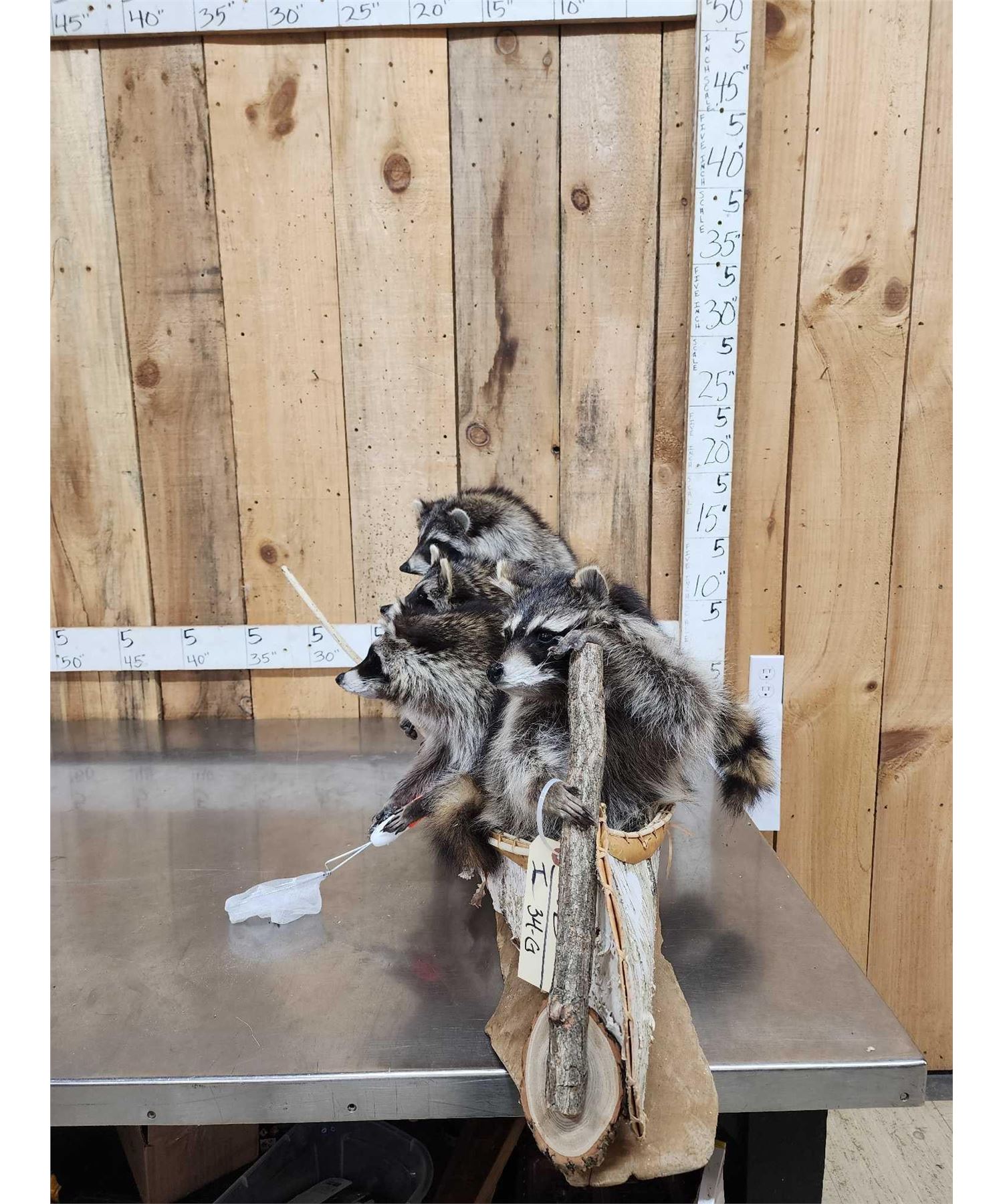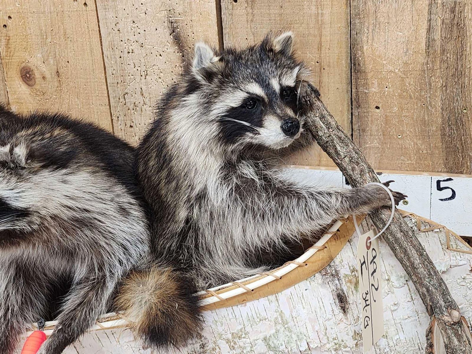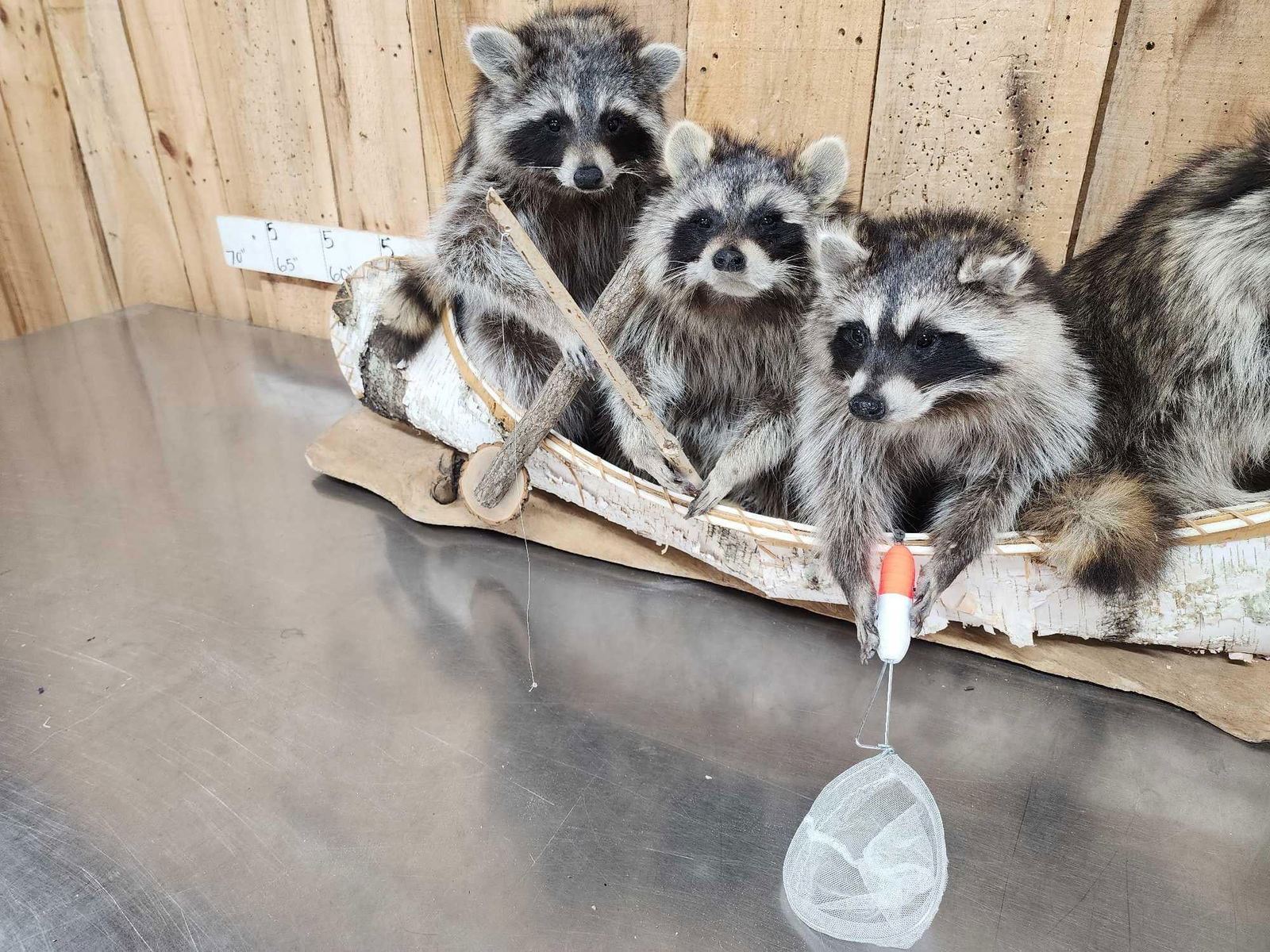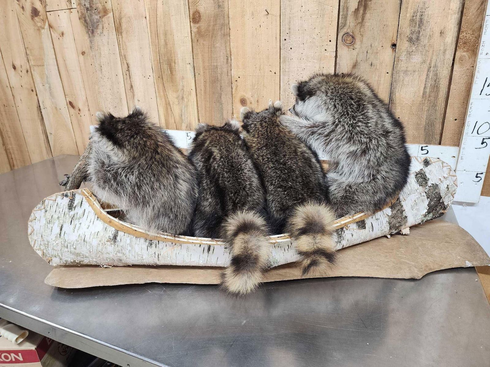 Lot 34G Family Of Raccoons Fishing In A Birch Bark Canoe Taxidermy