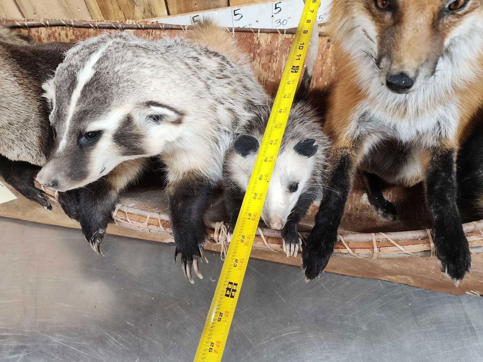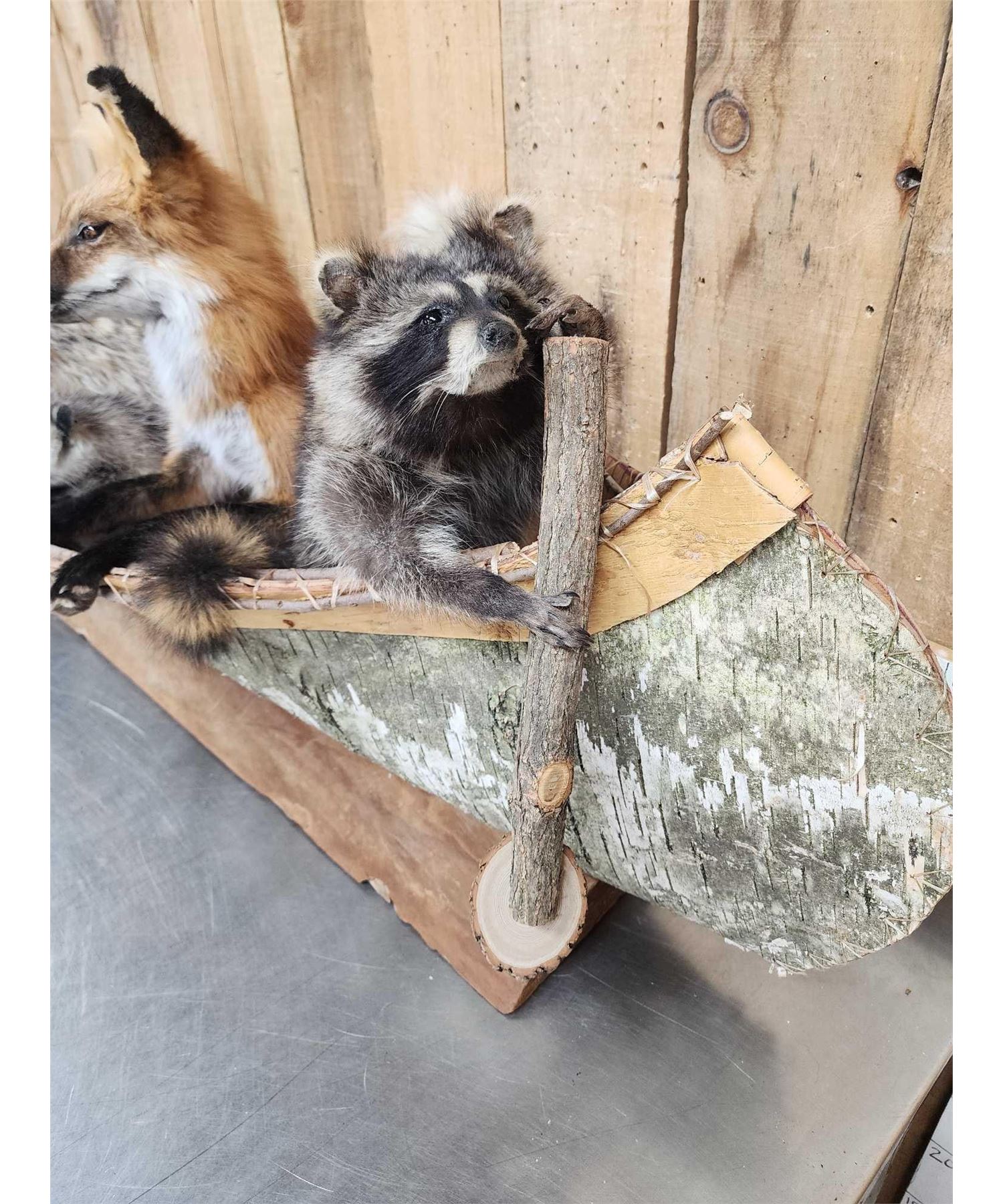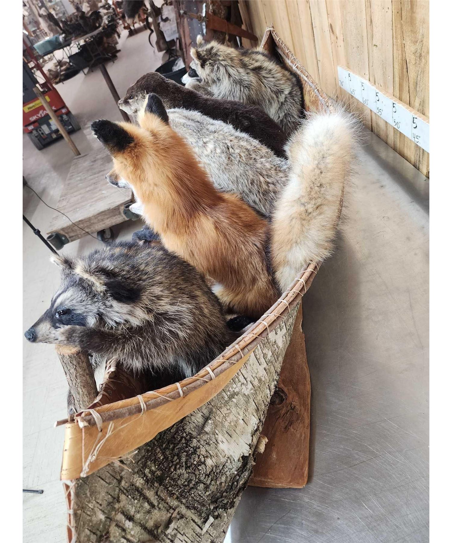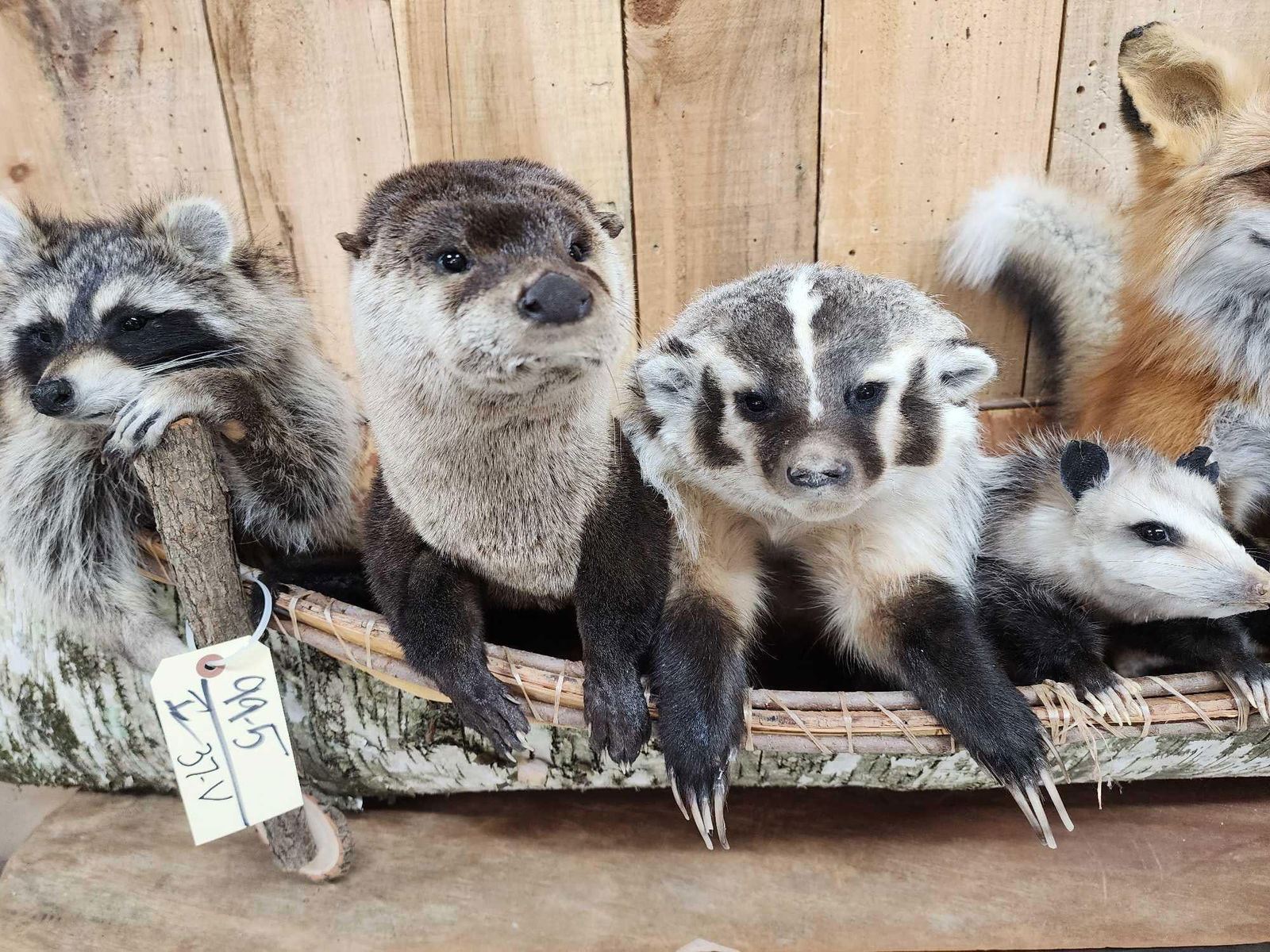99.5 Brand new mount featuring 2 Raccoons Otter Badger Opossum Red Fox floating down the river in a 70" long Canoe cute factor is HIGH!