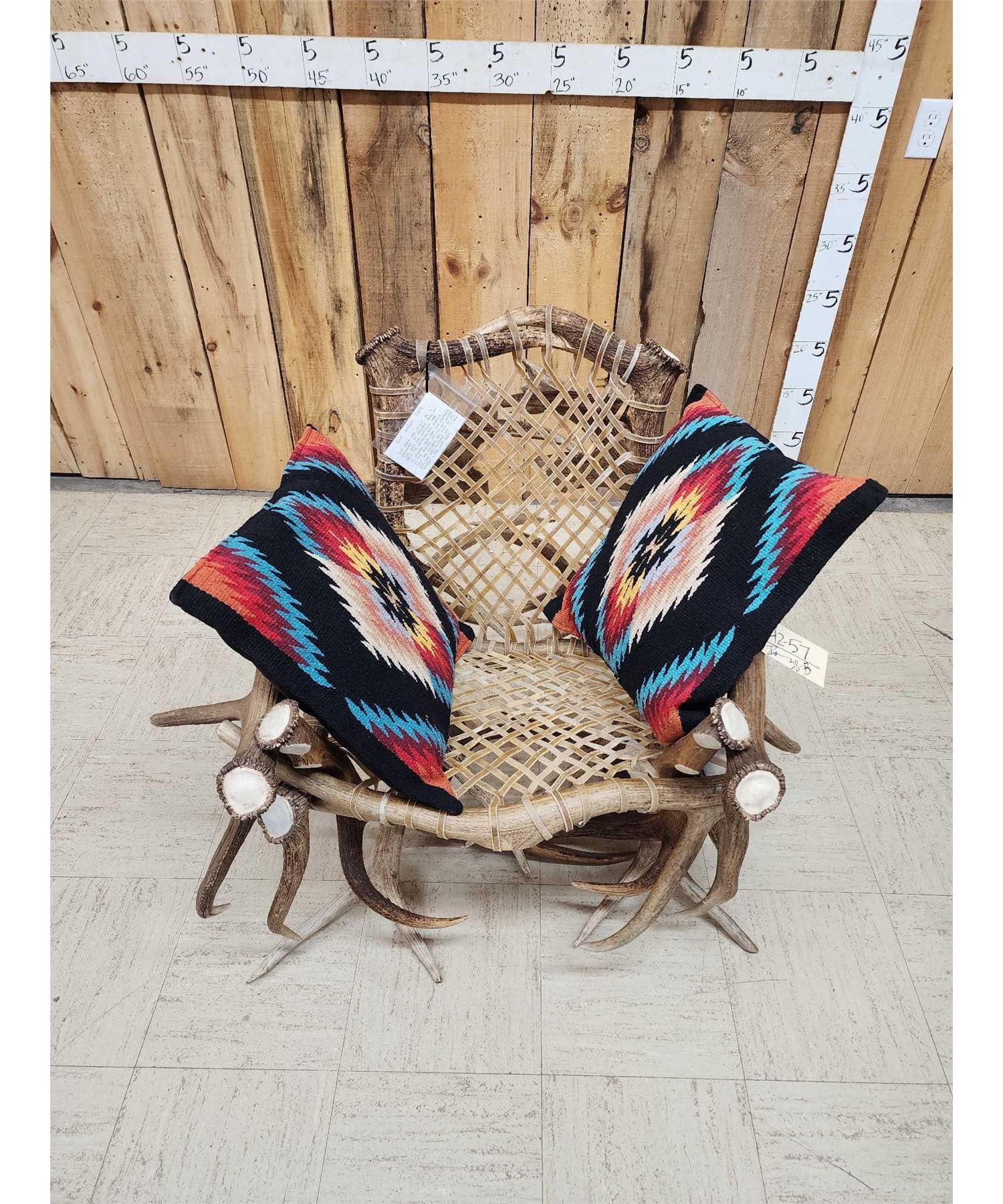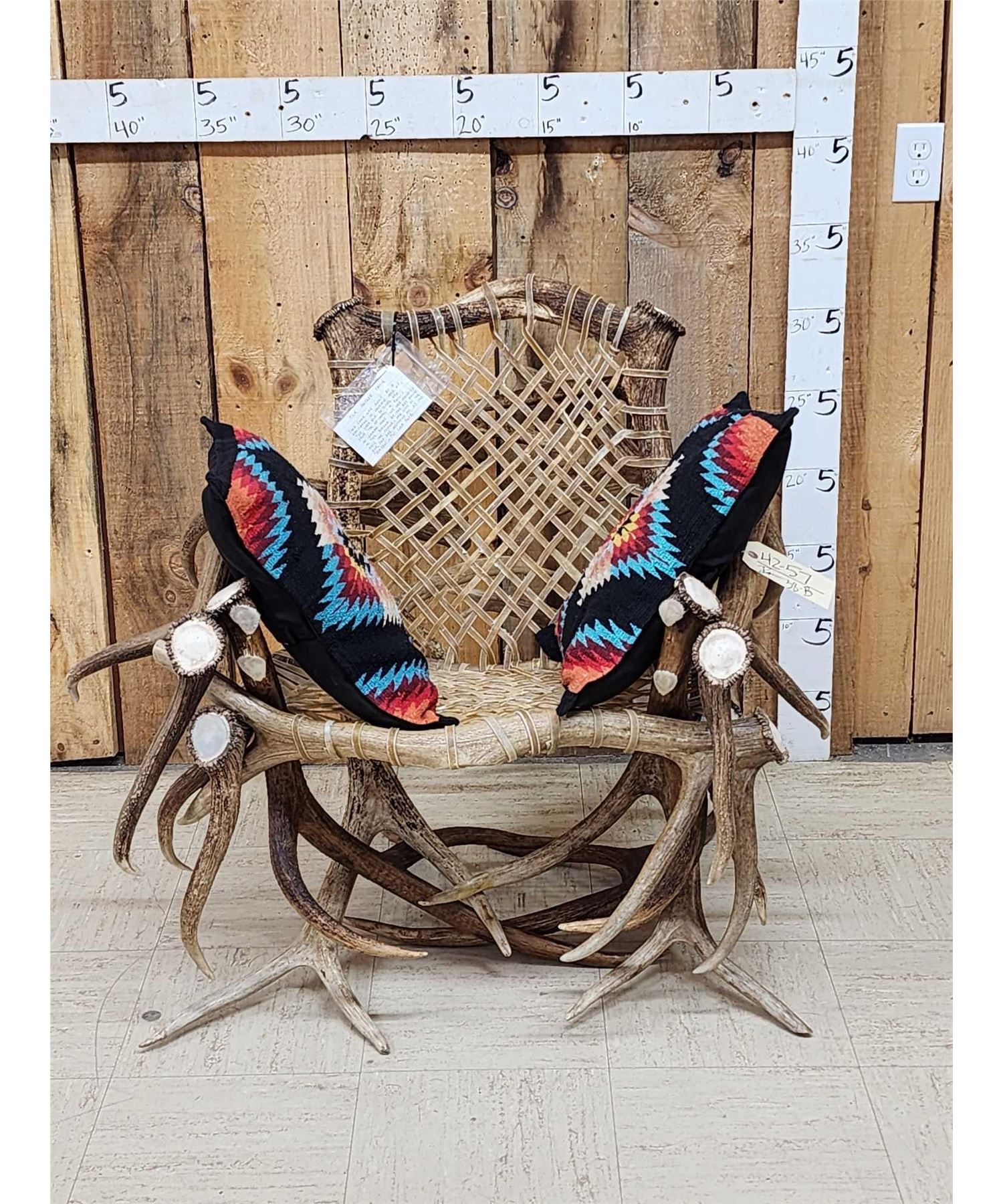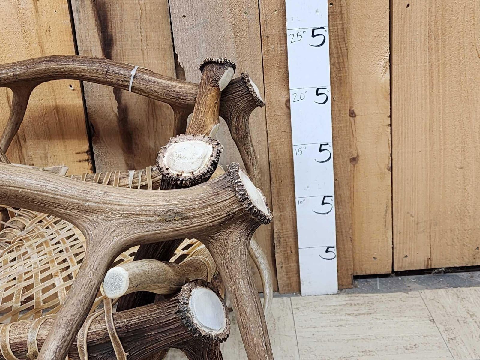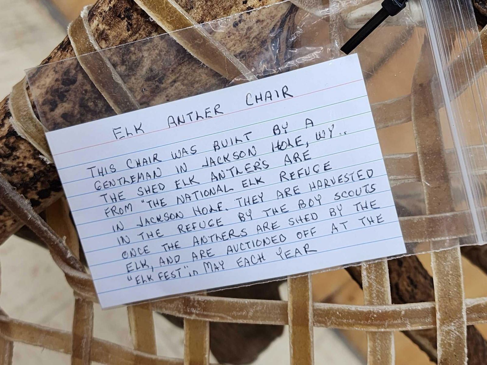42.57 Hand crafted in Jackson Hole Wyoming from all natural Elk Shed Antlers picked up by the Boy Scouts for the yearly Elk Fest . The chair sits quite comfortably with natural Rawhide caning .A very attractive functional piece !