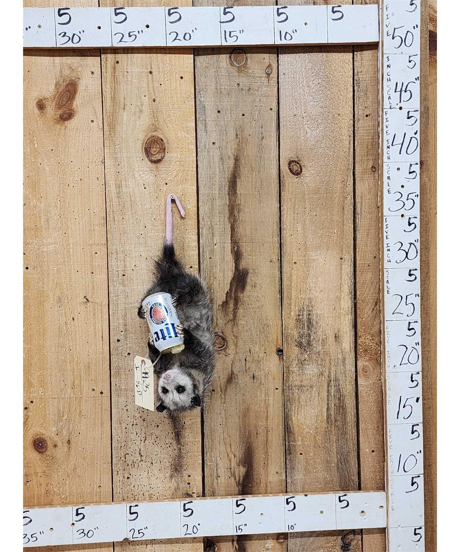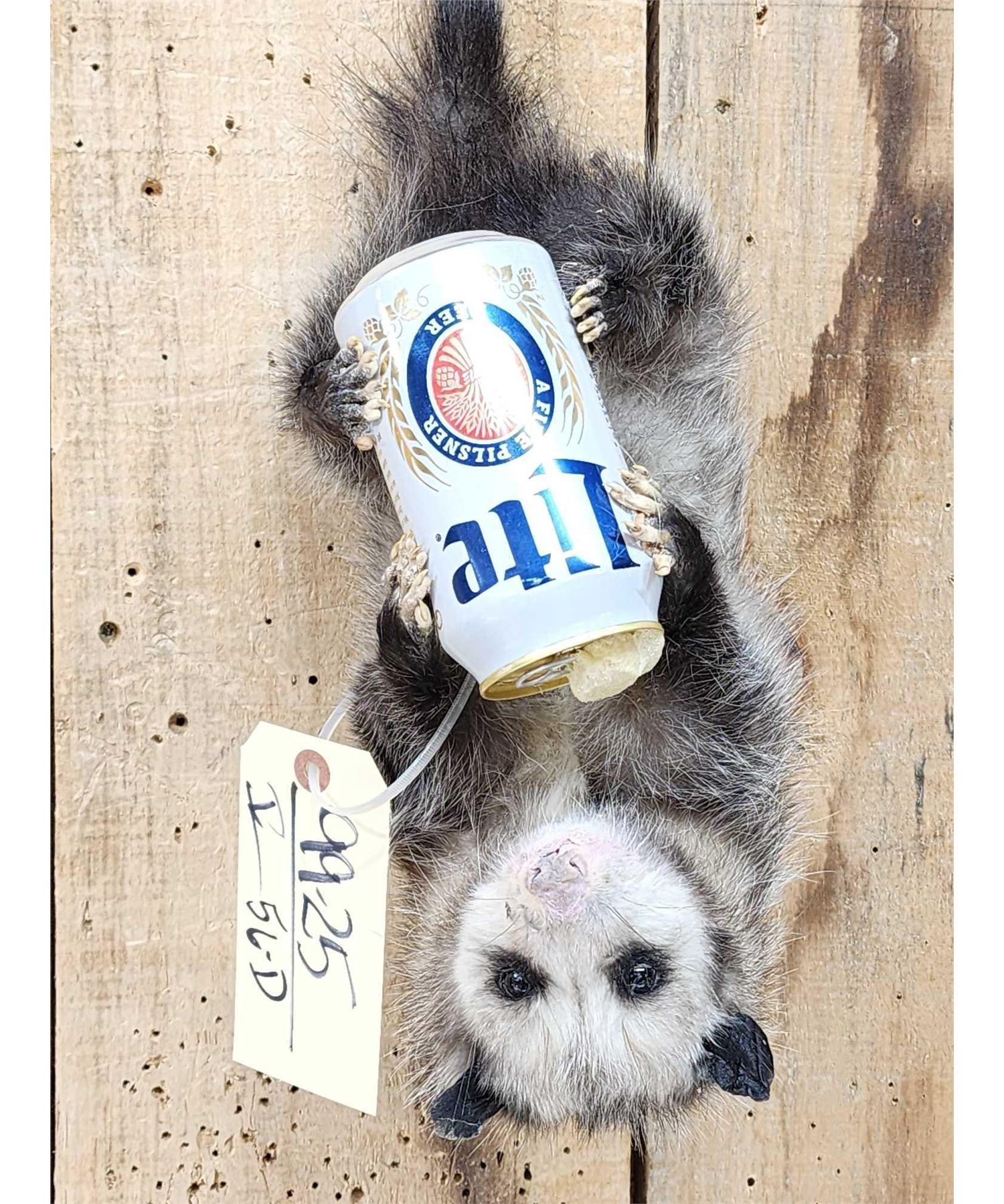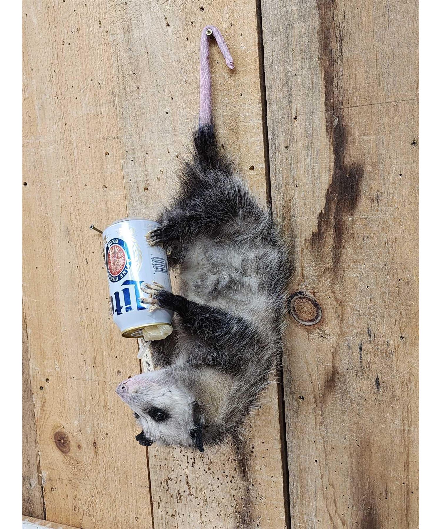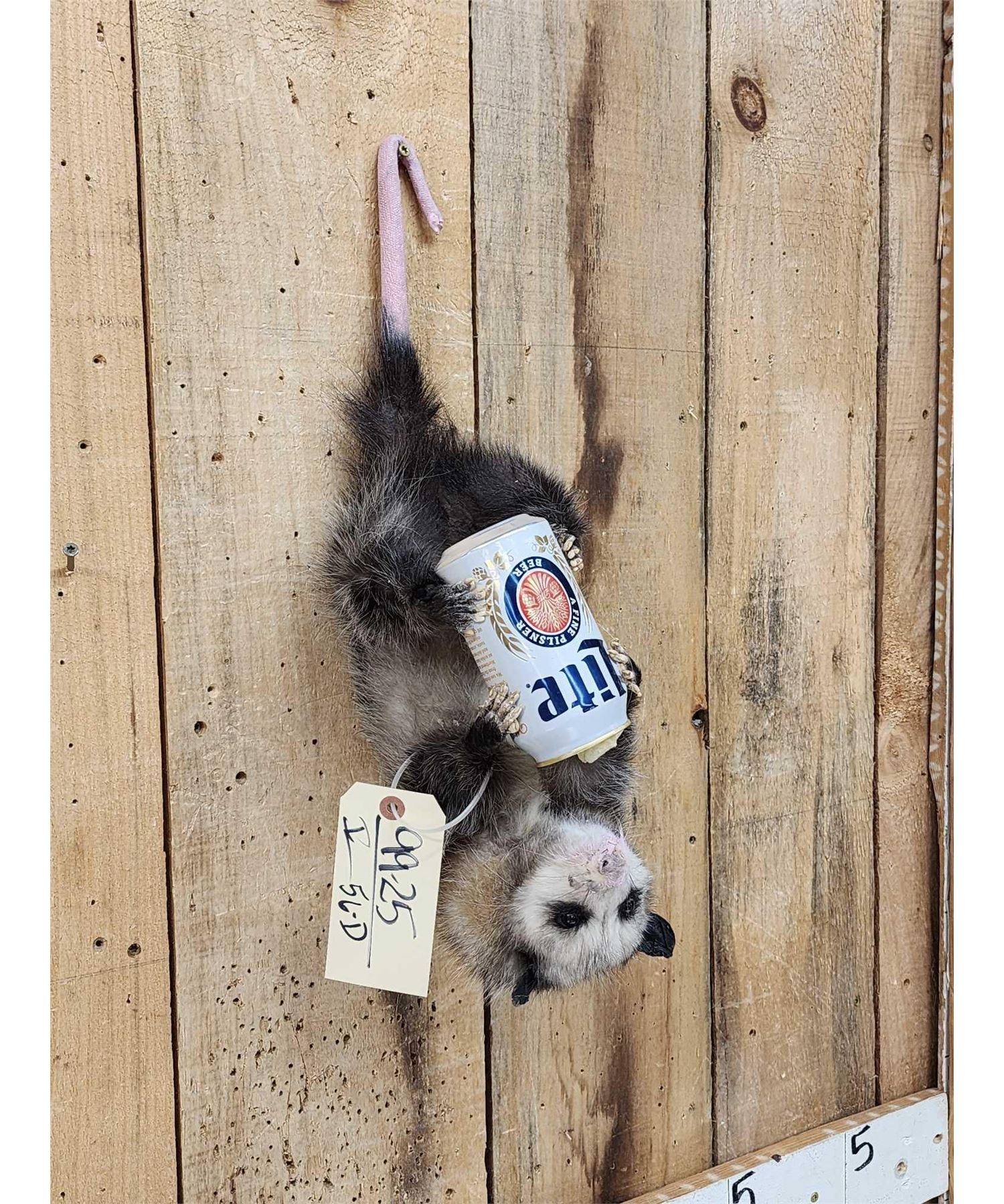 Lot 56D Opossum Hanging By It's Tail Drinking Beer Taxidermy