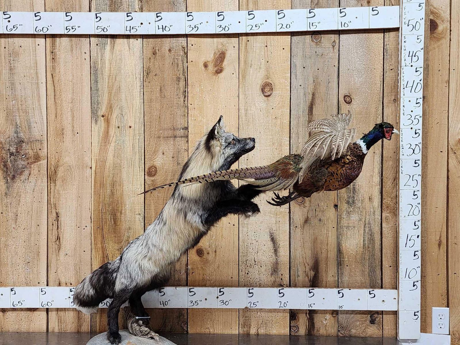 Lot 66I Cross Fox Leaping For A Pheasant Taxidermy Mount