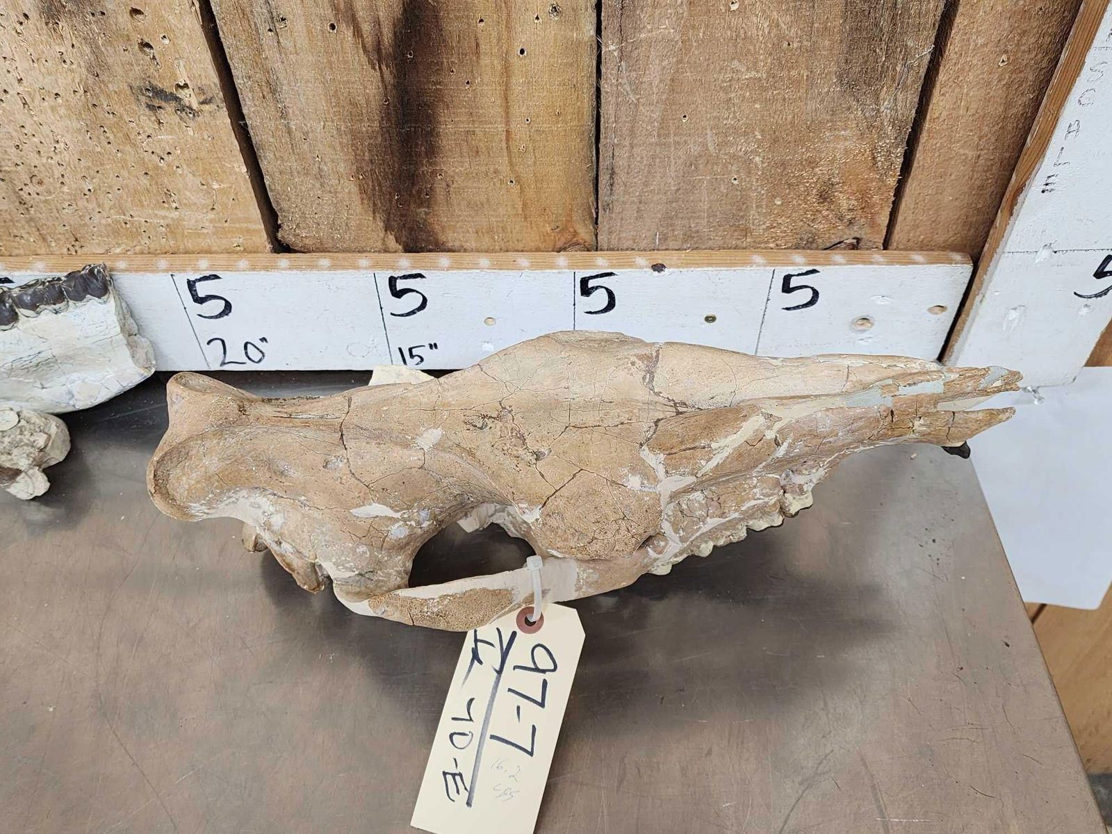 97.7 Extinct hornless Rhinoceros that lived in North America during the Oligocene epoch 23 - 34 Million years ago. Composite skull in mid restoration White River Formation Nebraska total weight 16.2 Lbs