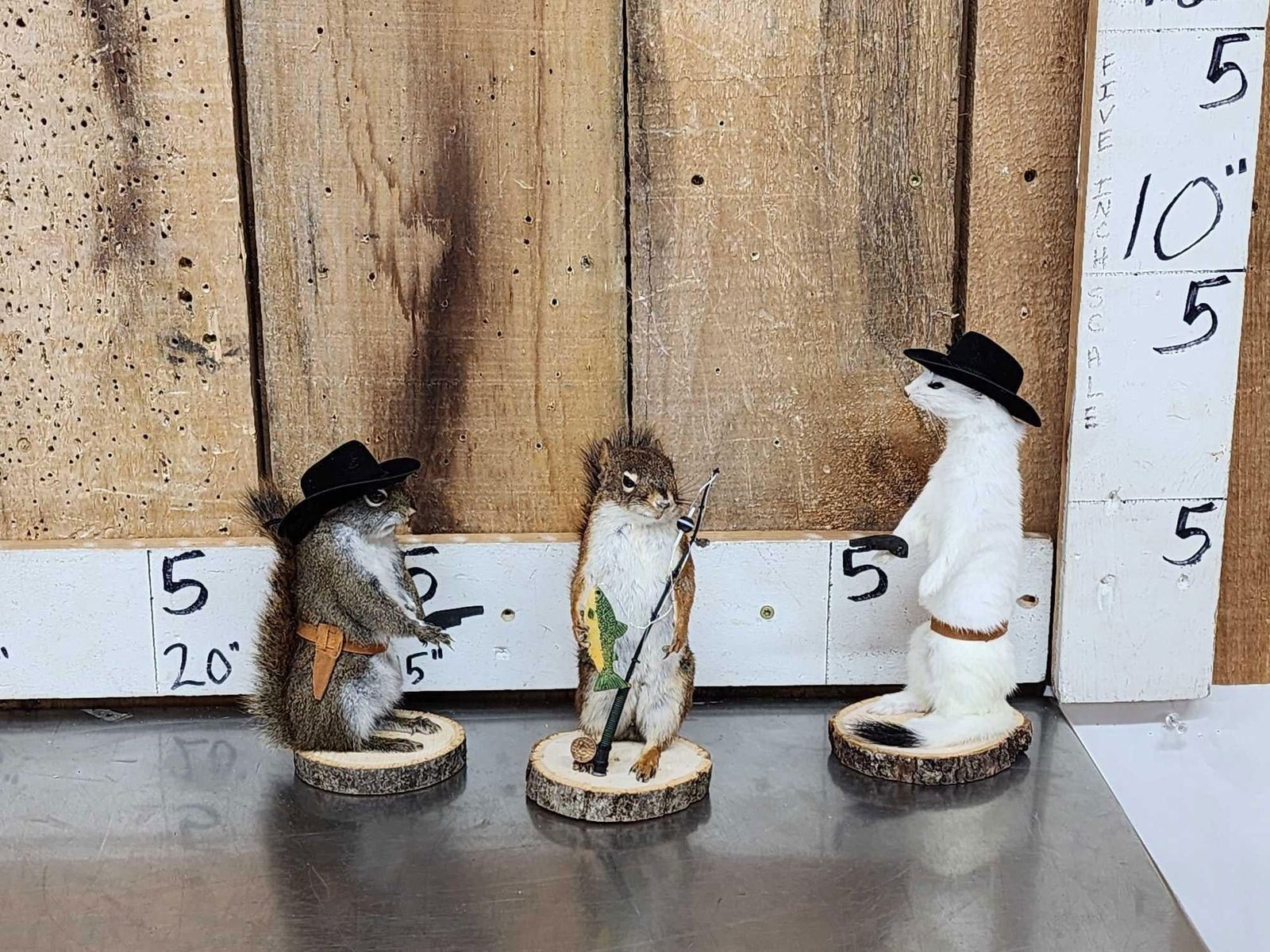 86.51 Includes Sheriff Weasel , Sheriff Squirrel , Fishing Squirrel all Brand new Taxidermy Mounts