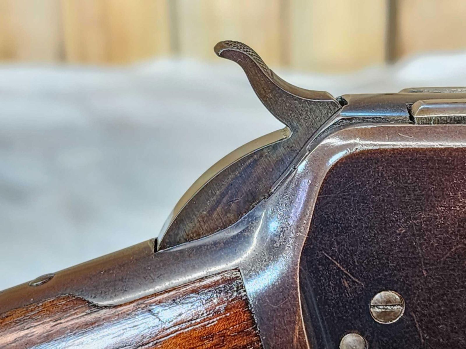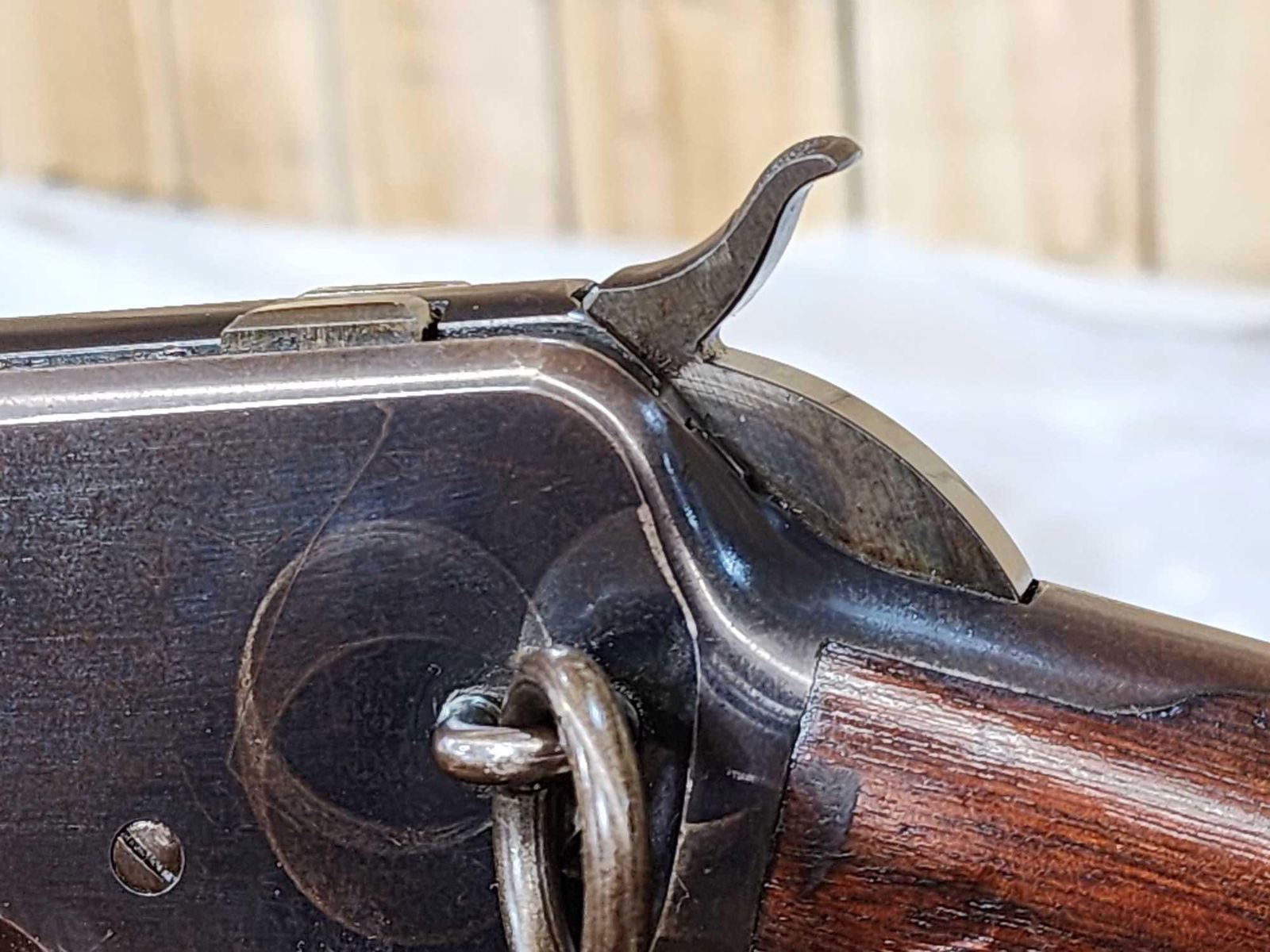 130.3 Beautiful condition for its age 20" barrel shiny bore very pronounced rifling period correct sling mount correct patina very visible case hardening on lever hammer crisp tight action AWESOME piece you will look a long time to find one this good SN 137002