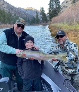 1 day steelhead fishing for 2 people, on the Salmon River near Salmon, Idaho. Fishing will be from a drift boat equipped with heaters. Our Salmon River Steelhead guides use several fishing techniques, but primarily we like back trolling plugs, bait or Steelhead fly fishing depending upon the preference and the skill level of our fishing clients. A fisherman sized lunch is prepared homemade, hot and very tasty. Upgrades are available for more days and lodging.