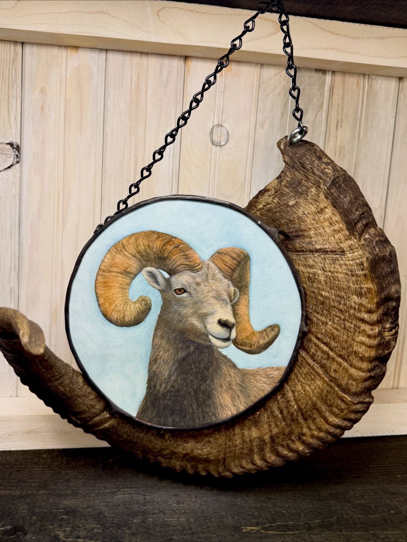 Lot 30 Original Watercolor Painting enclosed inside a real Alaskan Dall bighorn by Megan Stortz