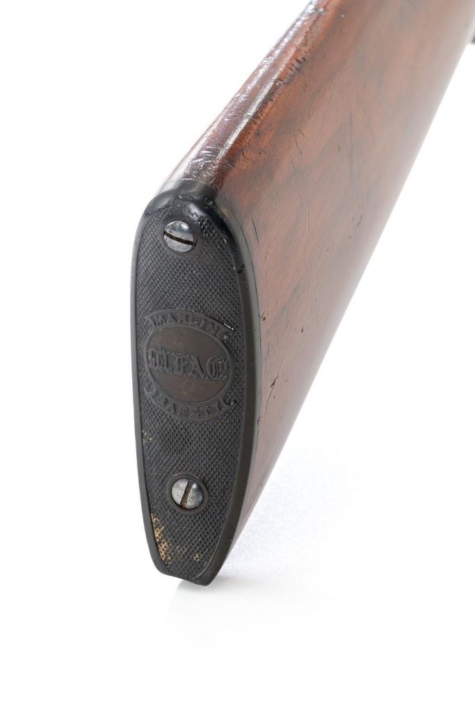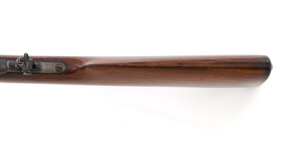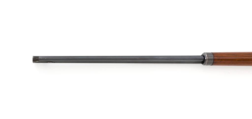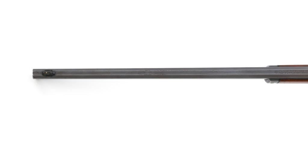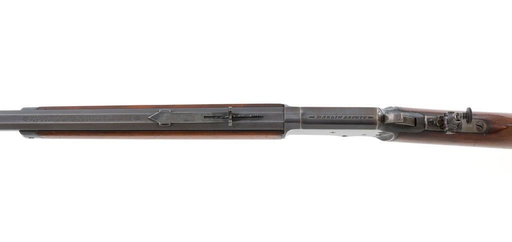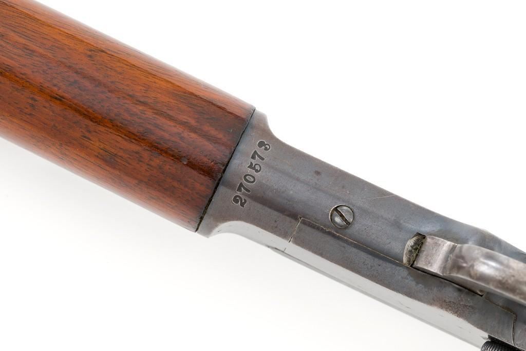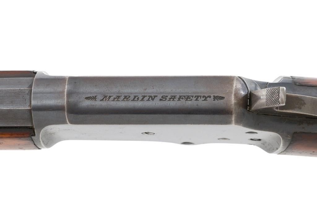 Marlin Model 1892 Lever Action Takedown Rifle, #270573, .22 cal., 24'' octagon barrel, blued with case hardened lever and hammer, straight grip walnut stock and forend, checkered hard rubber Marlin buttplate, dovetailed beaded blade front sight, semi-buckhorn elevator rear sight, and M.S.A. Co. adjustable folding peep sight located at the upper tang. Mfg'd circa 1903. Rifle is in fine condition, displaying approx. 90% blue, showing toning to the barrel, light frosting, and scratches to sides of the receiver. Case colors on the hammer have toned darker; lever is mottled and muted. Factory markings are sharp. Wood retains most of its finish, with small dents and scratches scattered throughout. Action is crisp and functions smoothly. Bore is very good with defined rifling. Right edge of the muzzle face with a moderate impression. Est.: $800-$1,200. (C&R/PPT)