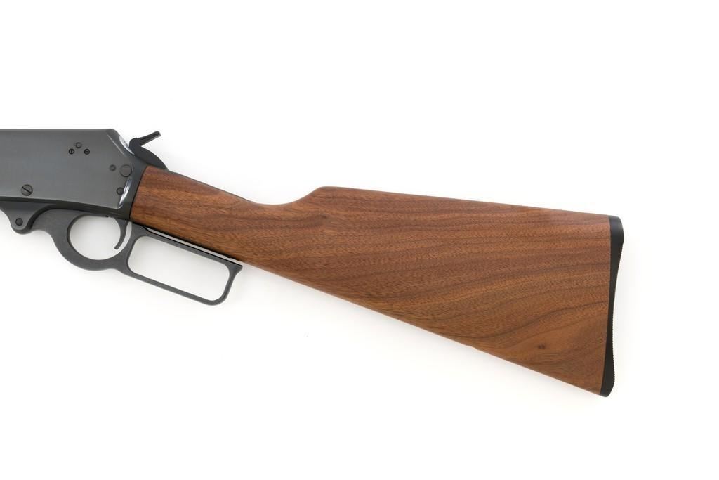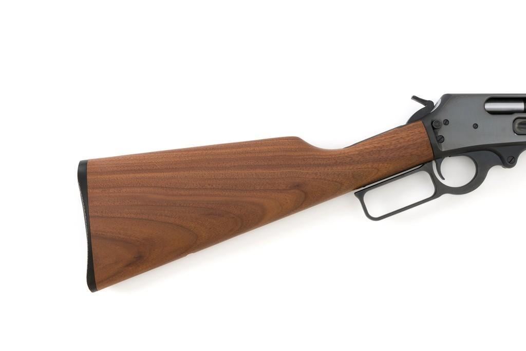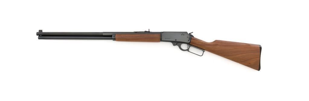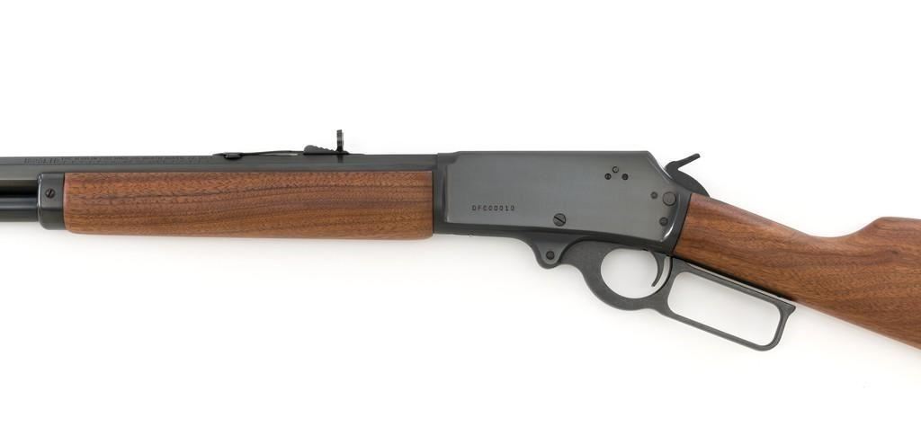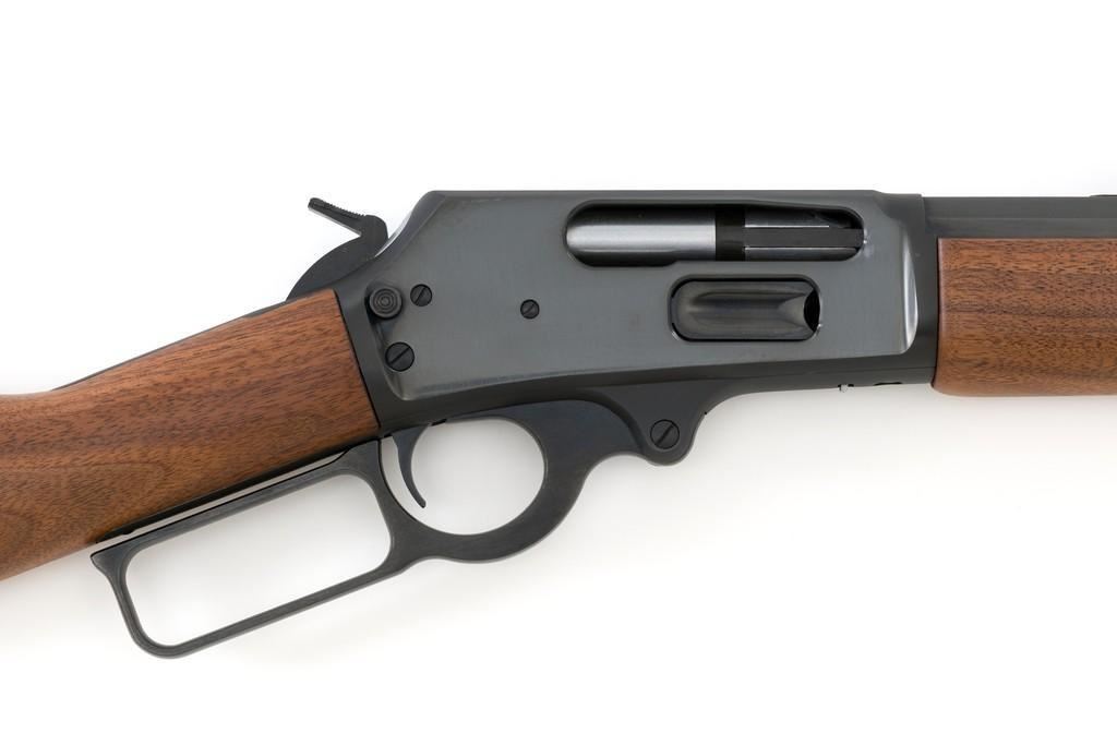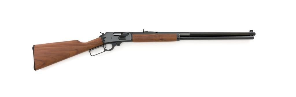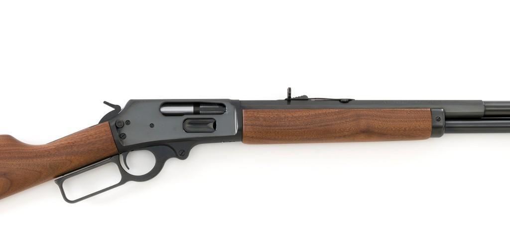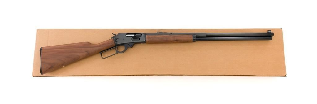 Scarce Marlin Model 1895 LTD I Lever Action Rifle, #DFC00010, .45-70 cal., 24'' ''JM'' marked octagon to round barrel, blue finish; smooth walnut forend and straight grip stock with Marlin ''Bullseye'', ending with a checkered Marlin plastic buttplate, providing a 13.25'' LOP. Marbles factory dovetailed brass tipped blade front and buckhorn rear sight; factory drilled and tapped receiver. Includes the factory cardboard box with Styrofoam insert and matching end label, containing instructions, warranty card, congratulations letter, and associated packaging materials. Mfg'd 1997 for Davidson's and limited in production to 1,001 rifles. Rifle is as new in the factory box and appears unfired. Factory lettering is sharp. Stock with desirable straight grain figure. Action is crisp. Bore is mirror bright with excellent rifling. Est.: $1,200-$1,800. (Modern)