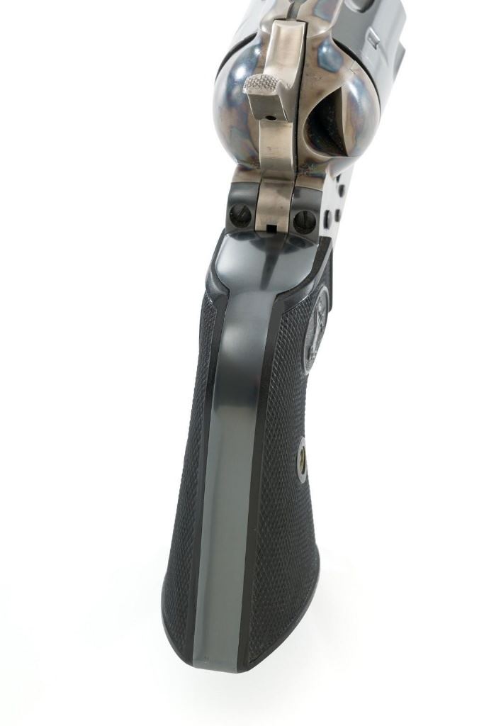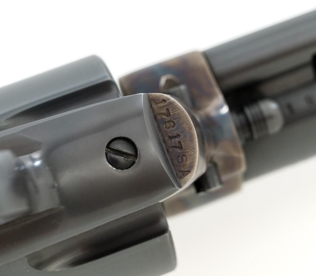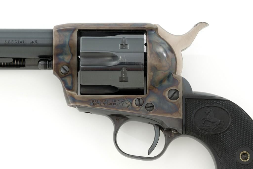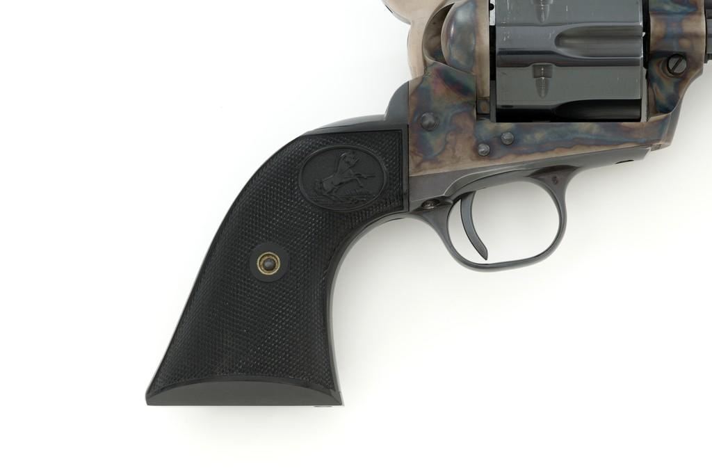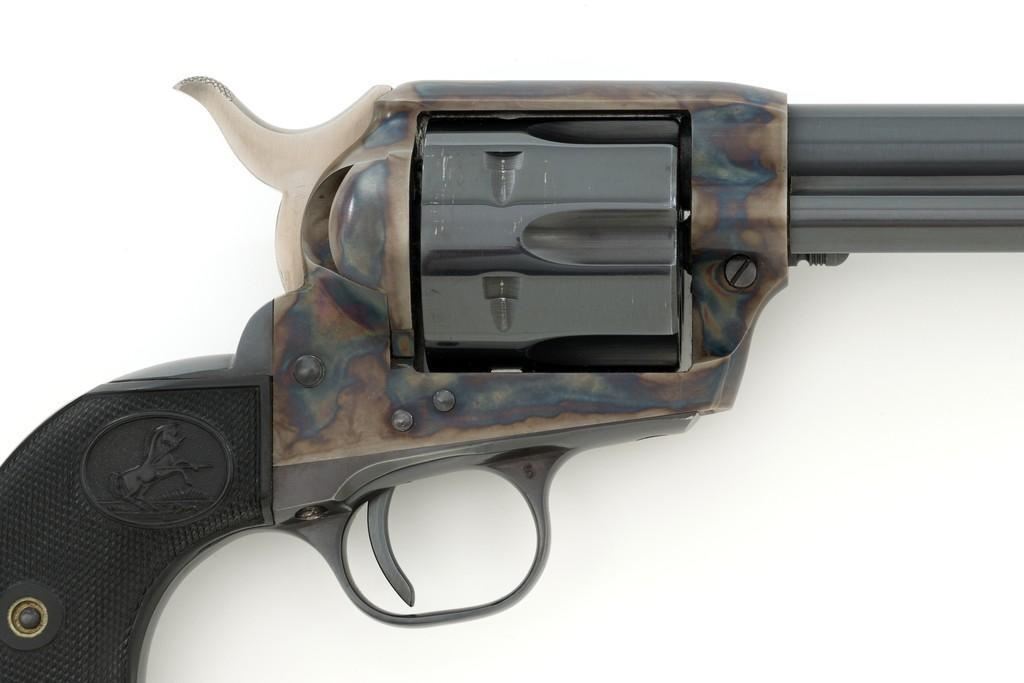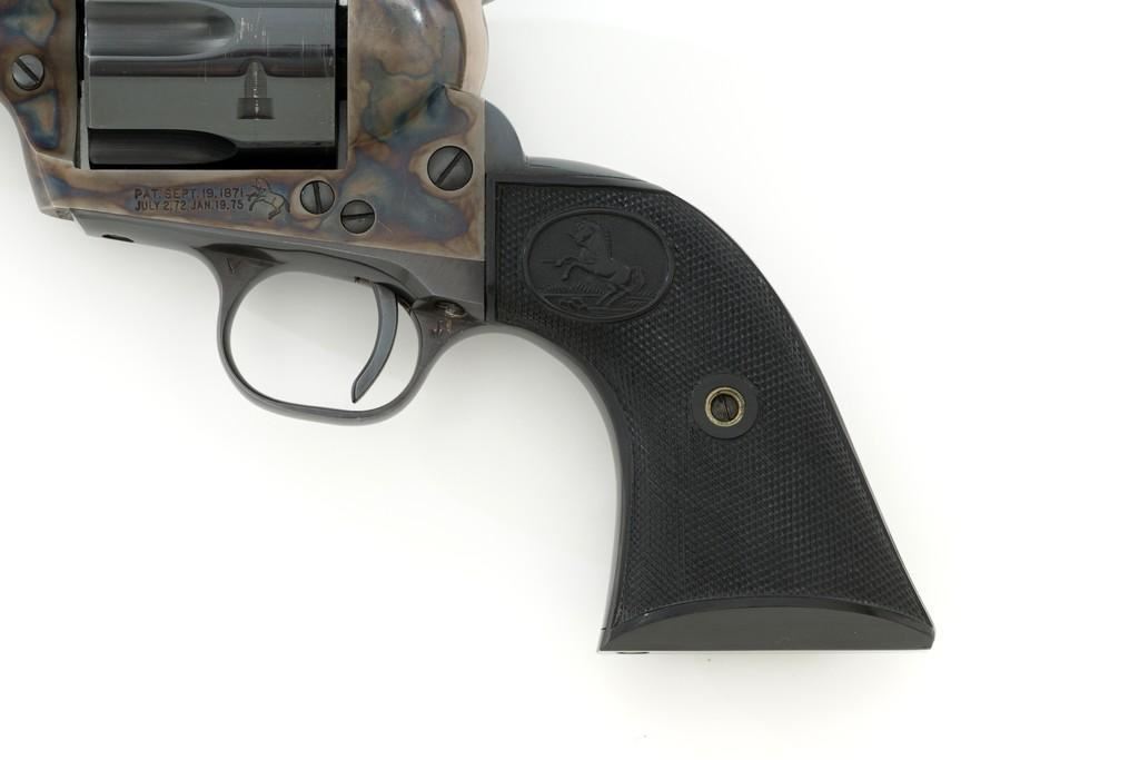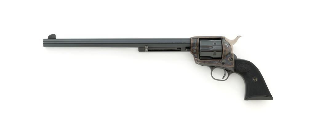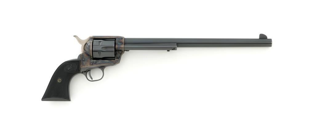 Colt 2nd Generation Buntline Special Single Action Army Revolver, #17617SA, .45 Colt cal., 12'' barrel, blue and case hardened finish, checkered two-piece hard rubber Colt grips, fixed blade front sight, and ''U''-notch rear sight. Mfg'd 1957. Revolver is in excellent condition, retaining approx. 98% blue and vivid case colors, showing some mild scratching on the cylinder. Hammer is polished bright. Grips are also excellent. Factory markings are sharp. Action is crisp. Bore is bright with excellent rifling. Est.: $2,000-$2,500. (C&R/PPT)