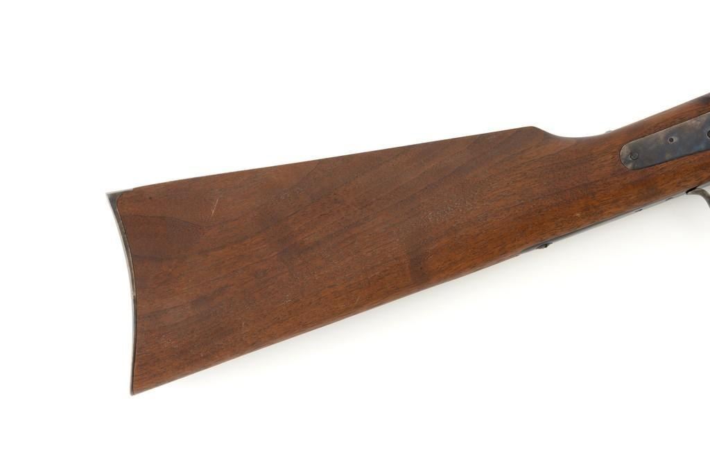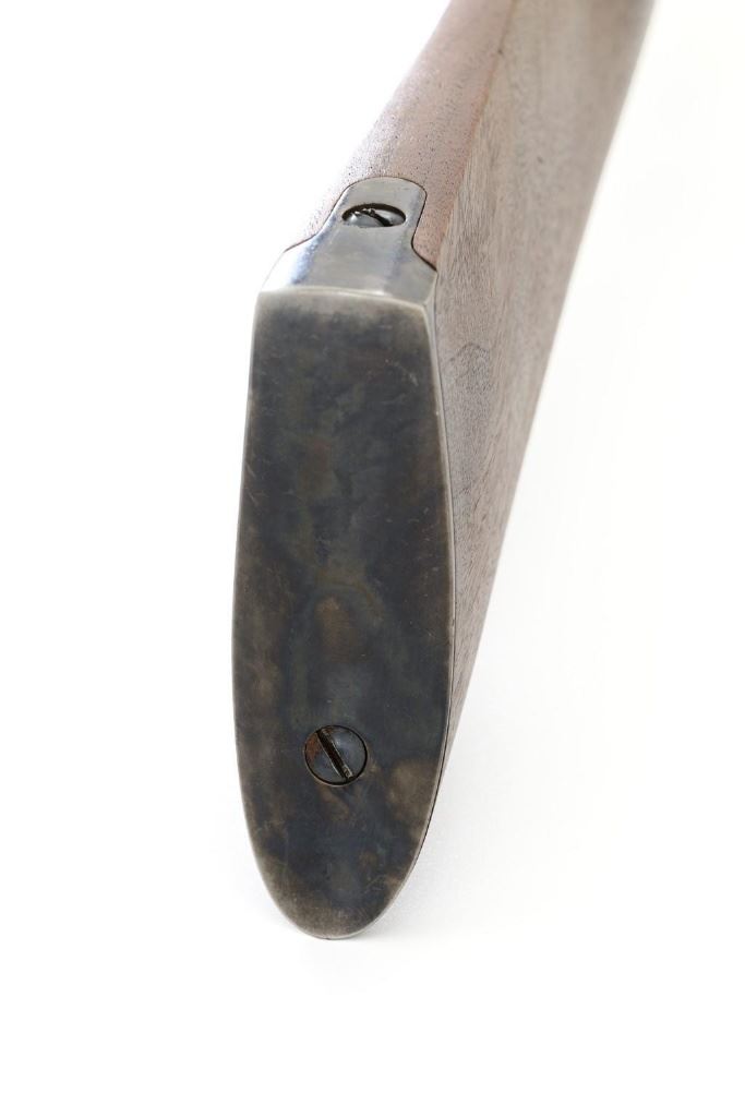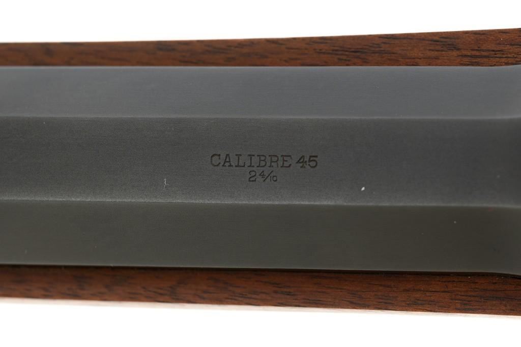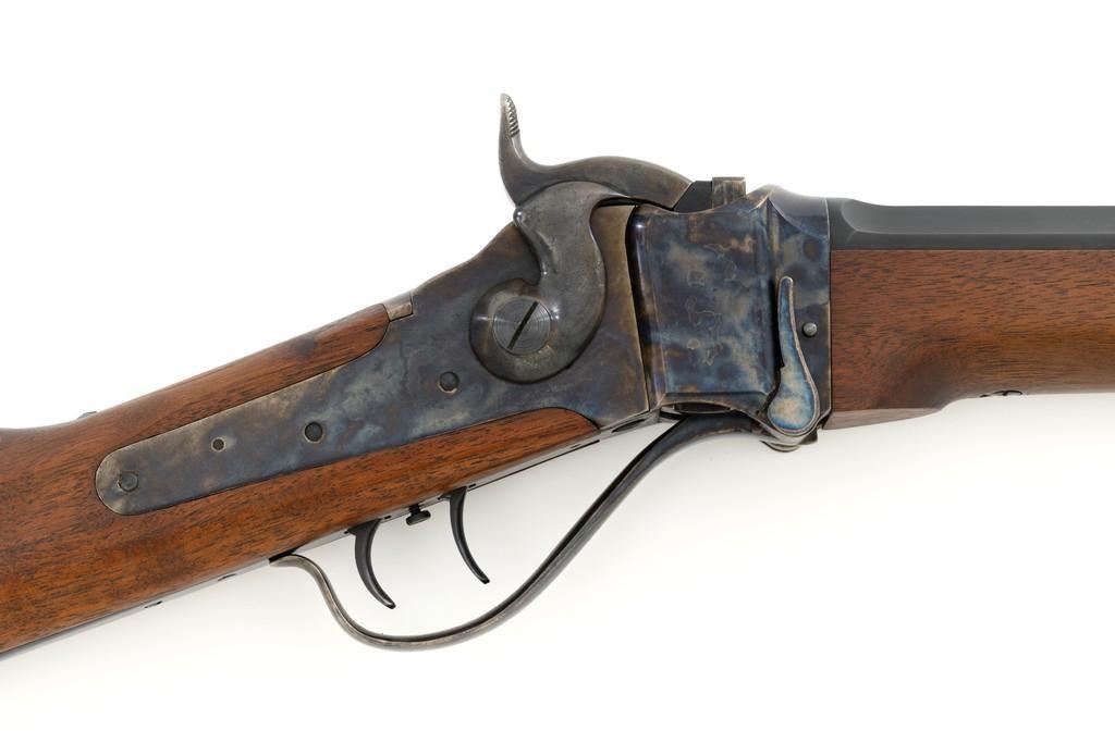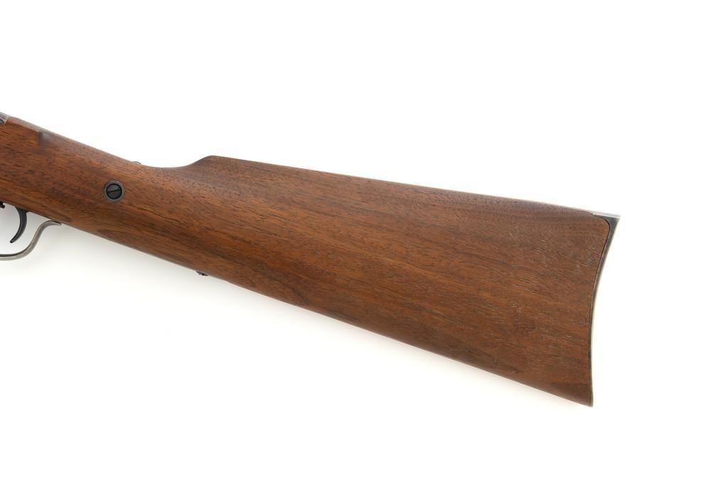Farmingdale Shiloh Sharps Model 1874 Single Shot Rifle, #3313, .45-90 (.45 2 4/10) cal; 30" octagonal barrel with blue finish. Top of barrel flat is marked "Old Reliable", "SHILOH RIFLE MFG. CO." , "CALIBRE 45", and "2 4/10''. Receiver, lever, and hammer with a color case hardened finish; left side is marked "SHILOH RIFLE MFG. CO. / FARMINGDALE, N.Y." Straight walnut stock with case colored steel military buttplate and forend with Schnabel tip; LOP: 13-3/4". Sights include a nickel silver blade front and folding semi-buckhorn ladder rear. Rifle also features double-set triggers. Matching numbered barrel. Overall weight is approx. 10 lbs. 2 oz. Rifle is in excellent overall condition. Barrel retains approx. 99%+ original factory blue. Case colors are vibrant and show minimal wear. Wood with only light marks from handling and use. Action operates smoothly and double-set triggers function properly. Bore is mirror bright with excellent rifling. Est.: $2,000-$2,500. (Modern/PPT)