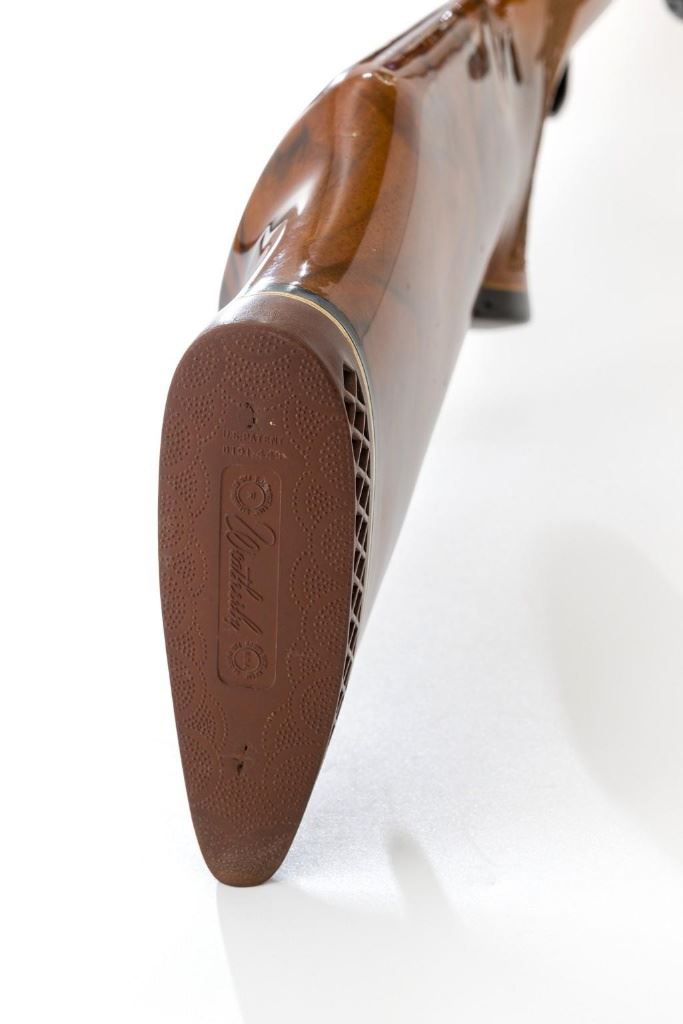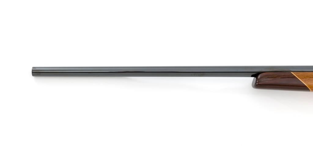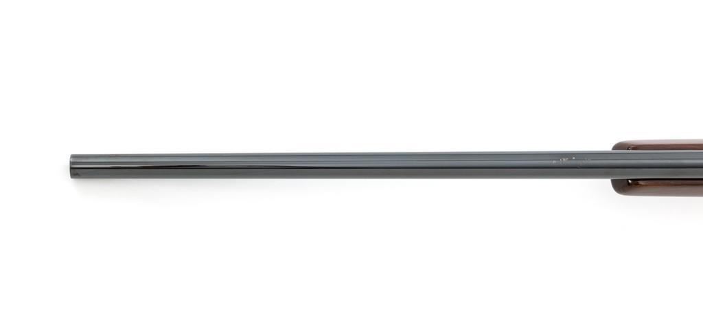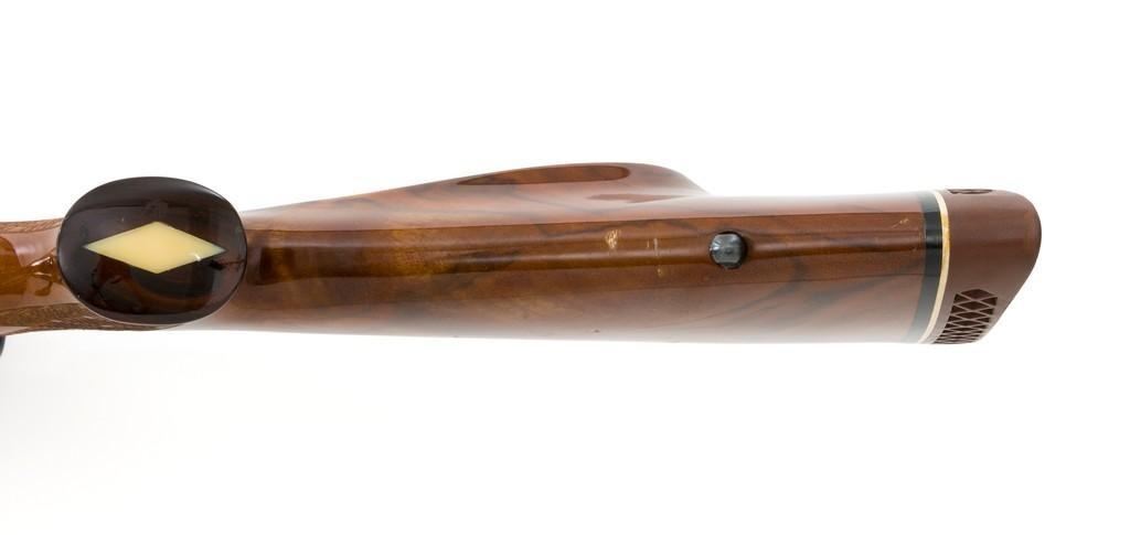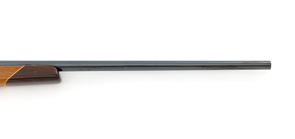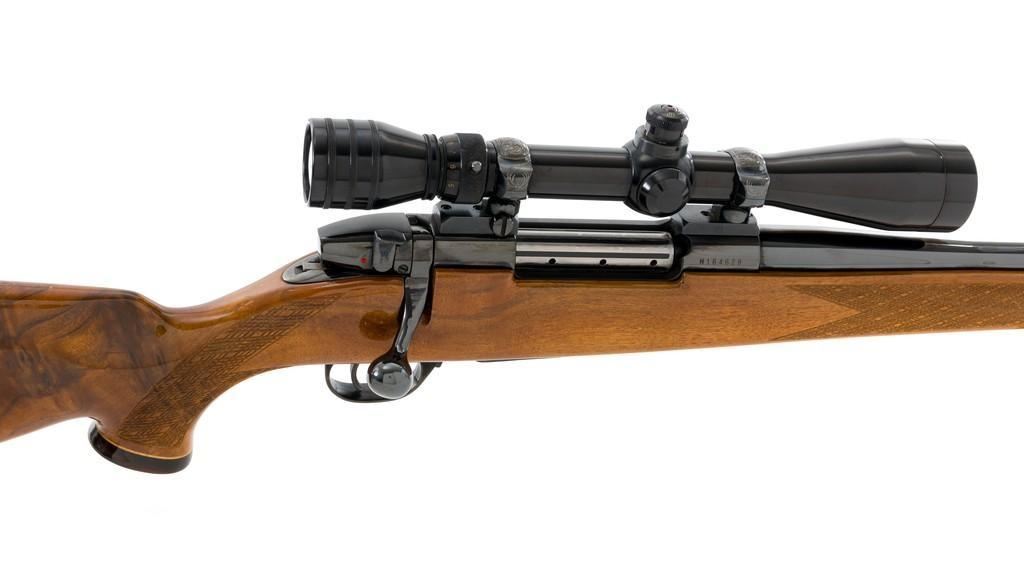 Weatherby Mark V Deluxe Bolt Action Rifle, #H164628, .300 Wby. Mag. cal., 26'' barrel, polished blue finish, no provision for sights. Finely skipline checkered gloss finished French AA walnut one-piece Monte Carlo stock with rosewood forend tip and grip cap, sling swivel studs, ending with a ventilated rubber recoil pad, providing a 13-3/8'' LOP. Left side of the receiver is marked ''MADE IN JAPAN''. Mfg'd 1983. Rifle is topped with a Redfield two-piece bases, engraved rings, and a Redfield 3-9x40mm scope, finished in gloss black with a duplex reticle, and includes a set of rubber lens covers. Scope is in fine condition with minor marks and bright, clear optics. Rifle is in near excellent overall condition, retaining approx. 97-98% factory blue, with an area of scratching on top of the barrel showing bare metal. The bottom metal shows light wear with thinning finish and edgewear on the trigger guard. Stock is also near excellent, with attractive figure and mineral streaking in the buttstock, displaying light scrapes and indentations, primarily on the buttstock. Action functions smoothly and the trigger is crisp. Bore is mirror bright, showing little use. Est.: $1,500-$2,000. (Modern/PPT)