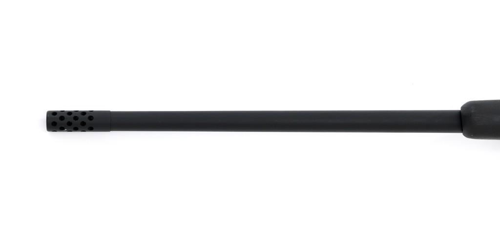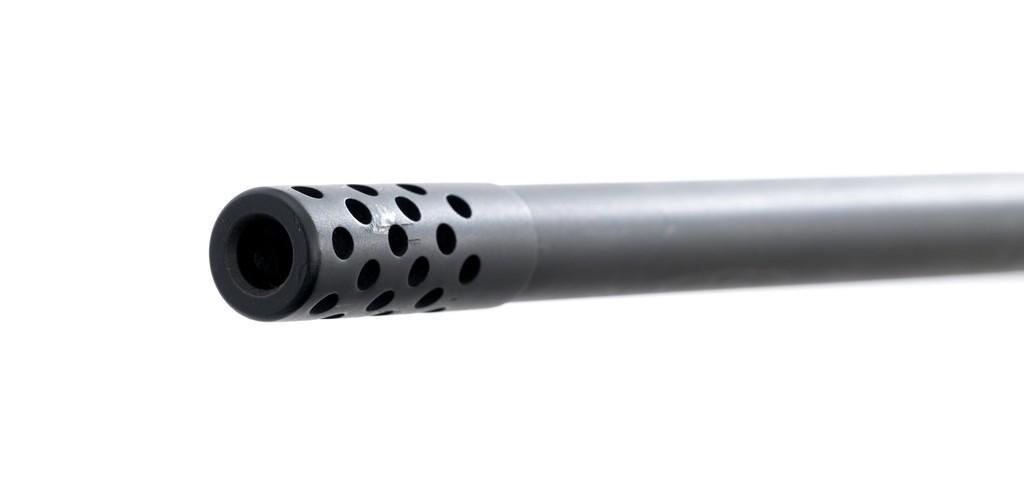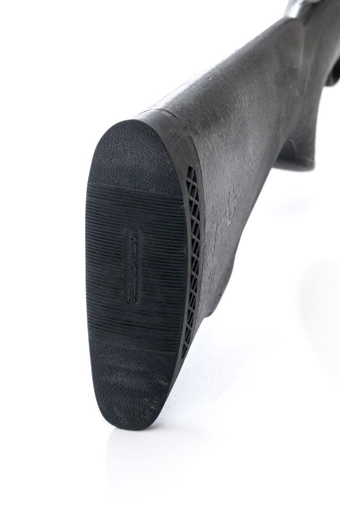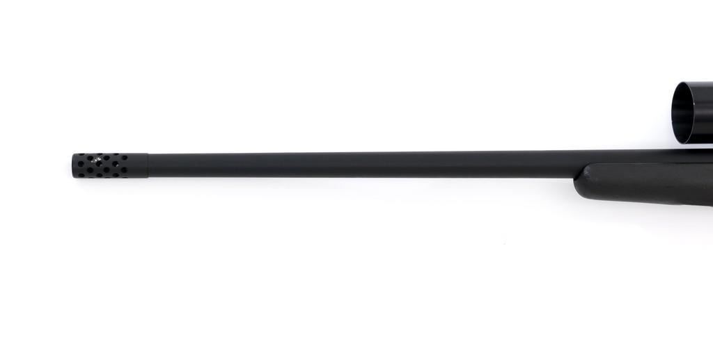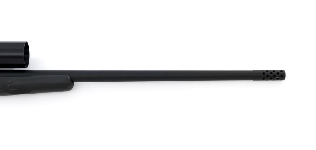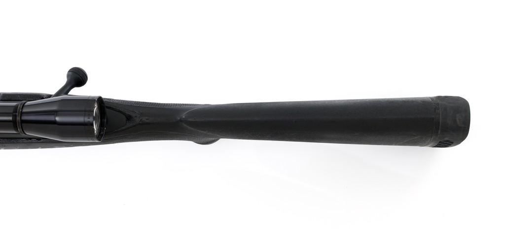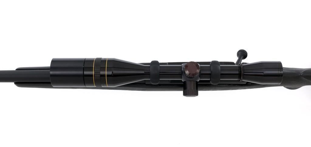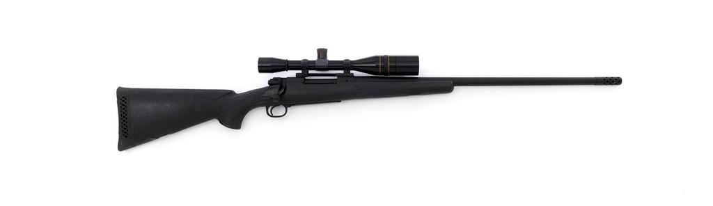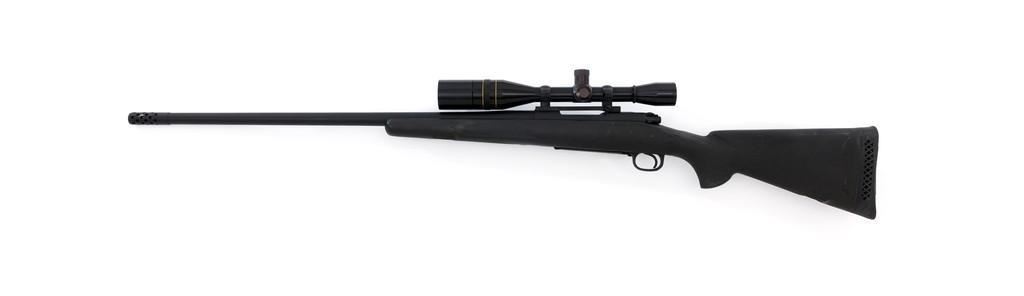 Custom Winchester Model 70 Bolt Action Rifle, #G1847047, .375 H&H cal., 24'' barrel with muzzle brake, matte blue finish. The checkered synthetic Bell & Carlson one-piece pistol grip stock has sling swivel studs and a ventilated rubber recoil pad, providing a 13.5'' LOP. Topped with a one-piece Redfield base, rings, and a Leupold 10x fixed power scope, with an adjustable objective, target turrets, gloss black finish, target dot reticle, with an added sunshade. Scope is in excellent condition with bright, clear optics. Rifle is in near excellent overall condition as refinished, retaining approx. 98%-99% matte blue finish, with light marks along the barrel and copper fouling in the muzzle brake. Receiver and trigger guard show minor handling marks. Stock is very good with scattered scuffs, scratches, and some areas of flattening to the checkering. Action functions smoothly. Bore is near excellent with crisp rifling. Est.: $1,000-$1,500. (Modern/PPT)