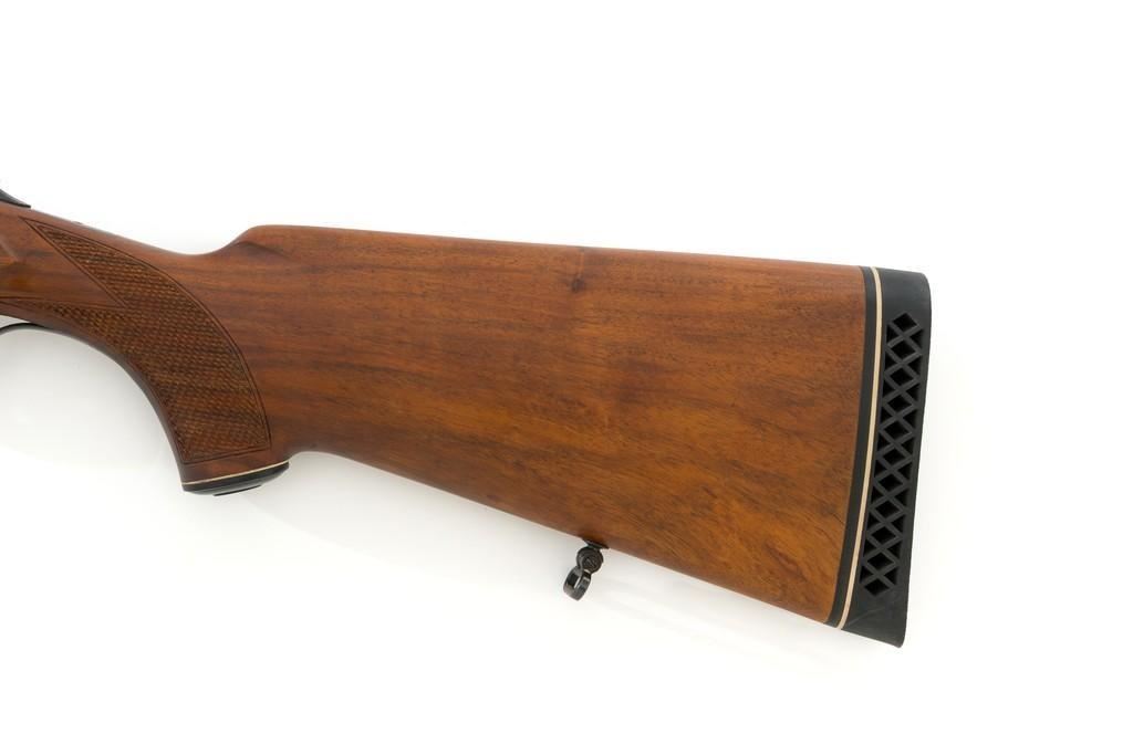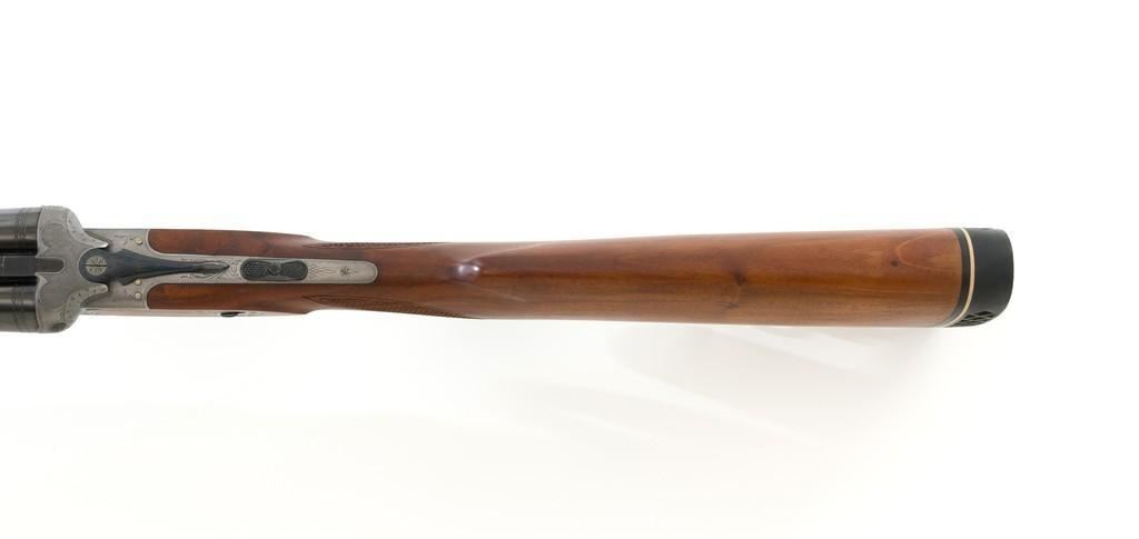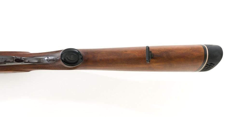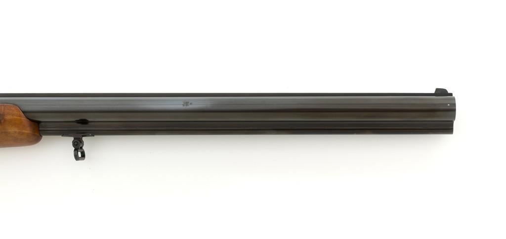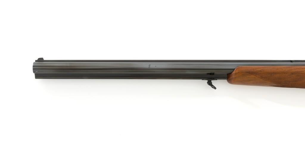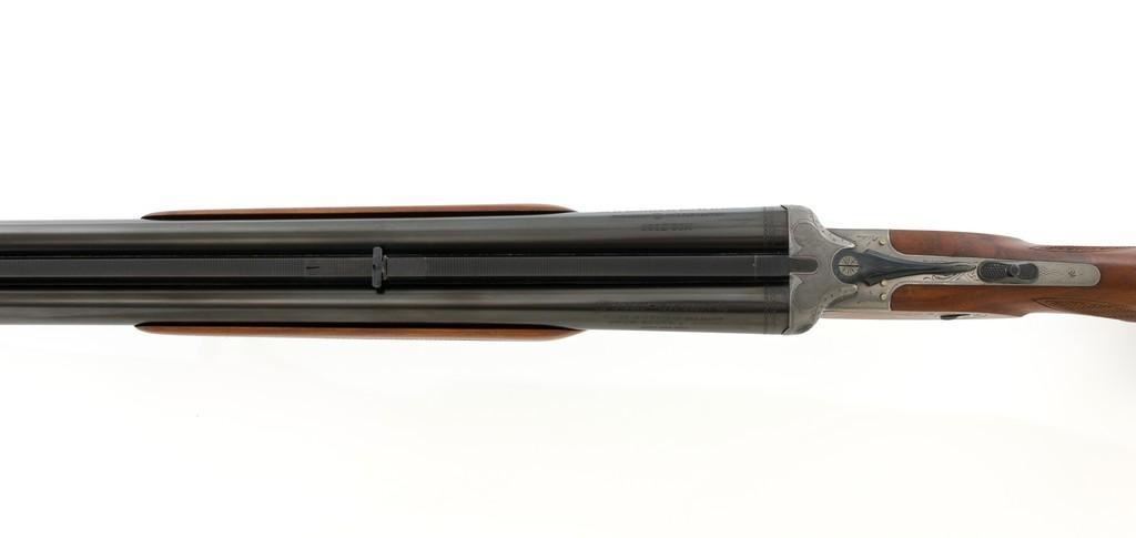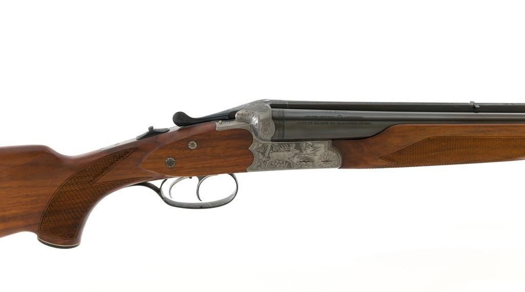 Colt Sauer Model 3000 Boxlock Drilling, #GG8221, 12 gauge over .243 Win. cal., 25'' Krupp steel blue finished barrels. French gray receiver is finely relief engraved with Germanic game scenes on two sides; depicting a bull elk on the right and stag on the left. The metal work is first rate with engraved screw heads, scroll and border engraving complementing the game scenes. The checkered deluxe walnut pistol grip stock has sling swivels, beavertail forend with Deeley style lever release, hard rubber grip cap, and ending with a ventilated rubber pad, providing a 14.5'' LOP. Other features include blade front sight with full-length filed rib, folding rear sights, double triggers, tang safety, Greener crossbolt, and side stalking safeties. Marked ''MADE IN WESTERN GERMANY'' on the left barrel and import marked on the right. Mfg'd 1976. In excellent overall condition, retaining approx. 98%-99% factory finish, with a minor spot of light corrosion on the right barrel, and clear factory markings. Stock is in excellent condition with sharp checkering detail and attractive figure, showing little use. Action is crisp, locking up securely. Bores are bright; rifling is excellent. Est.: $2,500-$3,500. (Modern)
