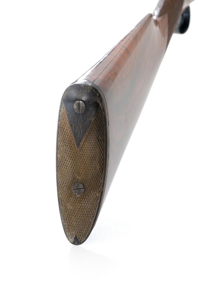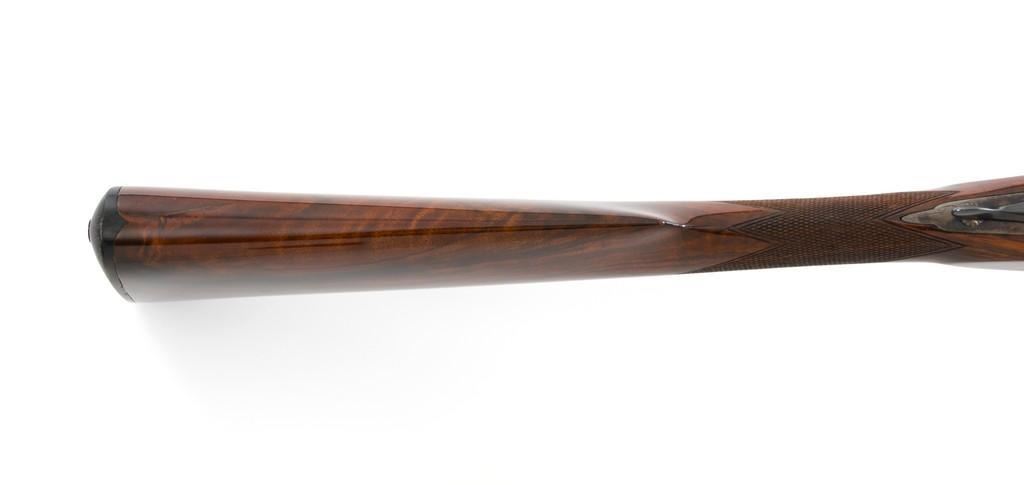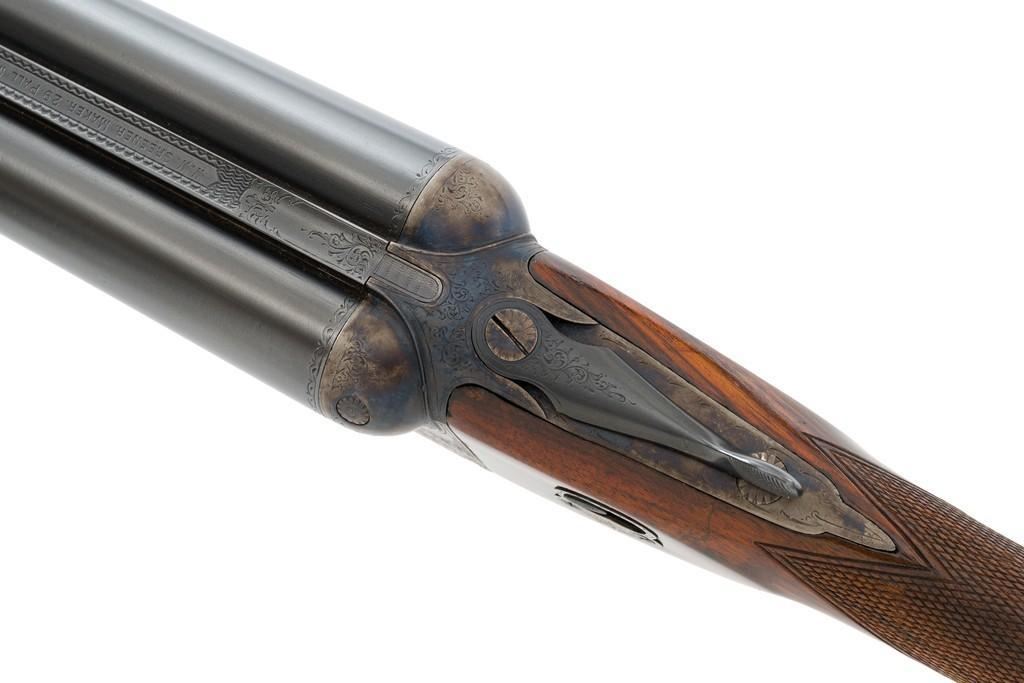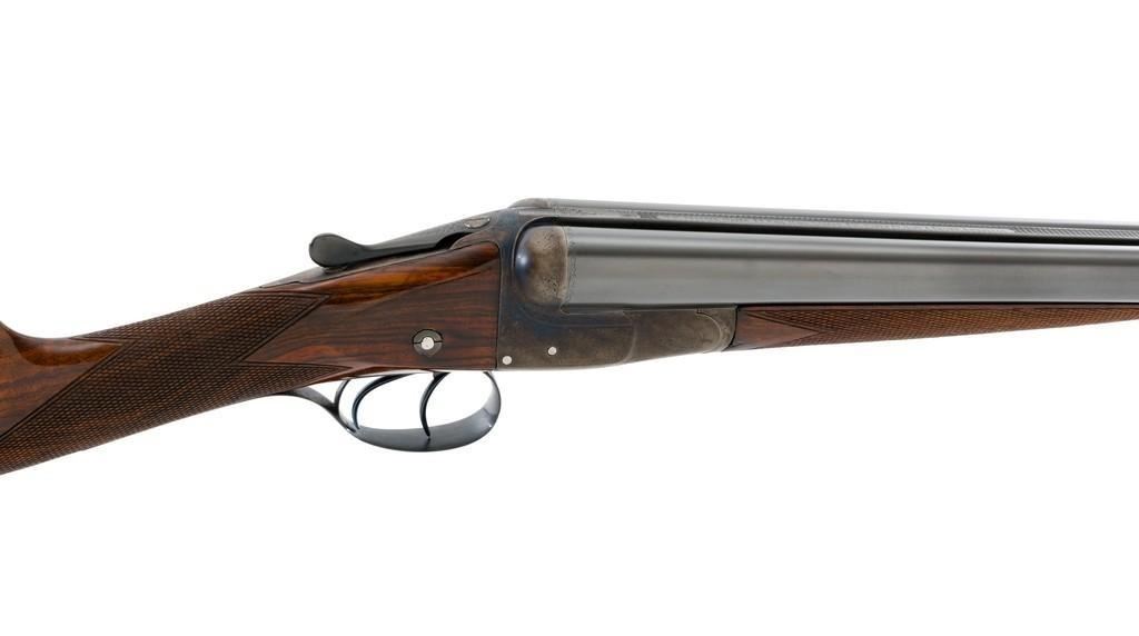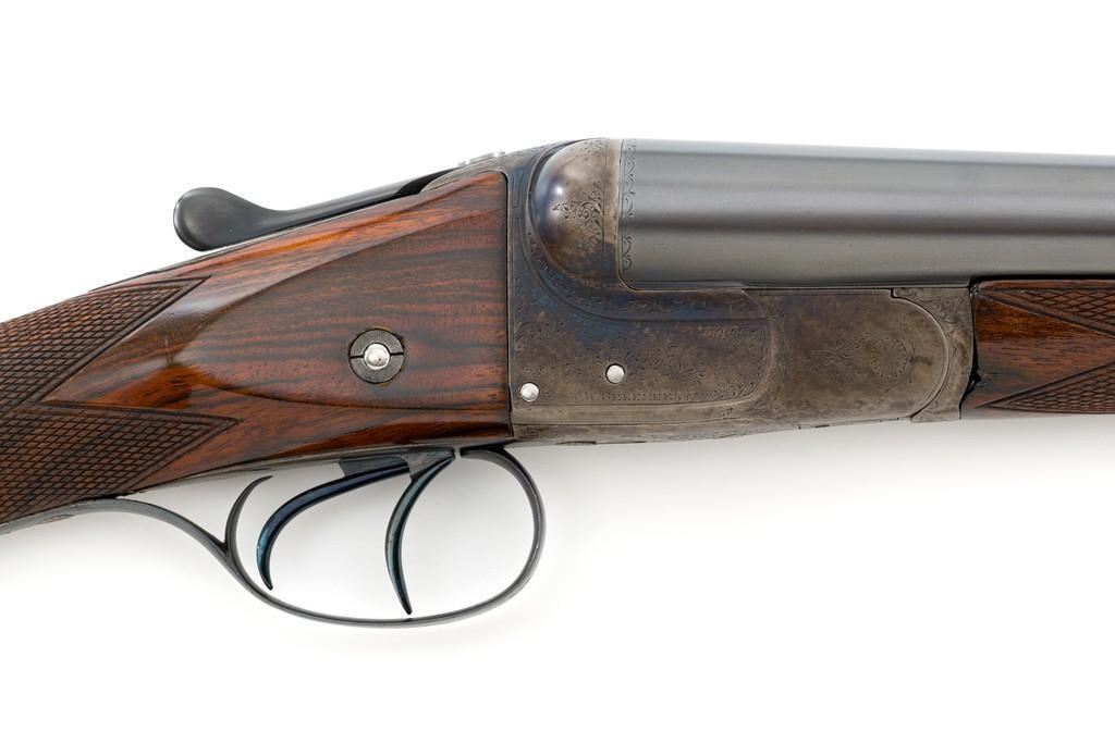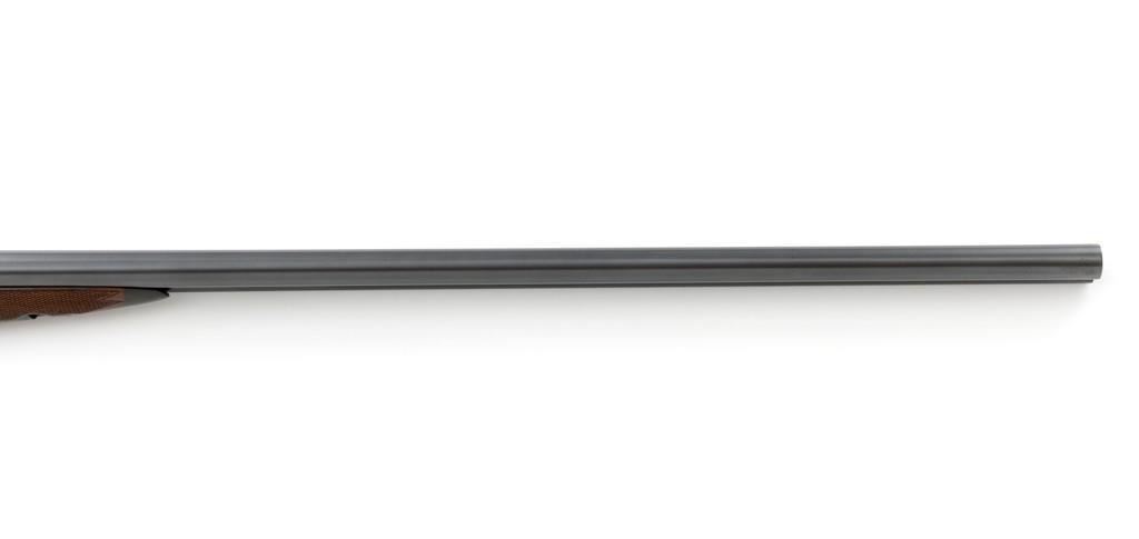 W.W. Greener Facile Princeps Hammerless Grade F.H. 50, Side-by-Side Shotgun, #66455. 20 ga., 28'' matted rib barrels have 2-9/16'' chambers and are choked IC/FULL. The rib is marked ''W.W. Greener, Maker. 29 Pall Mal. London S.W.'' The action utilizes two underlugs plus a greener crossbolt lockup, and features double triggers, non-automatic external safety, and selective ejectors. The receiver, forend iron and top tang are case hardened, trigger guard and bottom tang are blued. The receiver is engraved with very fine rose and scroll designs. Lower tang is marked ''Grade F.H. 50''. The splinter forend and straight grip buttstock are highly-finished ''C'' grade walnut, and feature a bone forend tip, brass oval for later engraving, and a composite checkered buttplate. Stock dimensions are 14'' x 1-3/8'' x 2''. Mfg'd prior to 1927.Condition is overall fine. Barrels have been professionally refinished and retain approx. 98% blue; 50% original case colors. Wood with few handling marks, retaining nearly all the gloss finish, but there is a slight .75'' crack on the left hand side; from receiver to safe switch. The action is likewise in very good condition, closing tight and usually ejecting the shells; bores are mirror bright. There is an occasional malfunction of the right hand ejector and can be correctly repaired by a qualified gunsmith. Est.: $3,500-$4,500. (C&R/PPT)