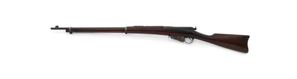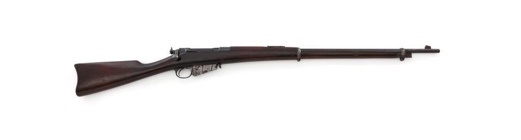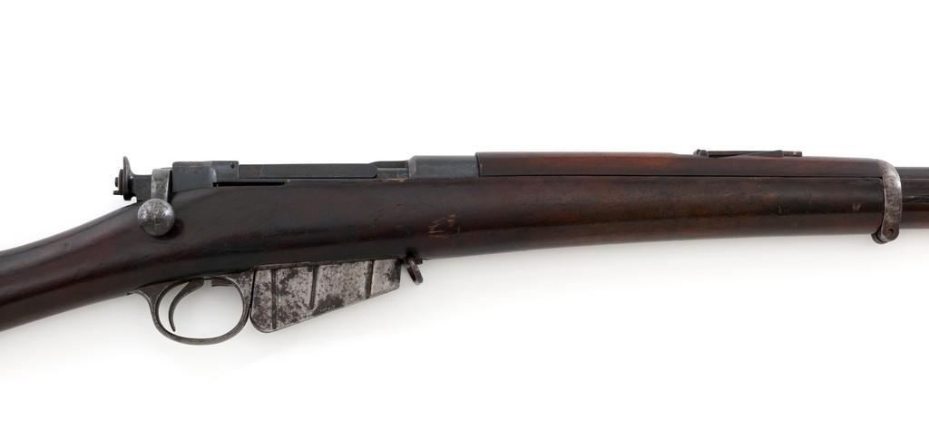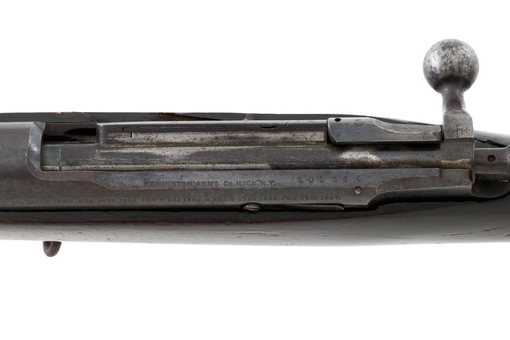 Remington-Lee Model 1899 Commercial Bolt Action Rifle, #101354 .30-40 Krag cal., 29'' barrel, blued finish, walnut stock, blade front sight, and ''V''-notch rear sight. Rear sight is missing the slide, the upper band is missing the screw, and the .30 caliber magazine has areas of rust. Receiver is marked ''REMINGTON ARMS CO. ILION N.Y.'' over the patent dates to ''Jan 18, 1887''. Rifle is in good condition. Blued finish is 75% on the receiver and barrel, but the trigger housing has overall patina with light pitting. Stock is fair, with scattered marks, thick coat of varnish. There is a crack visible on top of the wrist and left side below the receiver, which appears to have been repaired. Buttplate is pitted. Action works properly. Barrel is marked ''30 U.S.A'' in front of the rear band and has a fair bore, with light pitting throughout. Est.: $1,000-$1,500. (C&R)