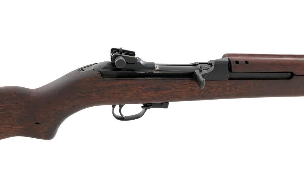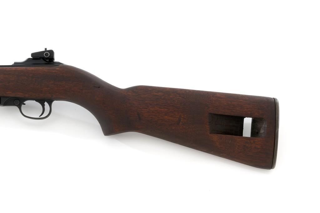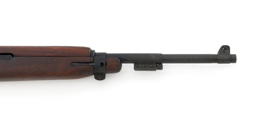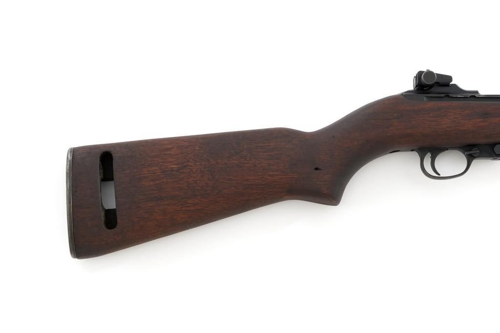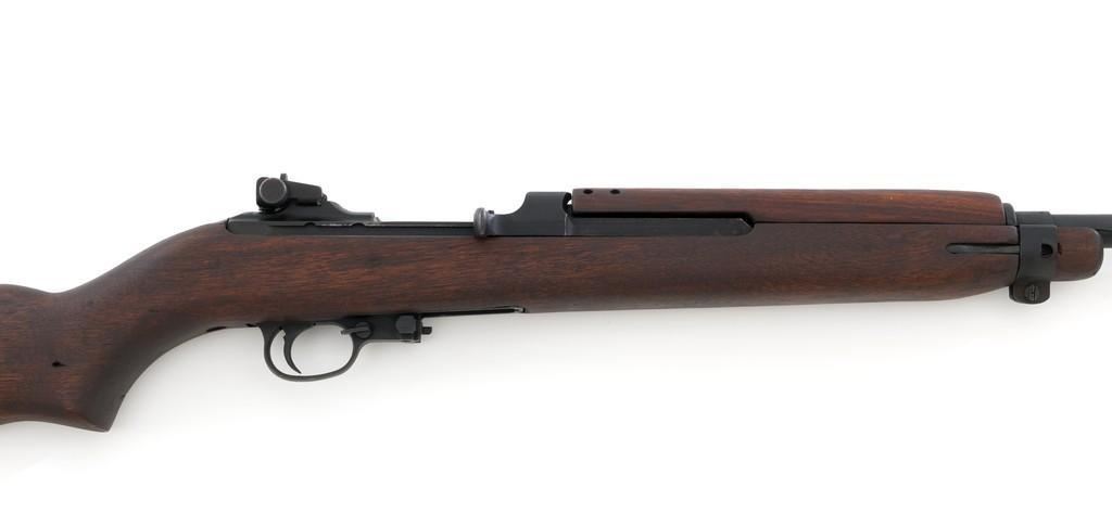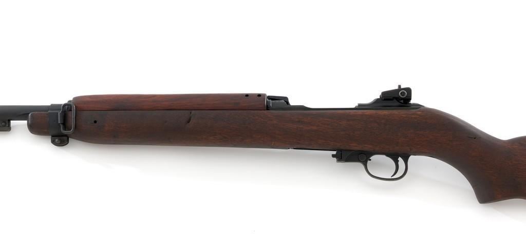 U.S. I.B.M. Corp M1 Semi-Automatic Carbine, #3811980, .30 carbine cal., 18'' barrel, black oxide finish, walnut stock, blade front sight with ears, and adjustable rear peep sight. The carbine was post-war updated with an adjustable sight, bayonet lug, and refinished with black oxide. Receiver is marked ''I.B.M. CORP/3811980''. Rifle is in fine overall condition. Black oxide finish is near excellent throughout, except the buttplate is worn. Stock is unmarked and in very good condition, with mostly light handling marks, and a few larger impressions to left side of the forend. Action works properly. Barrel is marked ''I.B.M. CORP'', with a very good bore and sharp rifling. No visible import marks. Est.: $800-$1,200. (C&R/PPT)