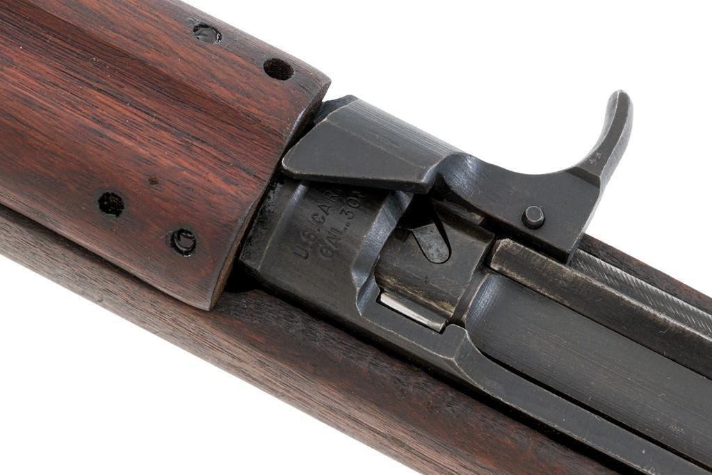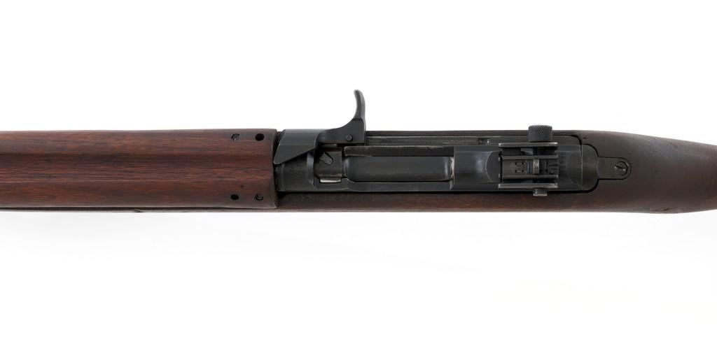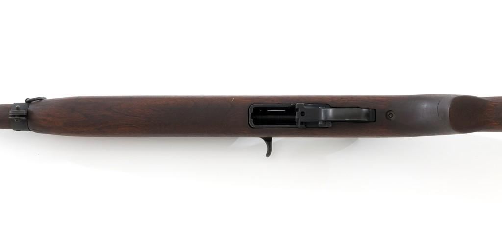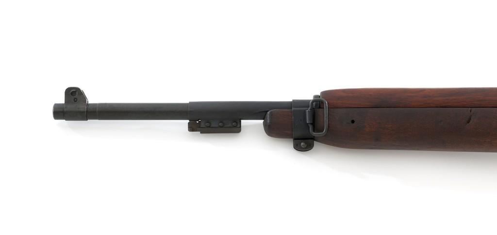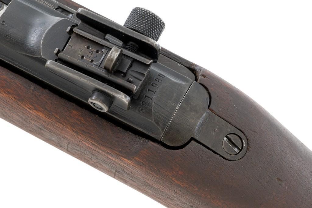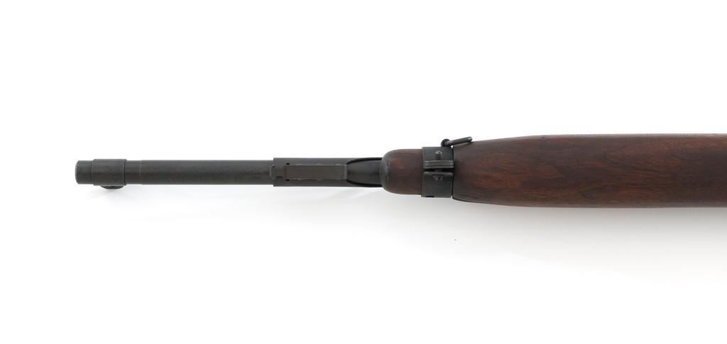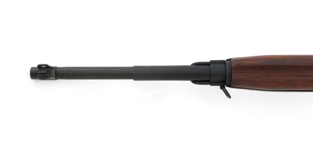 U.S. I.B.M. Corp M1 Semi-Automatic Carbine, #3811980, .30 carbine cal., 18'' barrel, black oxide finish, walnut stock, blade front sight with ears, and adjustable rear peep sight. The carbine was post-war updated with an adjustable sight, bayonet lug, and refinished with black oxide. Receiver is marked ''I.B.M. CORP/3811980''. Rifle is in fine overall condition. Black oxide finish is near excellent throughout, except the buttplate is worn. Stock is unmarked and in very good condition, with mostly light handling marks, and a few larger impressions to left side of the forend. Action works properly. Barrel is marked ''I.B.M. CORP'', with a very good bore and sharp rifling. No visible import marks. Est.: $800-$1,200. (C&R/PPT)