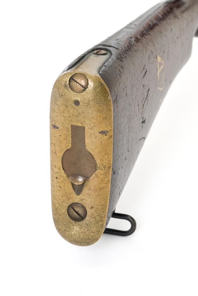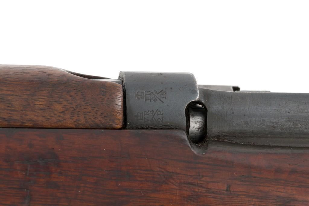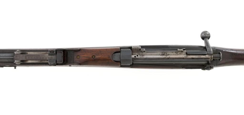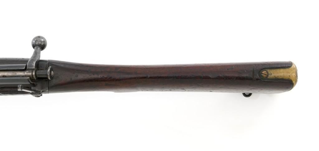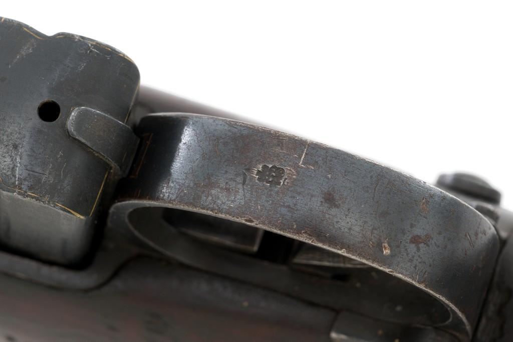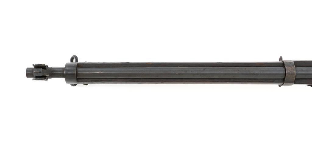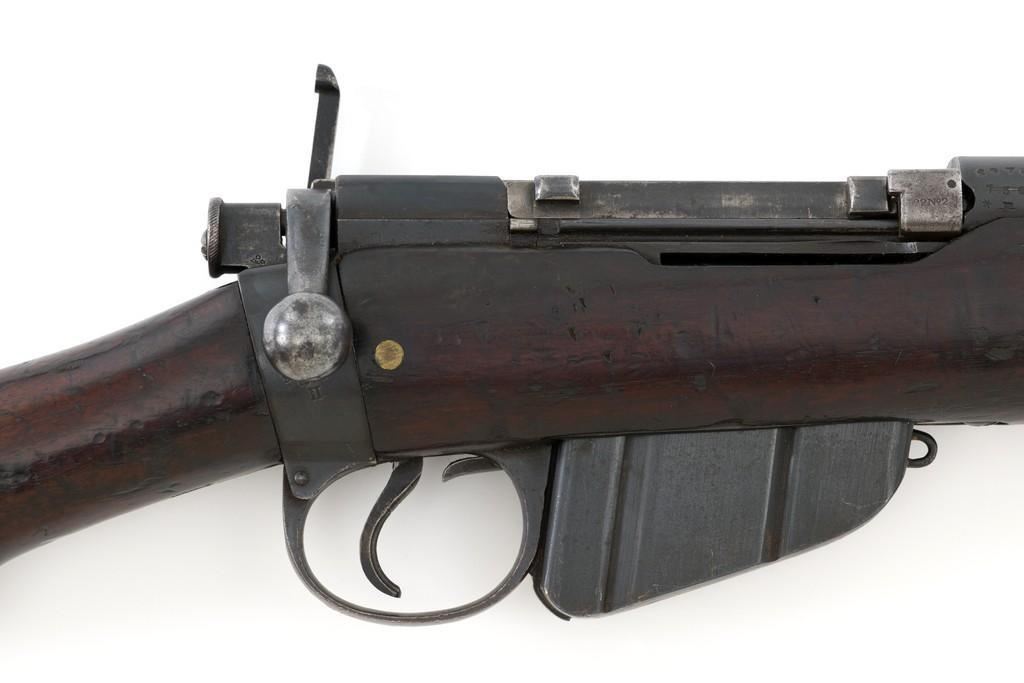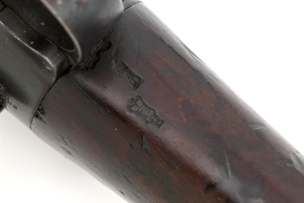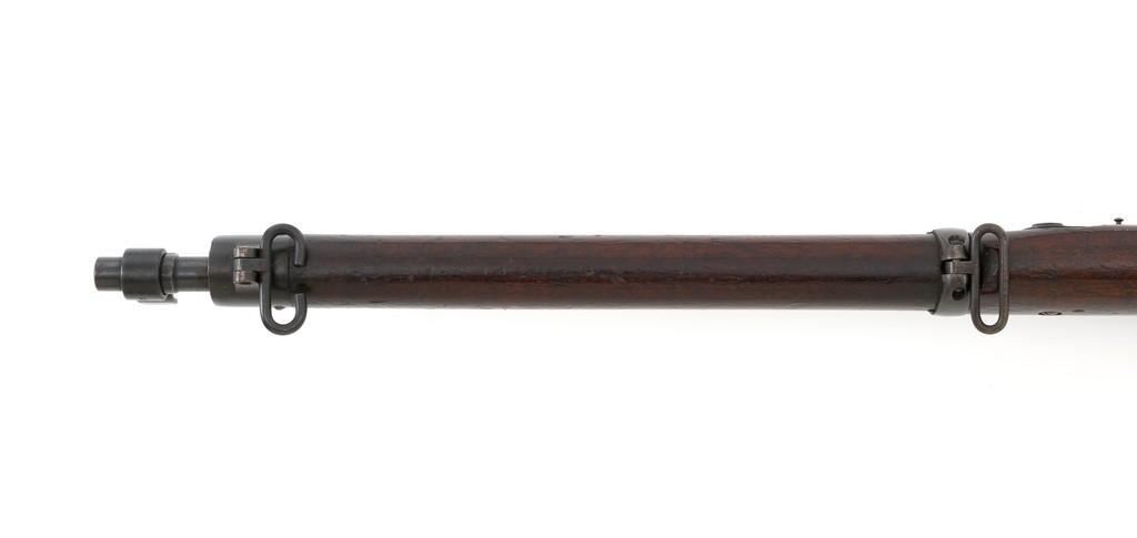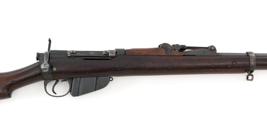 Rare British Royal Navy .22 Short Mk II Lee Enfield Bolt Action Training Rifle, #6978,.22 LR cal., 25.2'' barrel, blued finish, walnut stock set and handguard, blade front sight with rounded protectors, and tangent rear sight adjustable for windage and elevation, graduated to 2000 yards. Rifle was converted from a Mark II Lee Metford and is marked with original ''(Crown)/V.R./ENFIELD./1894/II.'' on right side of the action body and with ''ENFIELD/1912/SHT 22/II'' conversion markings on the left side below an ''N'' Naval property stamp. There are Victorian and Edwardian proof stamps on the receiver ring. There is a barred out ''RM SPARKBROOK/1.*'' roundel stamped on right side of the buttstock. Bolt does not match. Rifle retains early features including handguard with attached sight protectors, long range aperture sight and dial plate, early magazine assembly, bolt body with hooks, groove for steel dustcover, buttstock with long buttplate tang, and single point rear sling swivel. Condition overall is very good, retaining approx. 85% blue, showing wear, and toning with spots of patina to the bolt body. Wood is good with numerous impressions and handling marks scattered throughout. There is a white painted ''47'' rack number on right side of the buttstock. Action operates smoothly. Bore rates fair to poor with old pitting and visible rifling. A rare rifle as approximately 1,000 were produced, per ''THE LEE ENFIELD'' by Ian Skennerton, 2007 by Arms & Militaria Press. Est.:$1,000-$1,500. (Antique)