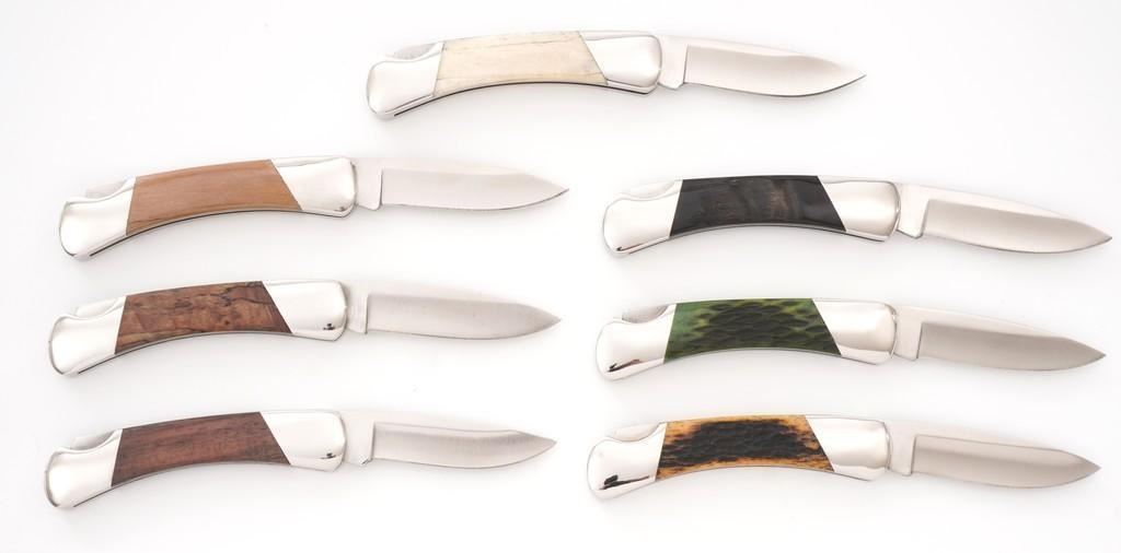 Lot 313 Lot of Seven (7) Custom Handled Buck Model 500 Duke Lockback Folding Knives