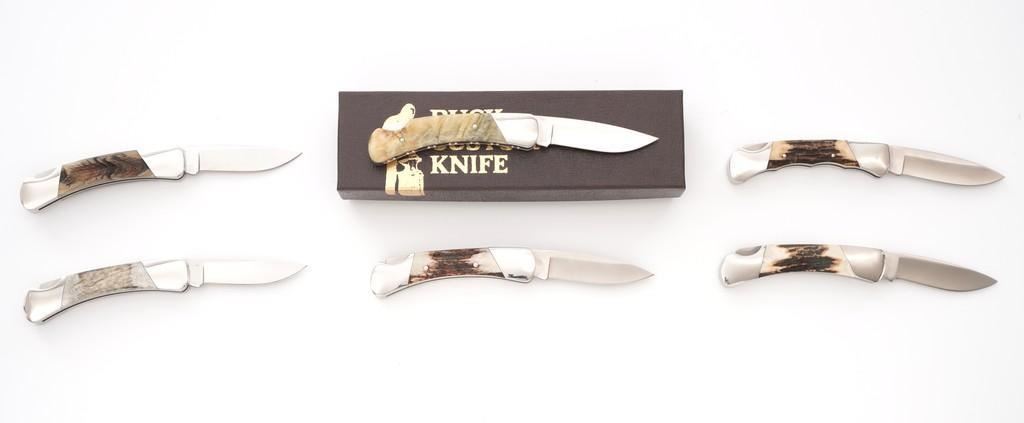 Lot 315 Lot of Six (6) Buck Model 500 Duke Lockback Folding Knives (Four Custom Shop)