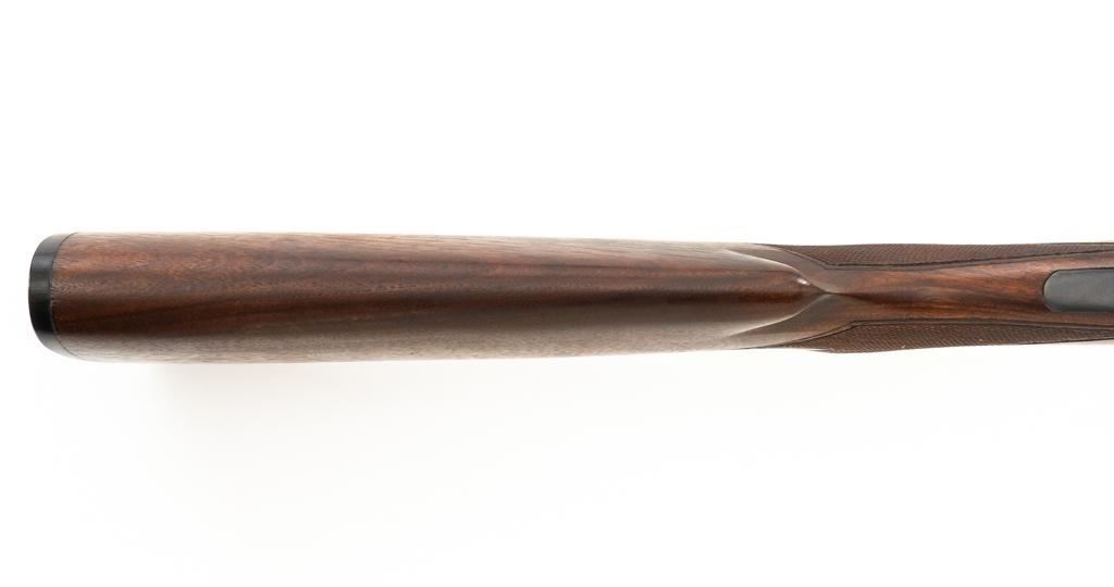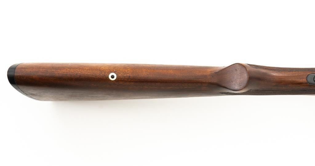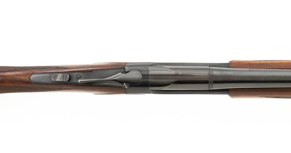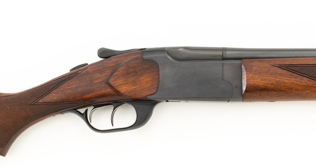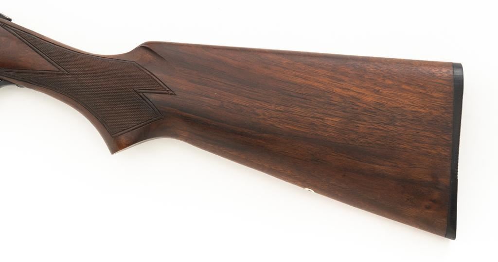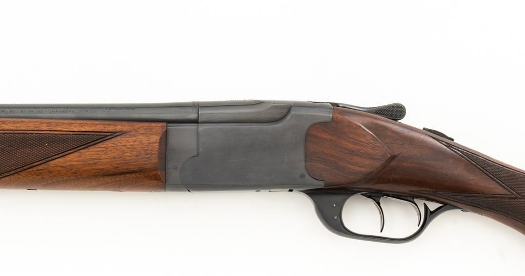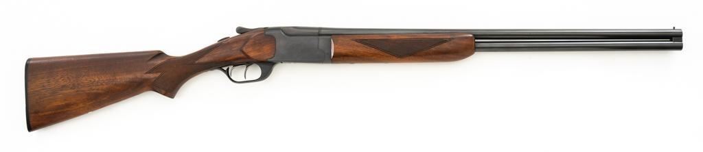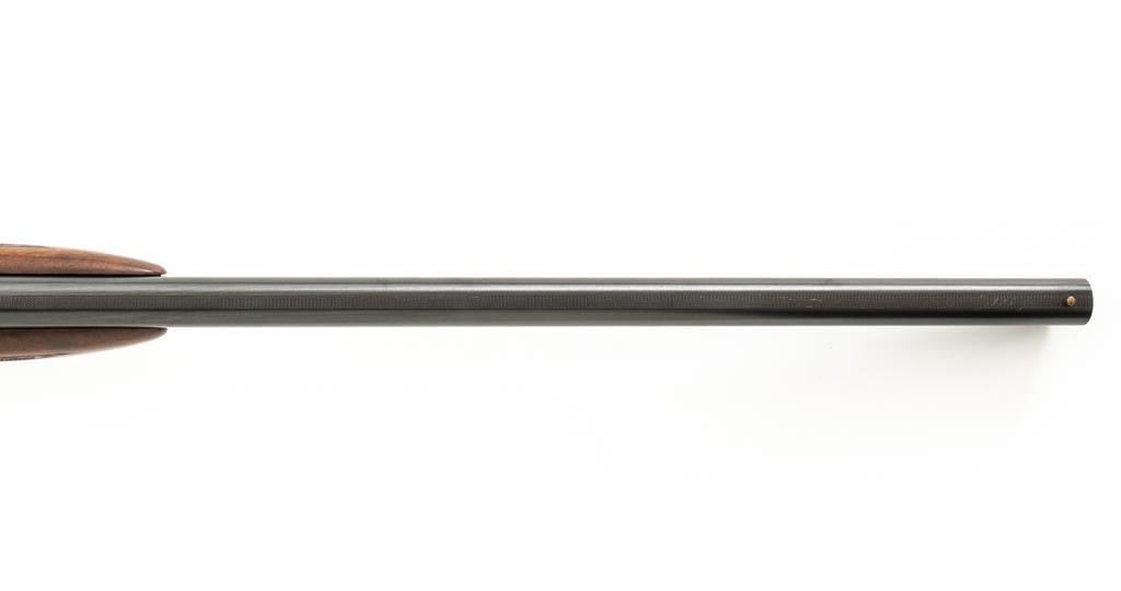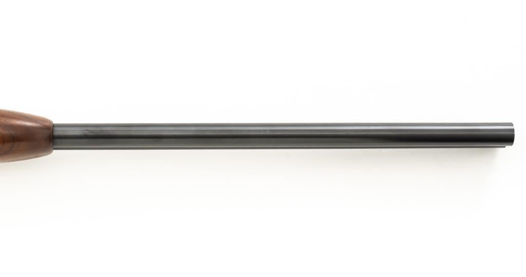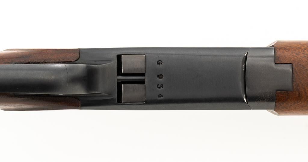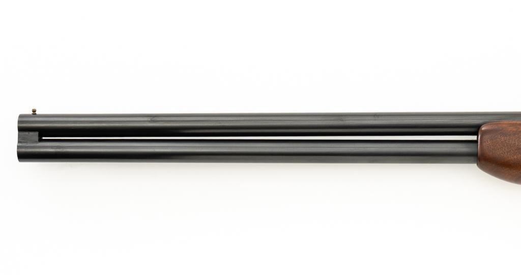 Marlin Model 90 Over/Under Boxlock Shotgun, G934, 20 ga., 26'' barrels with 2-3/4'' chambers and brass bead front sight, blue finish; checkered walnut two-piece pistol grip stock, ending with a ribbed hard rubber buttplate, providing a 14.5'' LOP. Shotgun also features a full-length milled top rib, double triggers, extractors, and tang safety. Mfg'd 1950. Shotgun is in excellent overall condition, retaining approx. 98%-99% toning finish, with light handling marks. Stock is in excellent condition with sharp checkering detail, minor storage marks, and is missing the Marlin ''Bullseye'' in the buttstock. Action is crisp. Bores are excellent. Est.: $500-$700. (C&R/PPT)