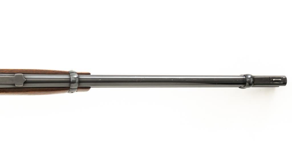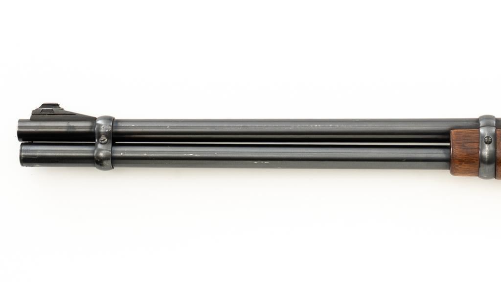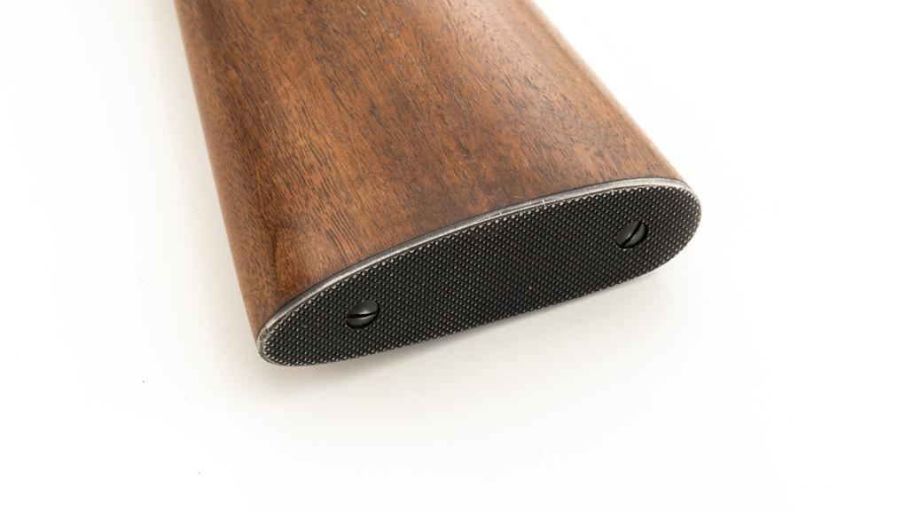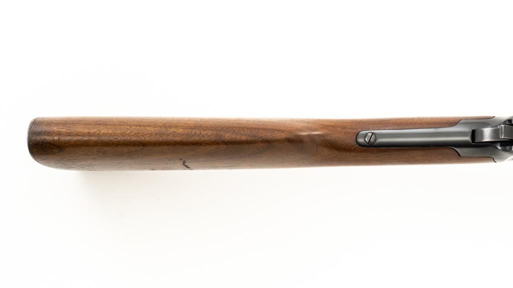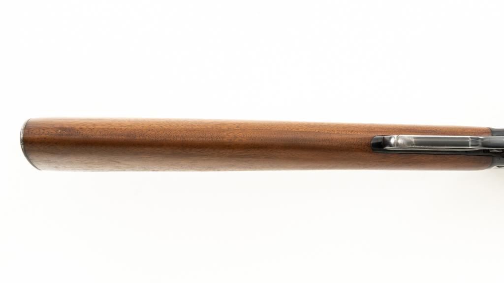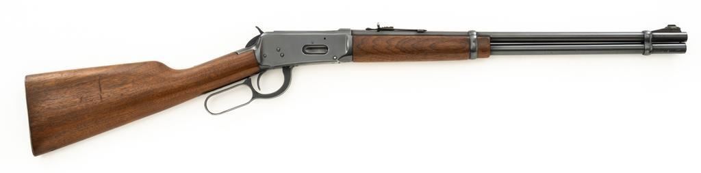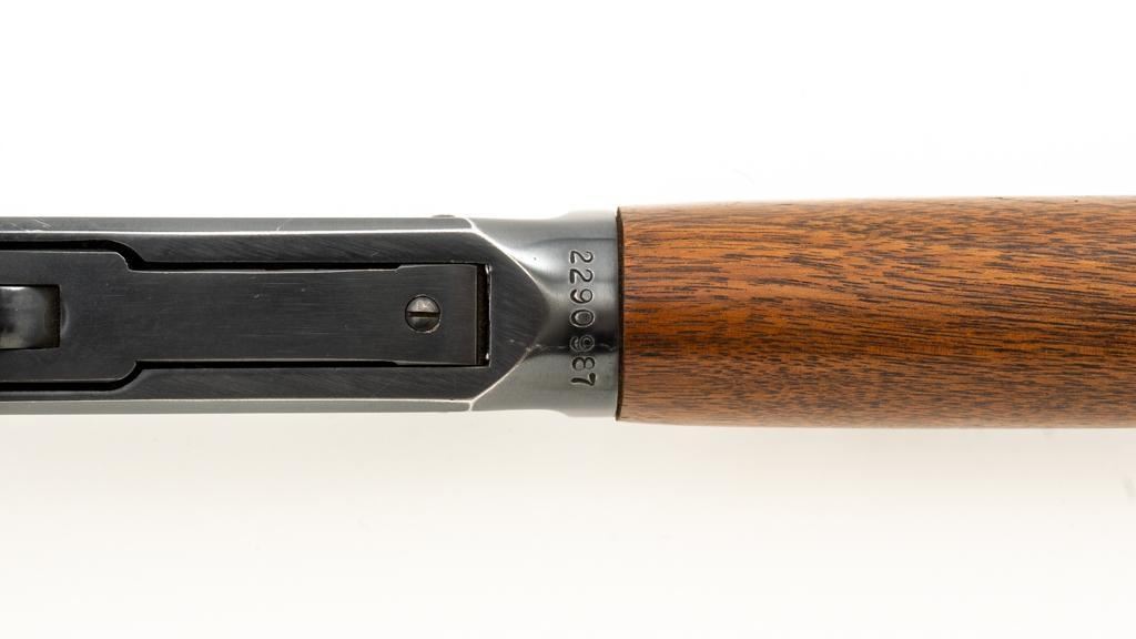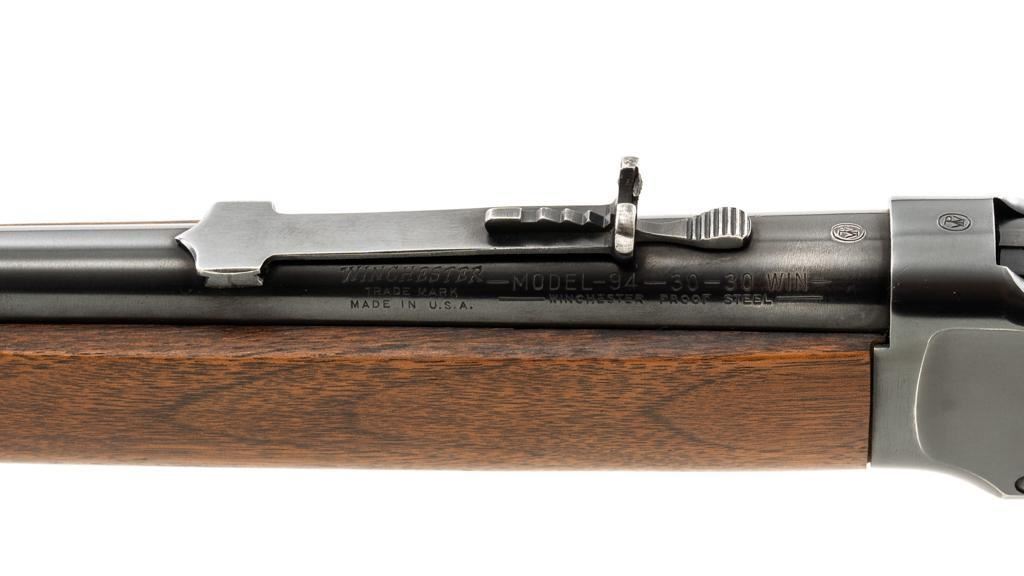 Winchester Model 94 Lever Action Rifle, #2290987, .30-30 Win. cal., 20'' round barrel, blue finish, smooth walnut straight grip stock and forend, checkered blue steel buttplate, ramped steel bead blade front and semi-buckhorn rear sight. Factory markings are clear, with Winchester ''WP'' proofs on the barrel and receiver. Mfg'd 1957. Rifle is in near excellent overall condition, retaining approx. 97%-98% toning factory finish, with scrapes and light wear at the muzzle and intermittent light scratches along the barrel. Receiver displays minor high point edgewear and storage marks. Stock is in near excellent condition with only light indentations and minor storage marks. Action functions well and locks up securely. Bright bore is near excellent with well-defined rifling. Est.: $700-$900. (C&R/PPT)