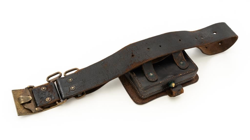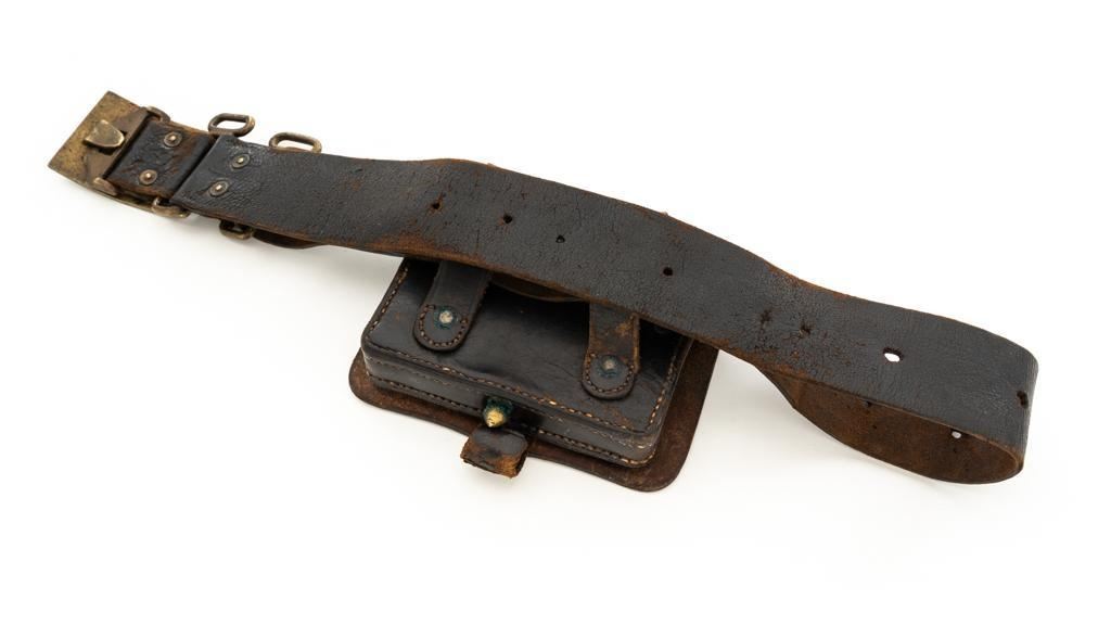 Lot 466 Indian Wars Period ''US'' Leather Belt and Brass Buckle with Civil War Era Leather Cartridge Box