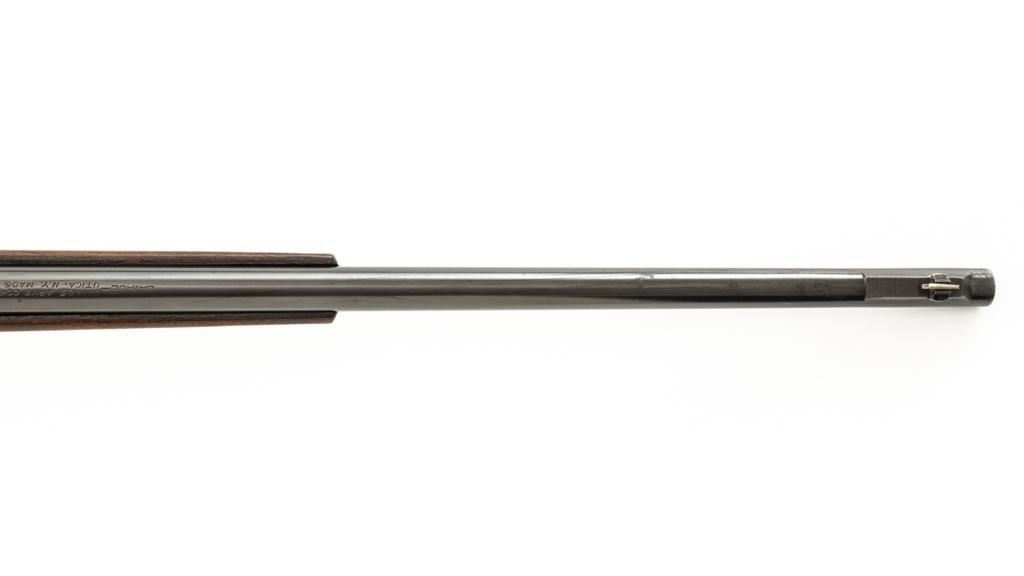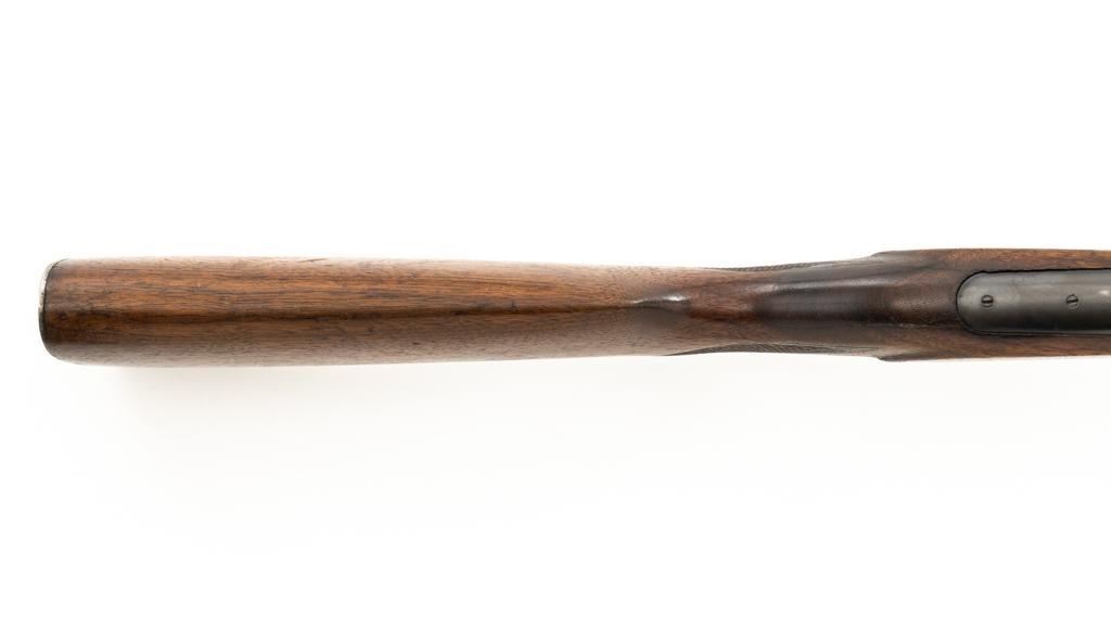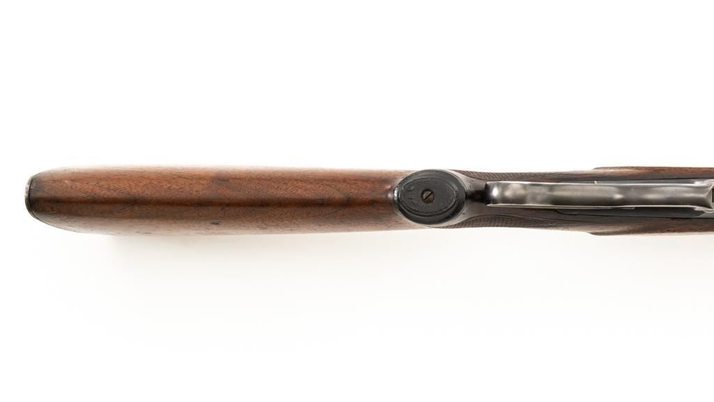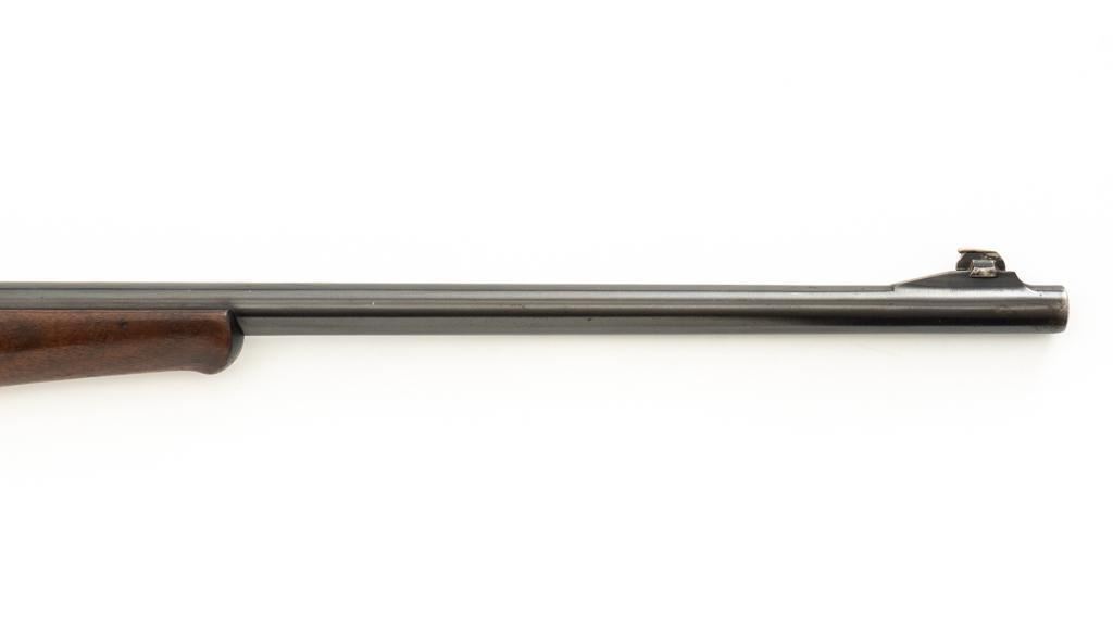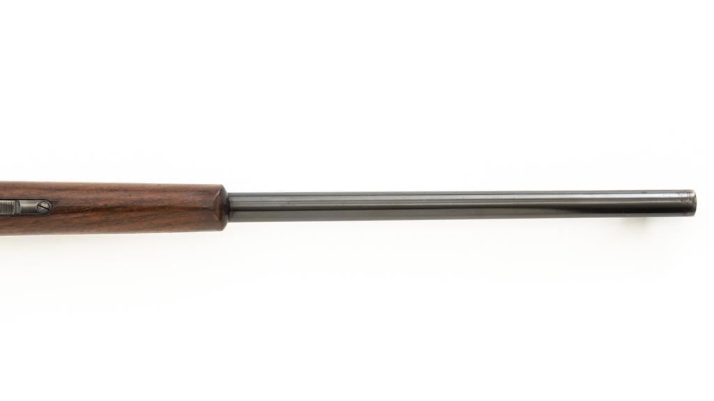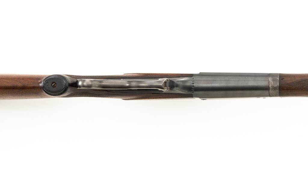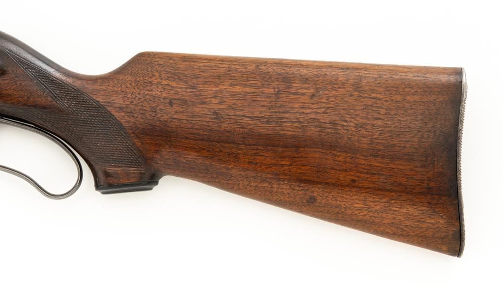 Savage Model 99G Lever Action Takedown Rifle, #338974, .250-3000 Savage cal., 22'' barrel, with blue finish. Checkered walnut pistol grip stock with Schnabel forend, checkered hard rubber grip cap, and ribbed blue steel ''SVG'' marked buttplate, providing a 13'' LOP. Rifle also features a ramped German silver blade front sight, standard elevator ''U''-notched rear sight, brass cartridge counter with internal rotary magazine, and the upper tang is factory drilled and tapped. Mfg'd 1931. Rifle is in fine overall condition, retaining approx. 95% reblued finish with wear and oxidation at the muzzle. Receiver shows mild edgewear, light surface erosion on the takedown collar. Lever and assembly show traces of darkened color case hardened finish. Factory lettering is clear. Stock is very good overall, with scattered indentations and scrapes consistent with field use. Buttstock with an added coat of varnish and there is a very fine 1'' crack at the top of the wrist, adjacent the upper tang. Checkering detail is good with some flattening on the forend. Action functions smoothly. Bore rates near excellent overall and is bright with defined rifling. Est.: $500-$800. (C&R/PPT)
