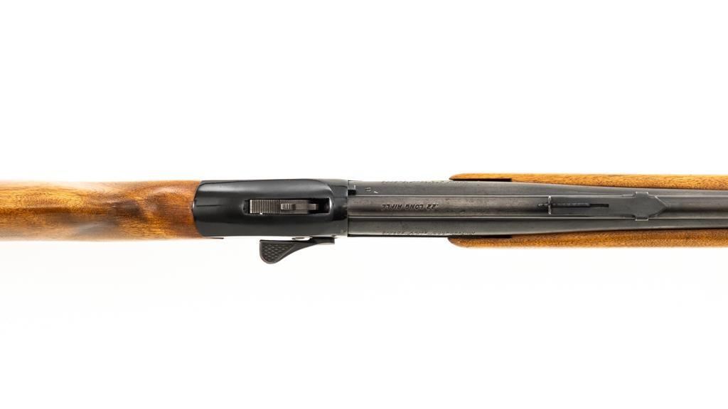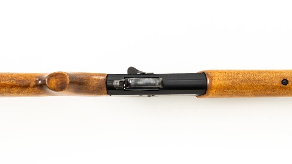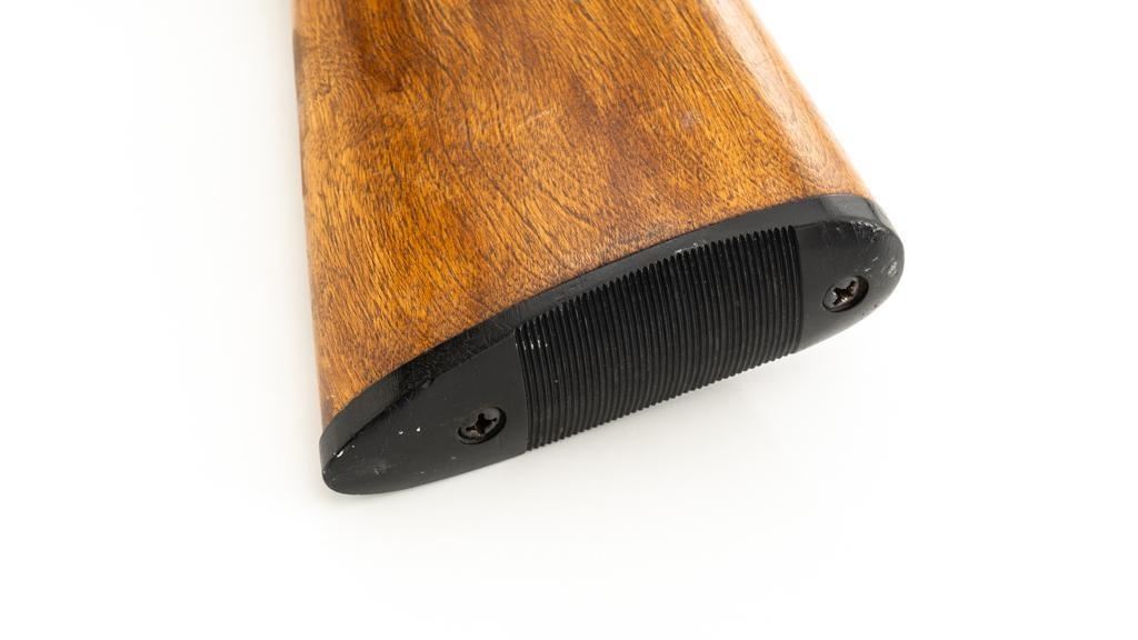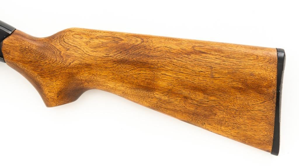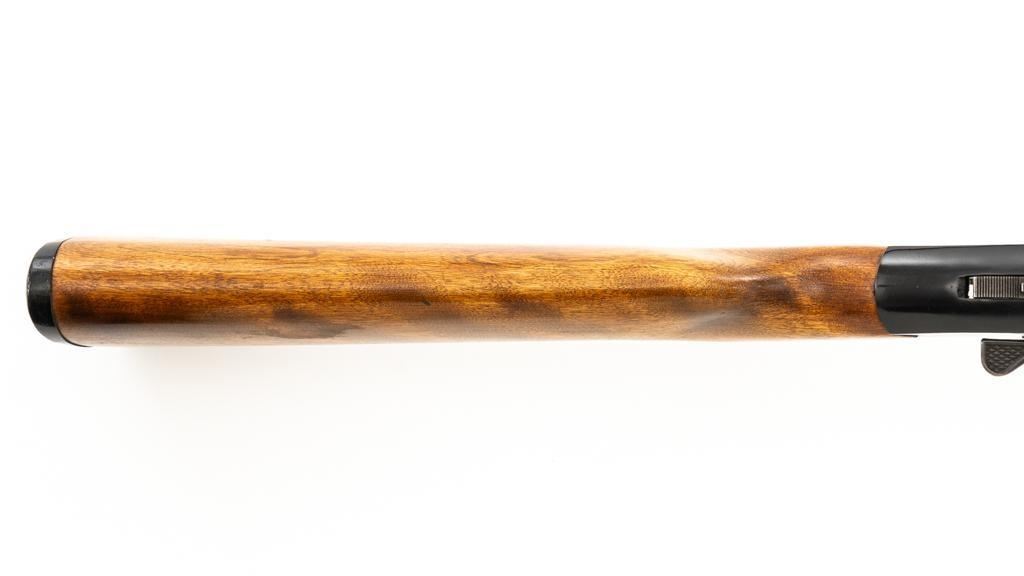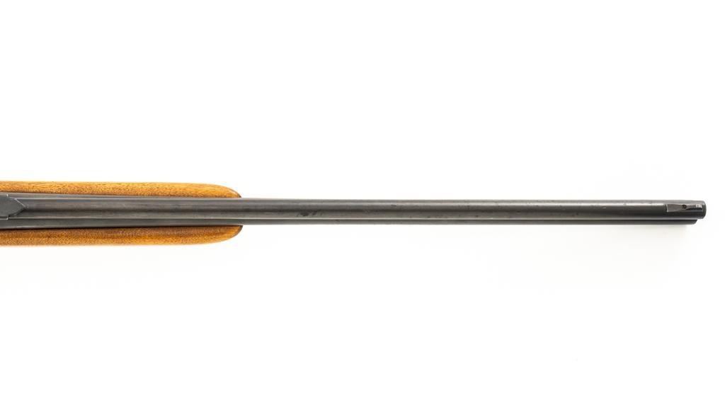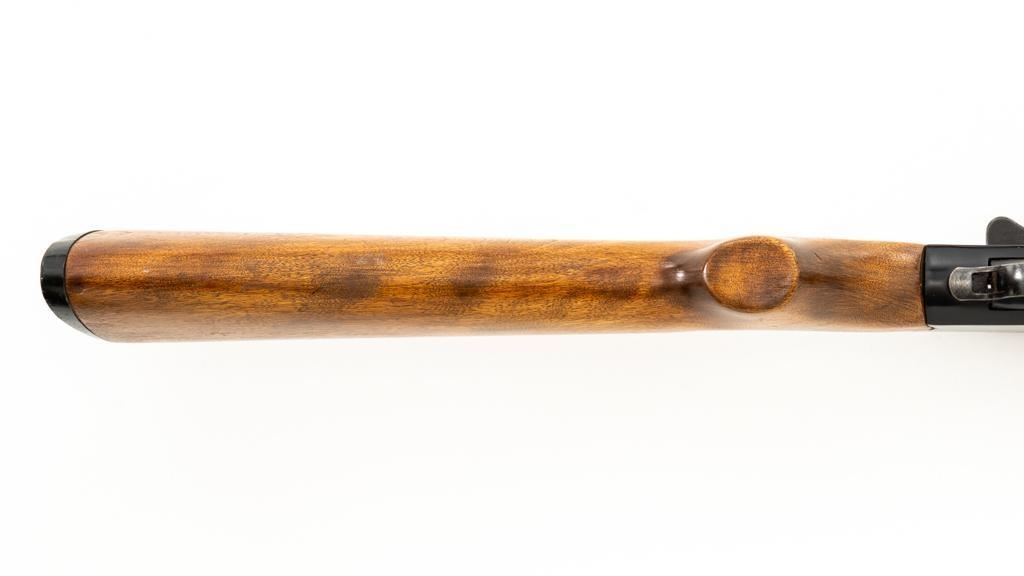 Savage Model 24S-E Combination Gun, #NVSN, .22 LR / .410 gauge, 24'' blued barrels, black receiver, smooth hardwood forend and pistol grip stock ending with a ribbed plastic buttplate, providing a 14'' LOP. Sights include a ramped blade front and standard elevator ''U''-notch rear. In very good+ overall condition, retaining approx. 90% metal finish, showing a few areas of thinning on the barrel. There are some small specks of patina and mild erosion on the barrel, near the breech. Receiver shows light high point edgewear and mild scratching. Stock is in very good condition with scuffs, shallow indentations, and a few areas of thinning finish. Action functions well and locks up securely. Smoothbore is bright throughout; rifled bore is very good with defined rifling. Est.: $400-$600. (C&R/PPT)