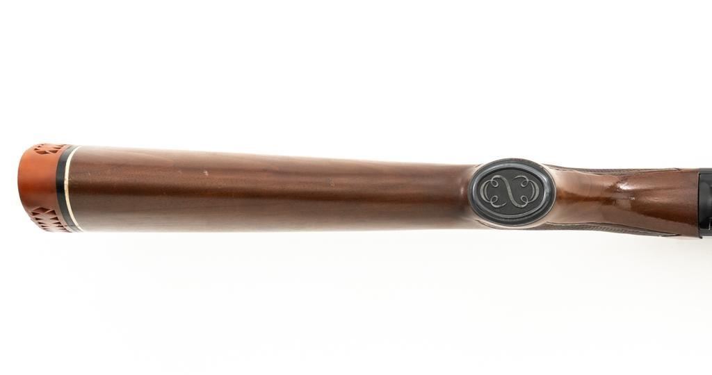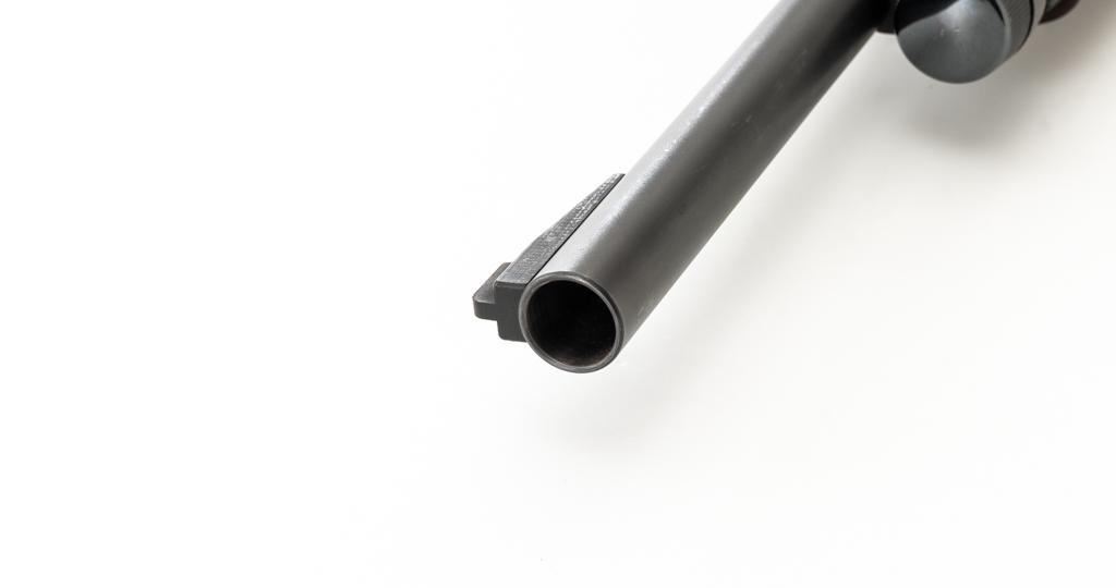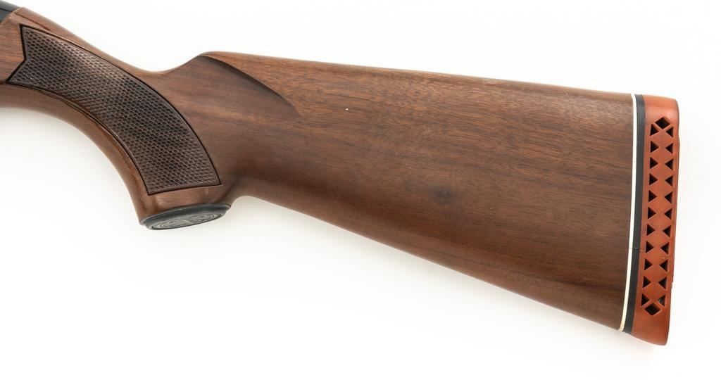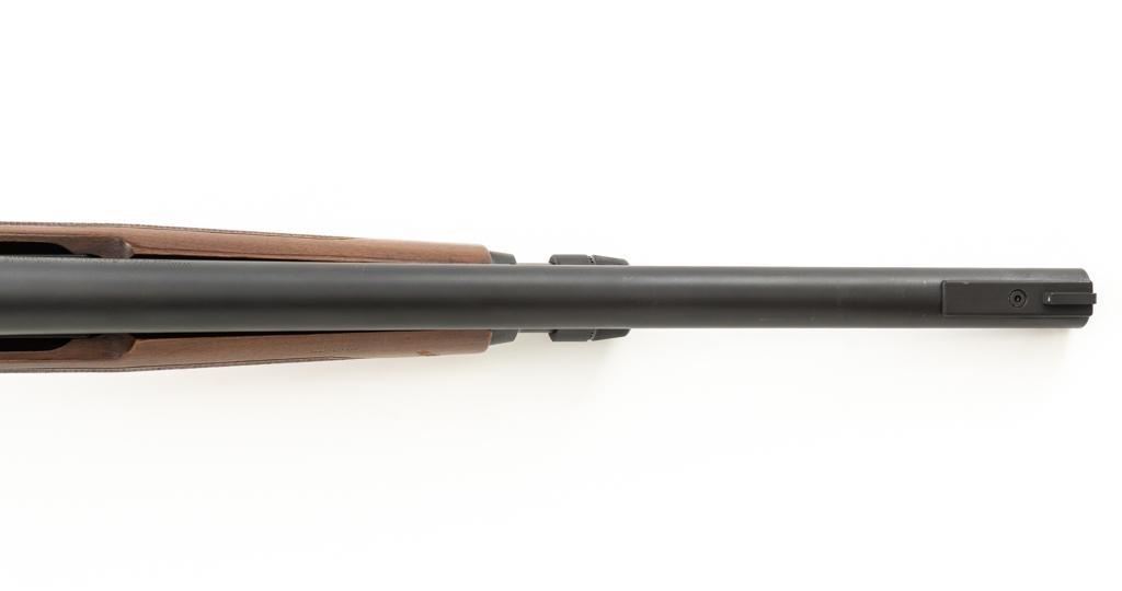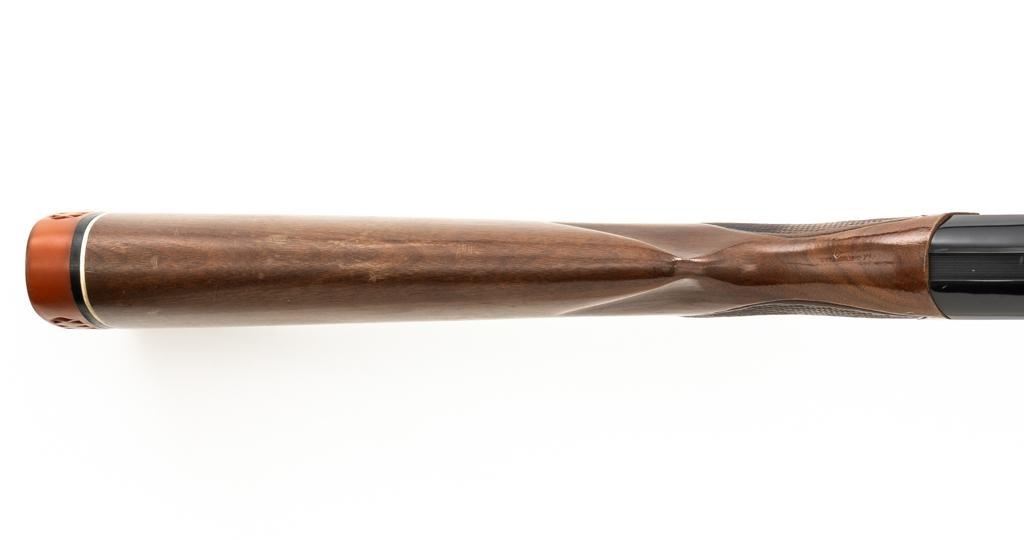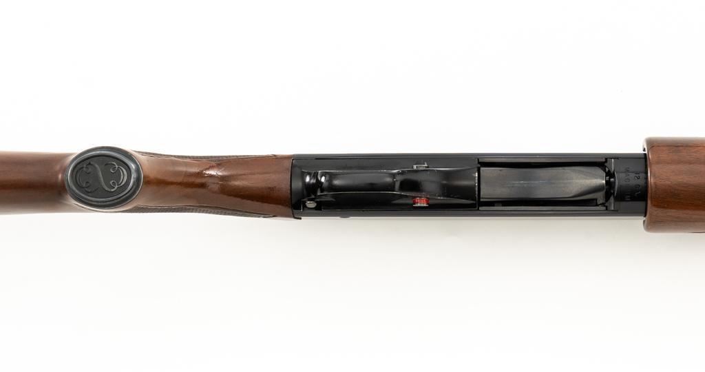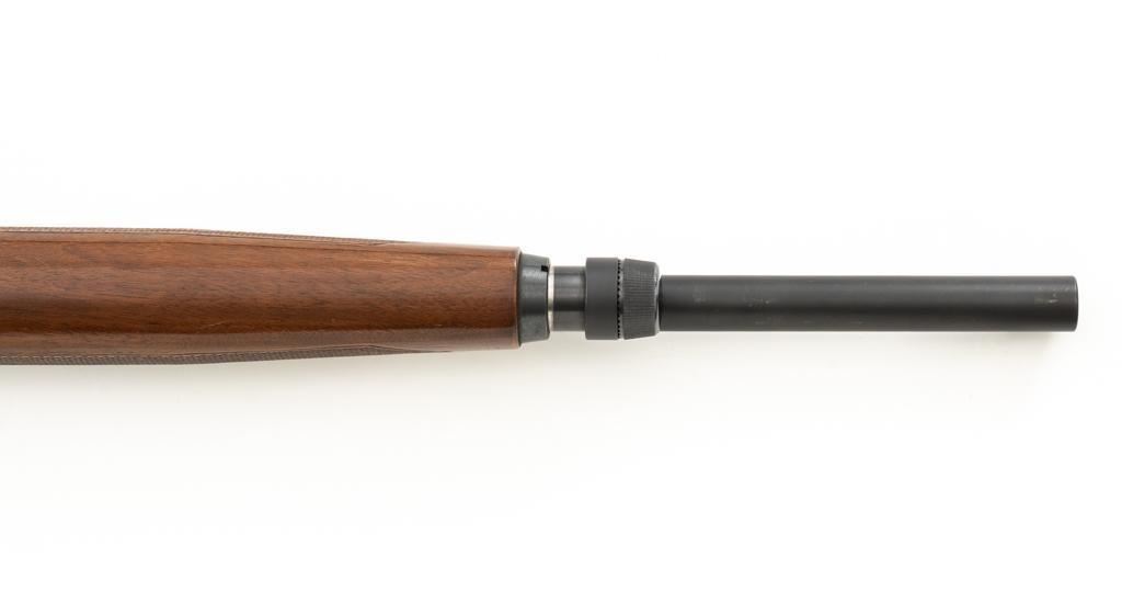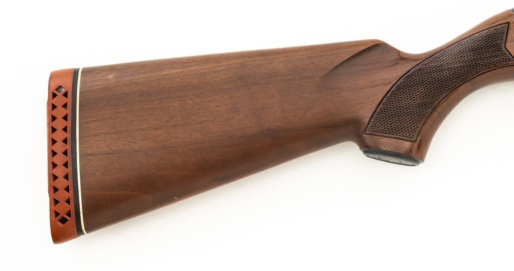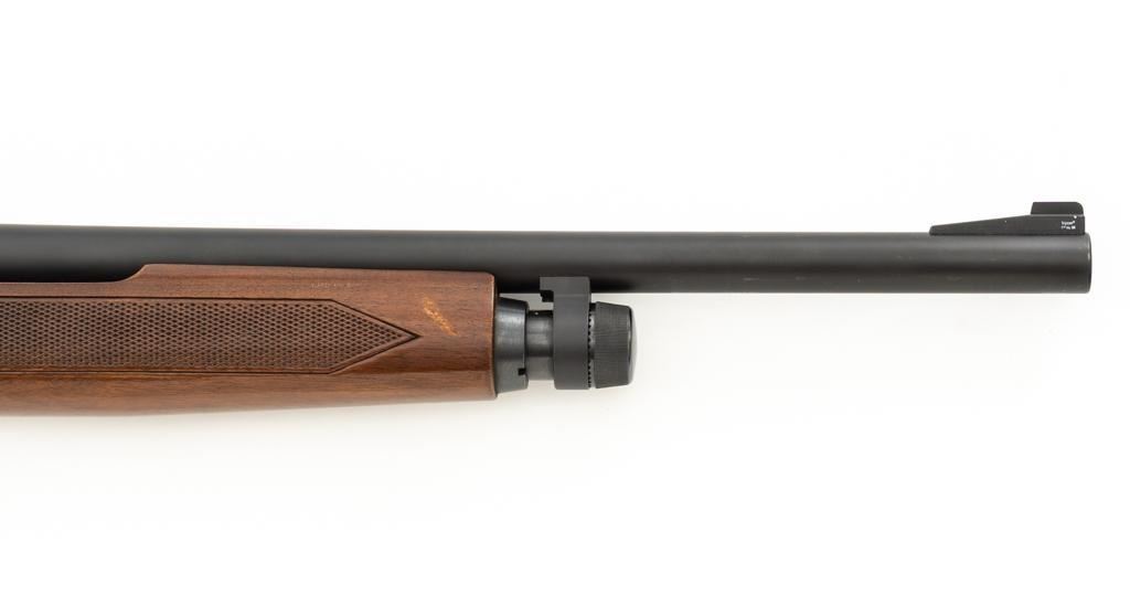 Winchester Model 1200 Slide Action Riot Shotgun, #L711198, 12 ga., 18'' barrel with 3'' chamber and Full choke, matte blue finish, checkered walnut forend and pistol grip stock ending with a ventilated rubber recoil pad, providing a 14'' LOP. Trijicon Tritium ramped blade front sight is dim. Bolt is factory jeweled.Metal rates very good overall and retains approx. 97%-98% factory matte blue finish, with small marks and scattered light scuffs. Stock is in very good condition, with a few deeper scrapes on the right side of the forend; buttstock shows scuffs and scrapes along the top of the comb. Action is crisp and functions smoothly. Bore is mirror bright. Est.: $250-$400. (Modern/PPT)