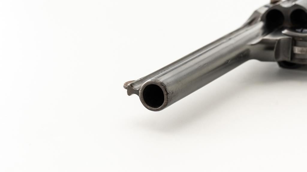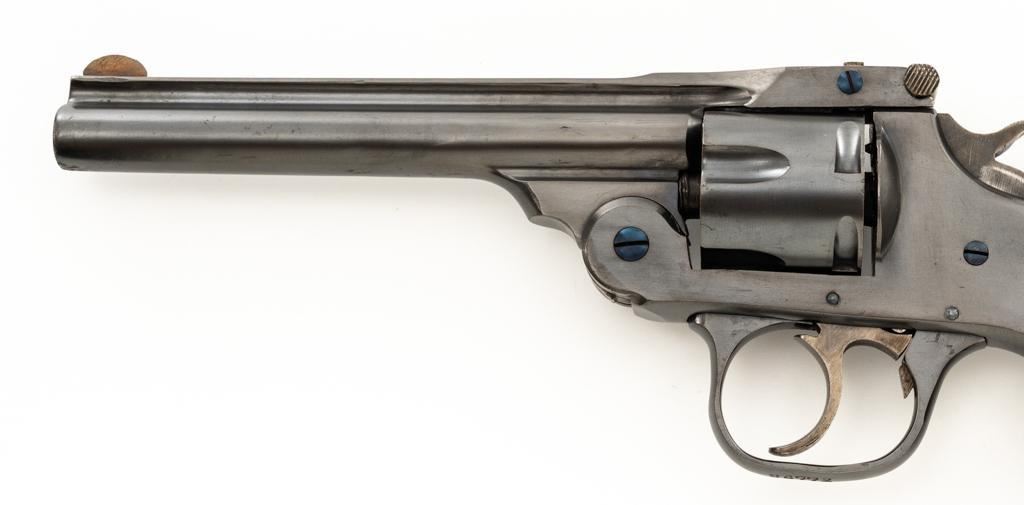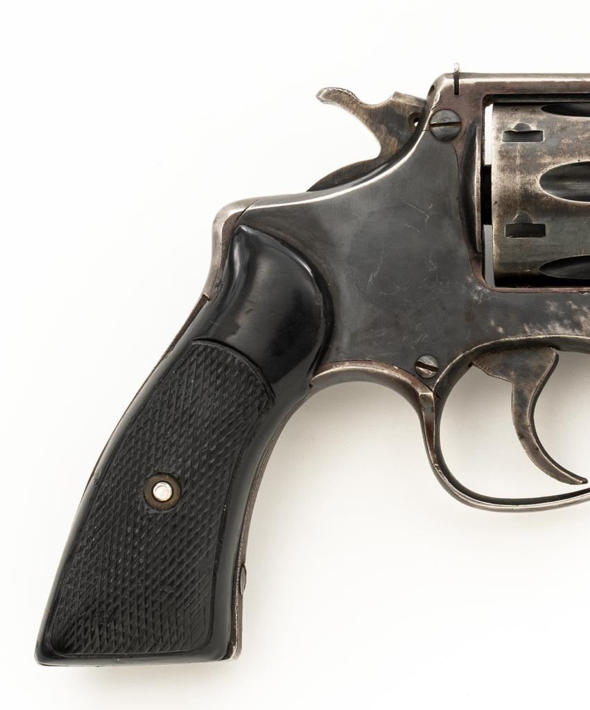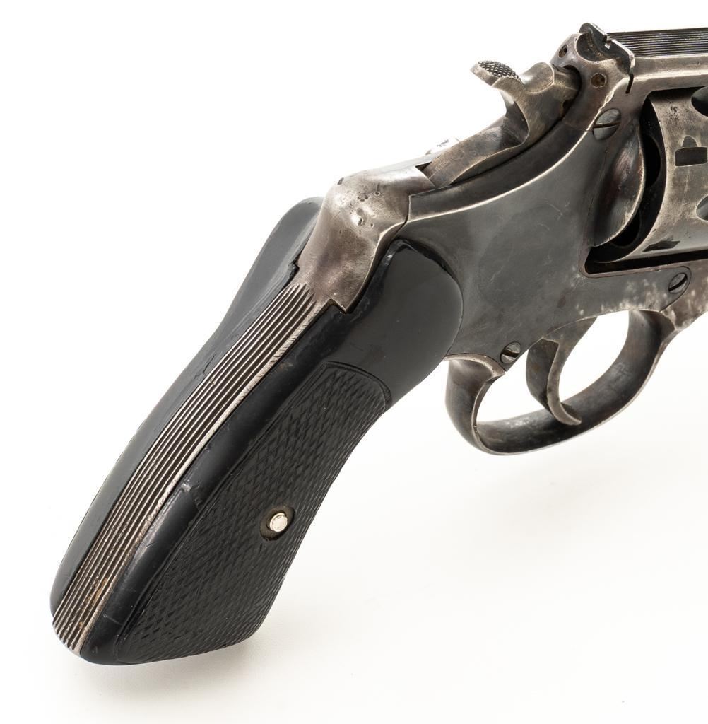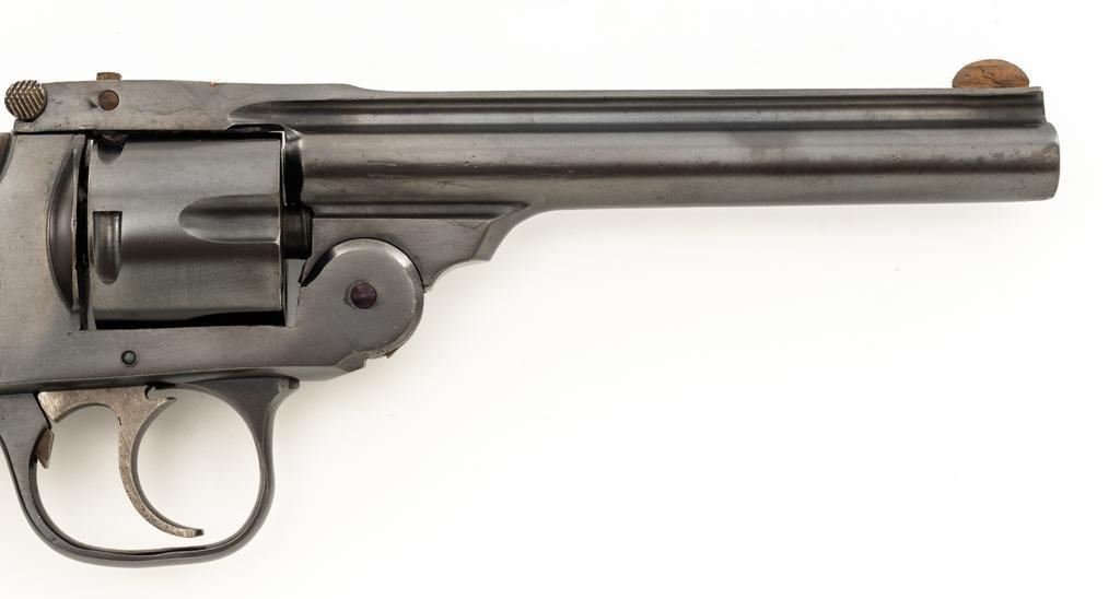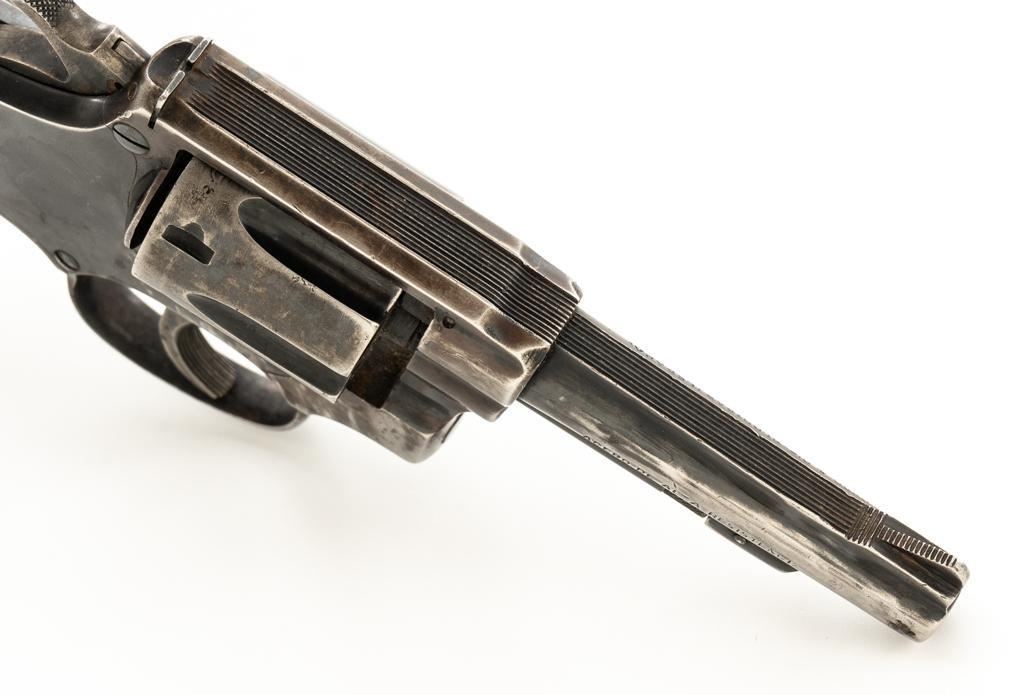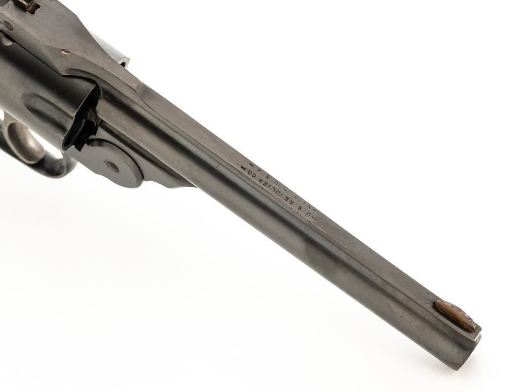 Lot of Two (2) Spanish & American Revolvers: 1.) Spanish Gabilondo & Cia Ruby Extra Double Action Revolver, #556289, .32 Long cal., 3.25'' pinned barrel, blue finish, checkered hard rubber two-piece grips with thumb rest on the left panel, serrated ramped blade front and fixed square-notch rear sight, color case hardened hammer, and trigger. Marked with numerous Spanish proofs, ''MADE IN SPAIN'' on the butt, and ''Ruby Extra'' in script at the left rear of the frame. Revolver is in good condition, retaining approx. 50%-60% thinning finish, with spots of light surface erosion, and evidence of aggressive cleaning at the right front of the frame. Grips rate good. Action functions well. Bore is good with moderate erosion and defined rifling. 2.) U.S. Revolver Co. Double Action 5-Shot Top-Break Revolver, #36772, .38 cal., 5'' ribbed barrel, blue finish, checkered hard rubber two-piece grips with ''U.S.'' monogram, half-round blade front and fixed ''U''-notch rear sight, color case hardened hammer, and trigger. Revolver is very good as refinished, retaining approx. 98% of an old reblued finish, with scratches and pin prick pitting under the new finish. Grips are near excellent. Action functions well. Bore is good with light erosion and some roughness near the muzzle, displaying defined rifling. Est.: $200-$400/lot. (Both/C&R)