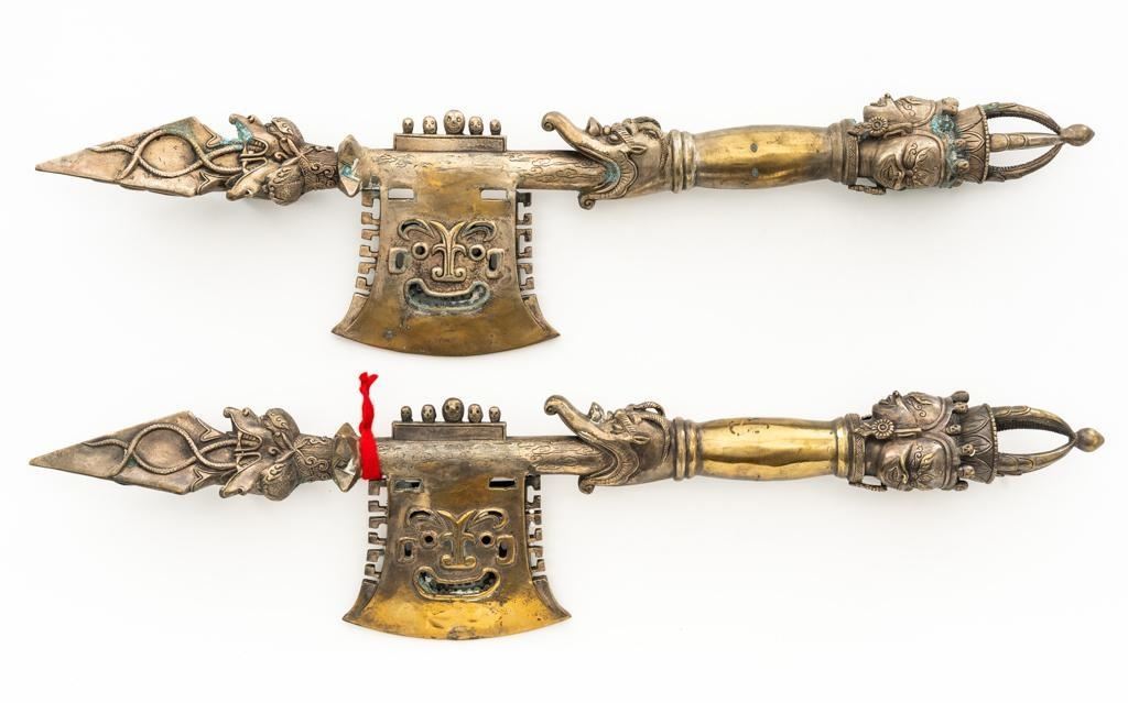 Lot 733 Lot of Two (2) 20th century Tibetan Style Brass Dagger Axes