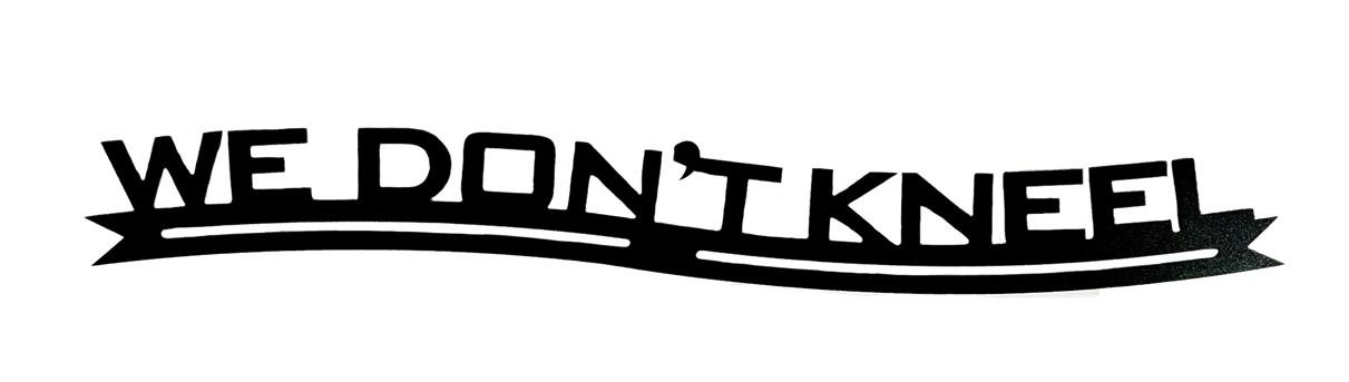 Metal American flag and ‘We don’t kneel’ sign from John Etten with Heritage Collectibles.